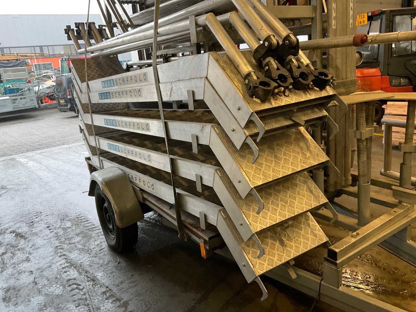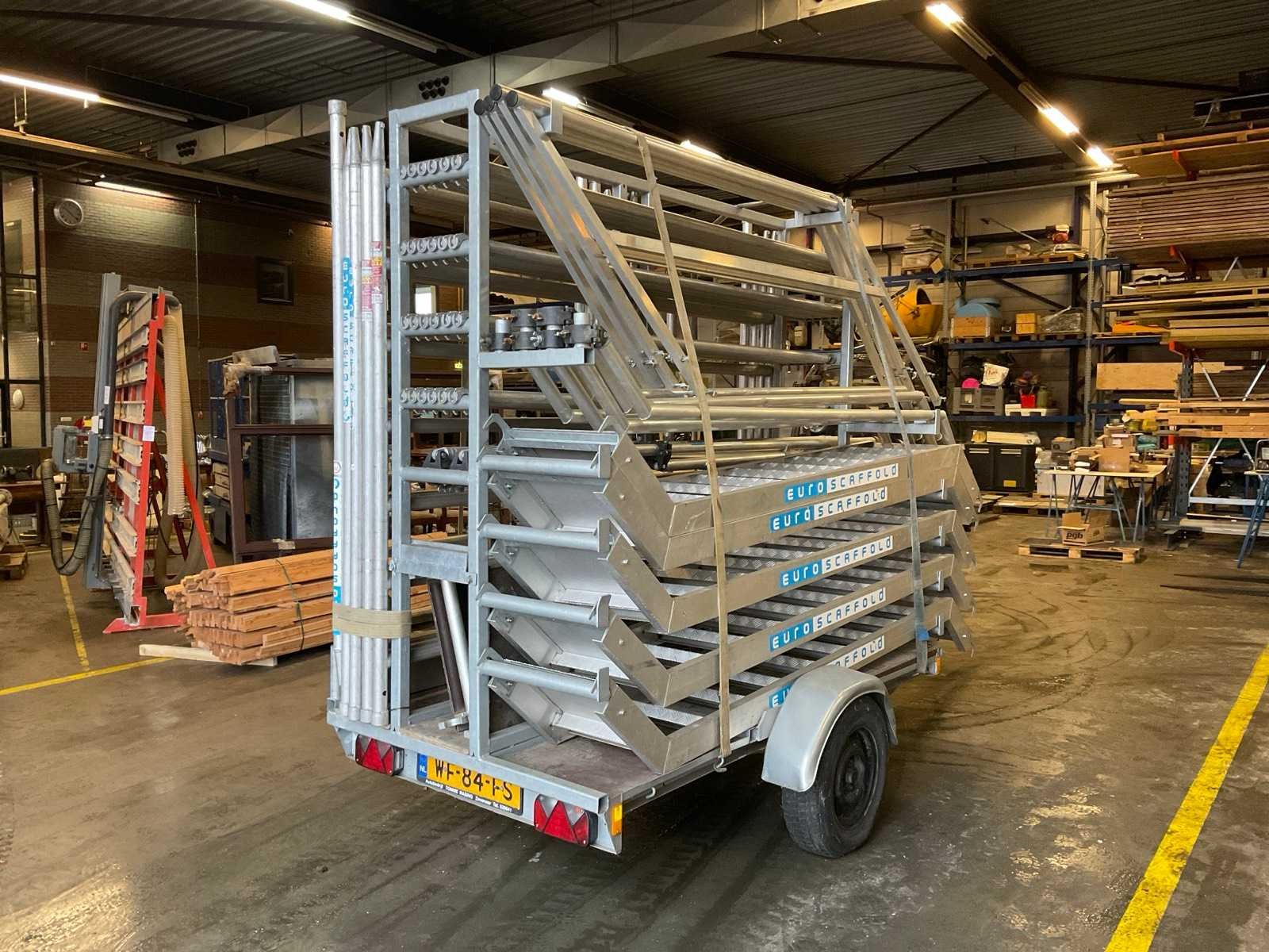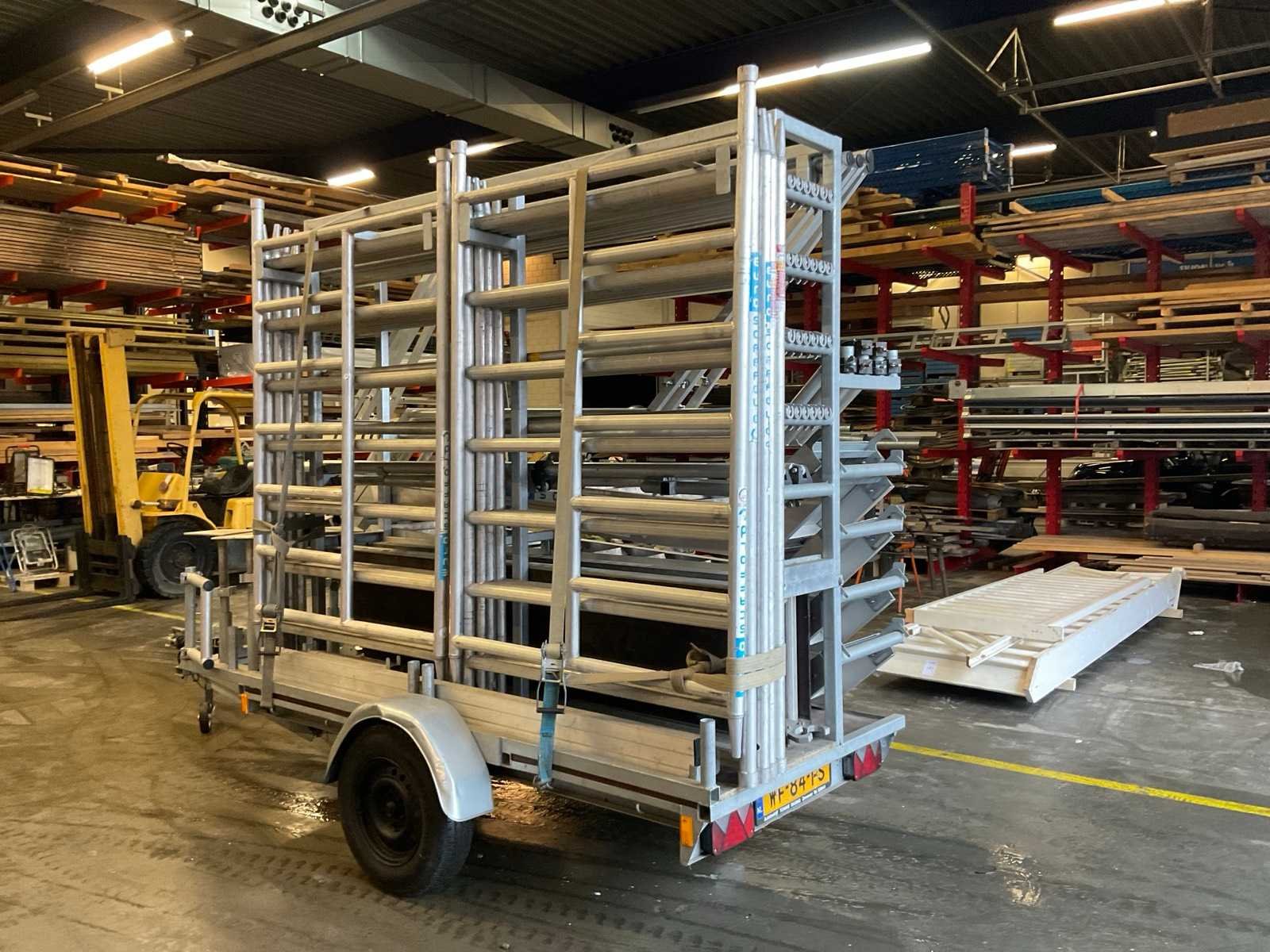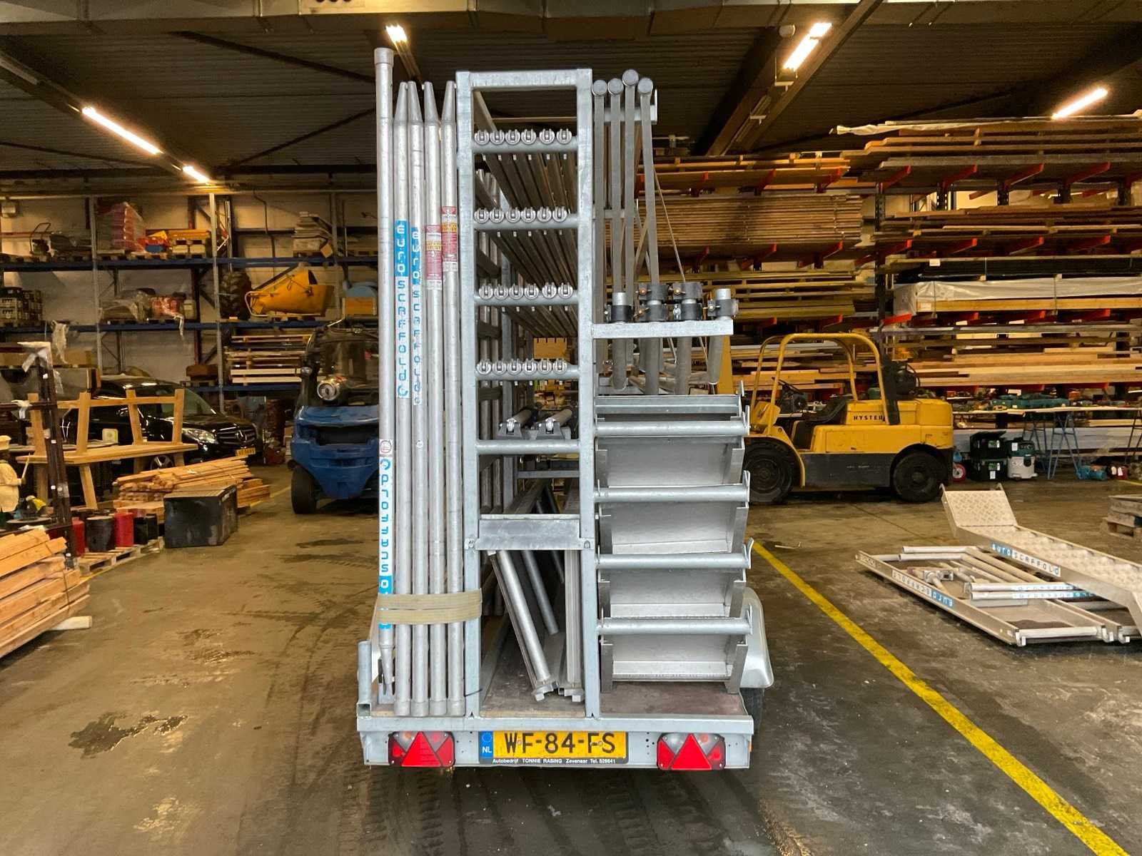 Inclusief: 10 opbouwdelen, 4 platforms, 4 leuningen, 4 wielen, 6 trappen, 24 schoren. Let op: Gedeeltelijk niet op aanhanger. Merk: Hapert Chassisnummer niet afleesbaar: true Aantal assen: 1 Laadbak afmeting l: 300cm Laadbak afmeting b: 140cm Ledig gewicht: 263kg Laadvermogen: 1037kg Datum eerste toelating: 1990-07-12 Datum eerste toelating (NL): 1990-07-12 Kenteken: WF-84-FS Hoogte: 275cm Lengte: 450cm Breedte: 180cm Nationaliteit documenten: NL Zelf rijdend exporteren: Mogelijk