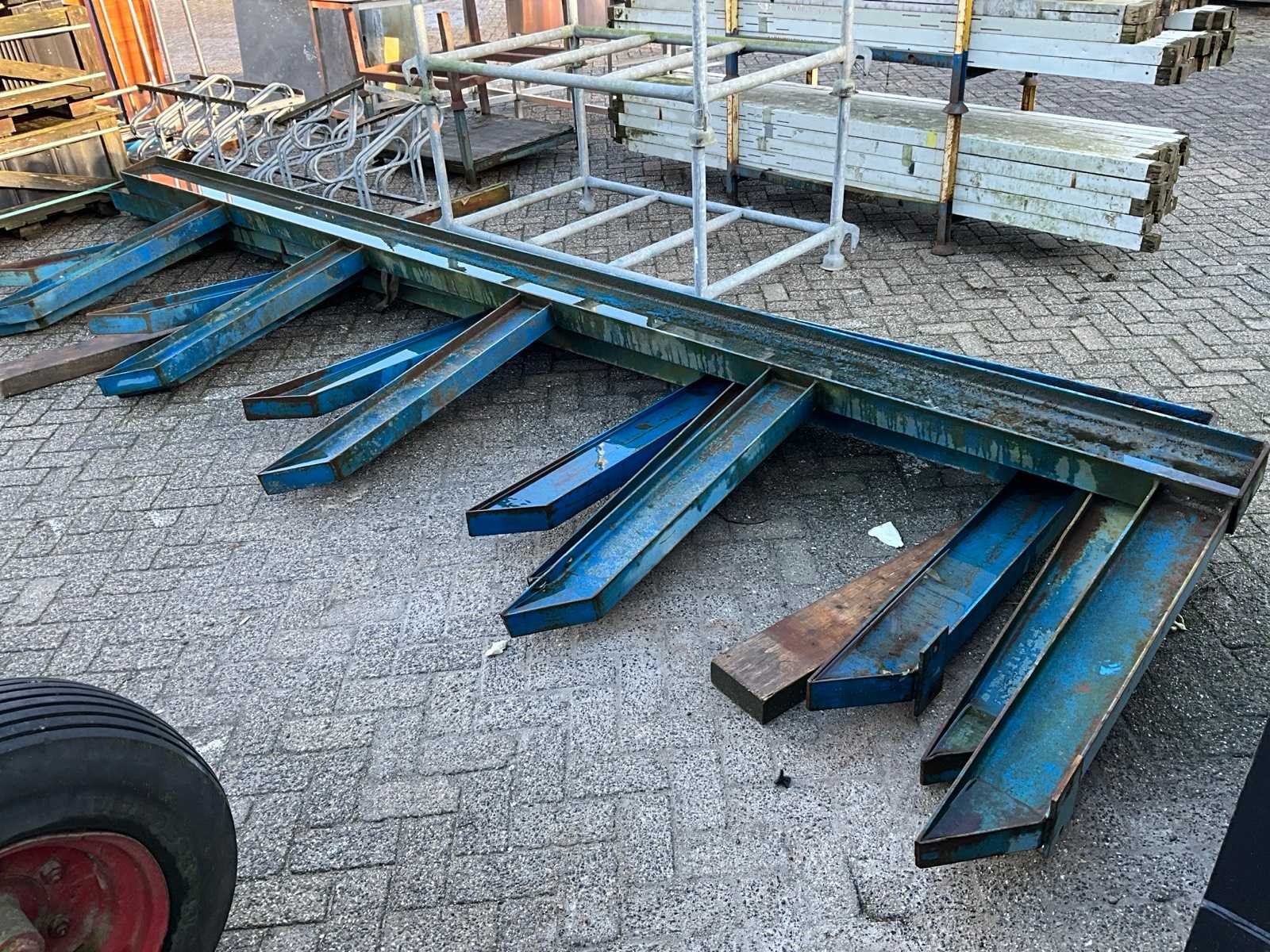 5 armen per staander, armen 1100mm diep, 900mm tussen armen Aantal staanders: 3 Totale afmeting L: 530cm Totale afmeting Breedte: 135cm Totale afmeting Hoogte: 40cm