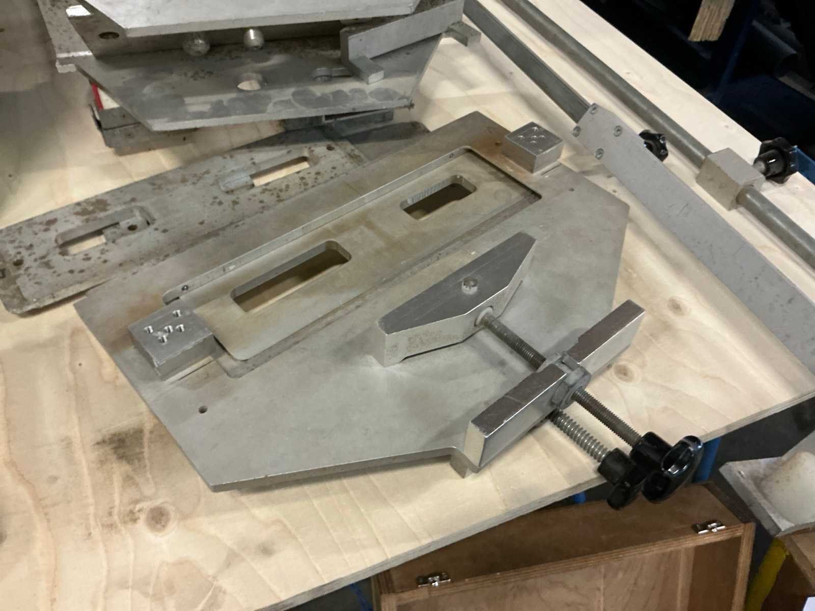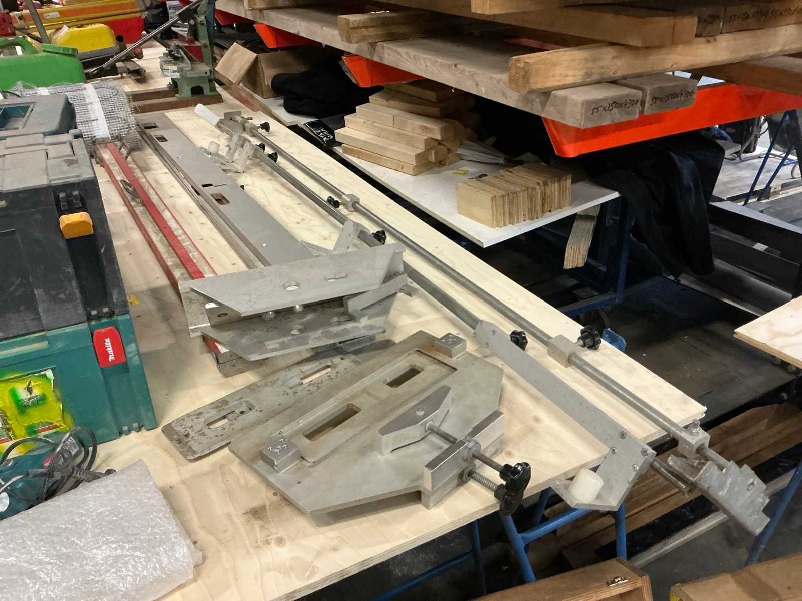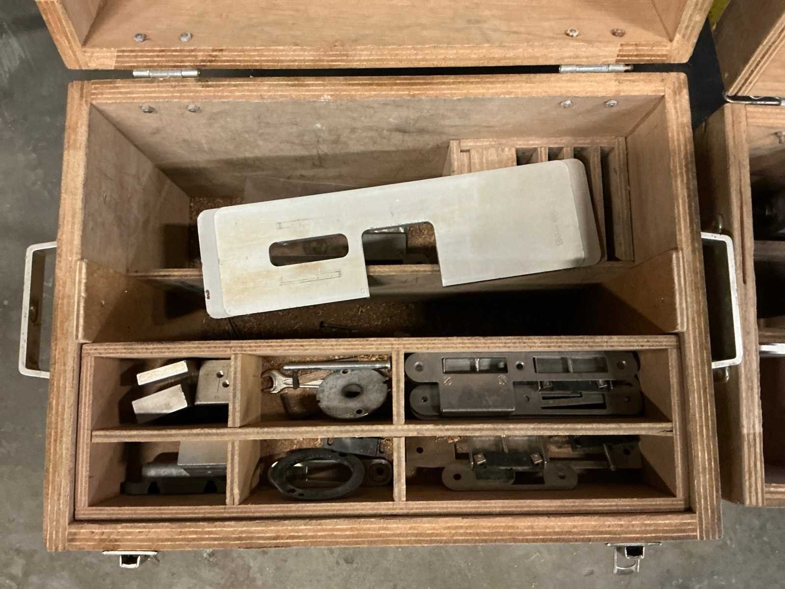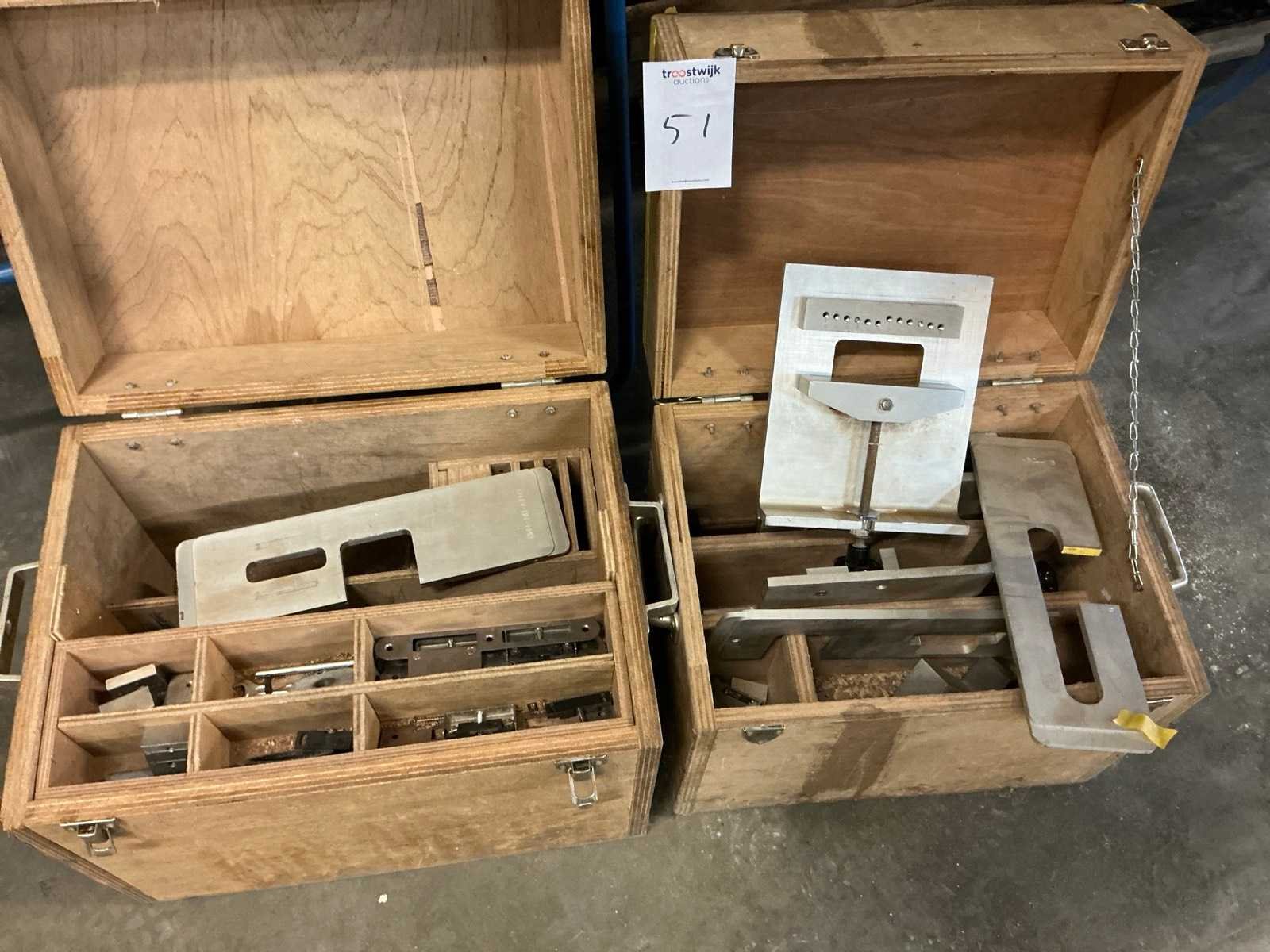 Bestaande uit diverse freessjablonen in 2 houten kisten.