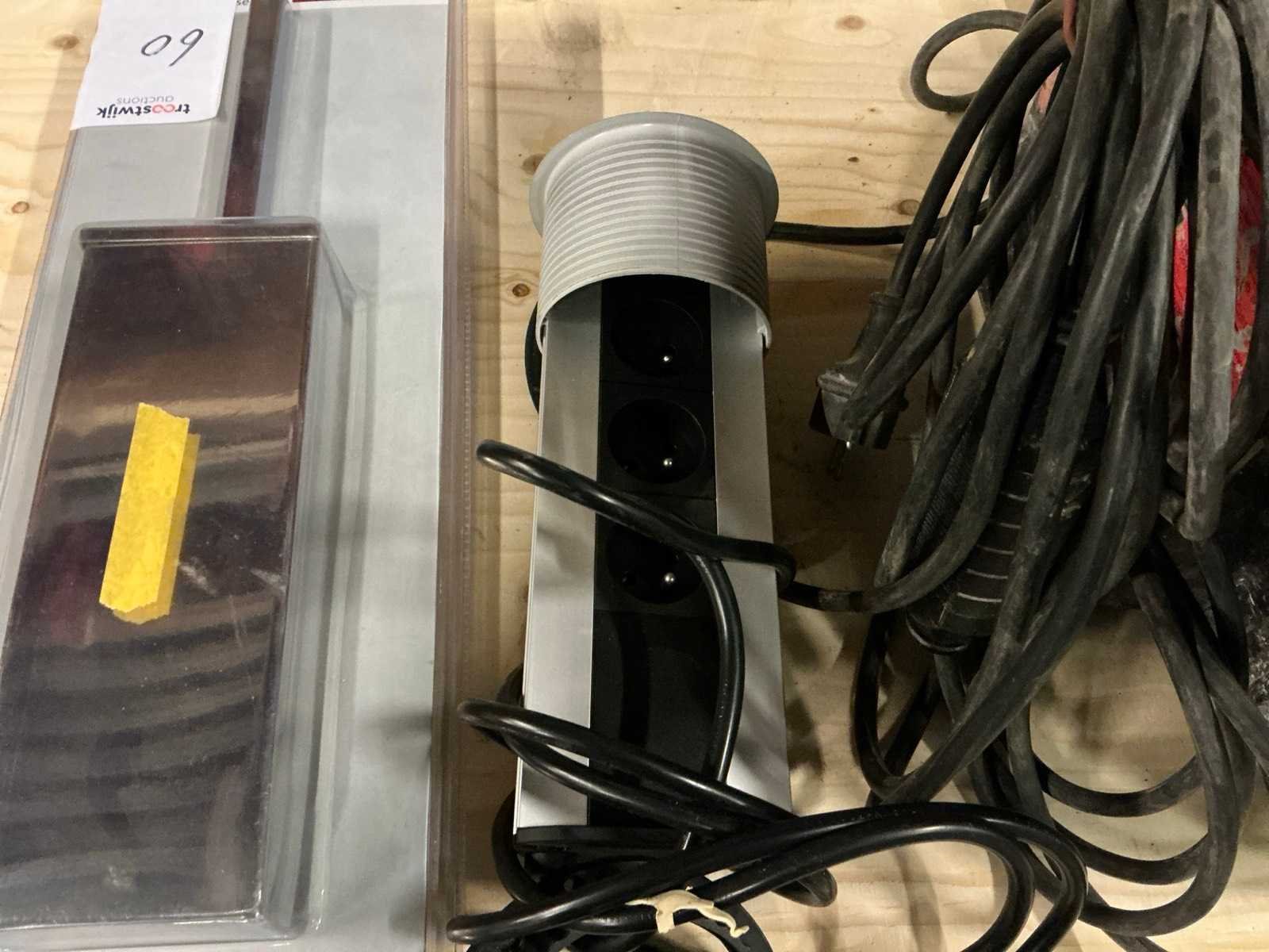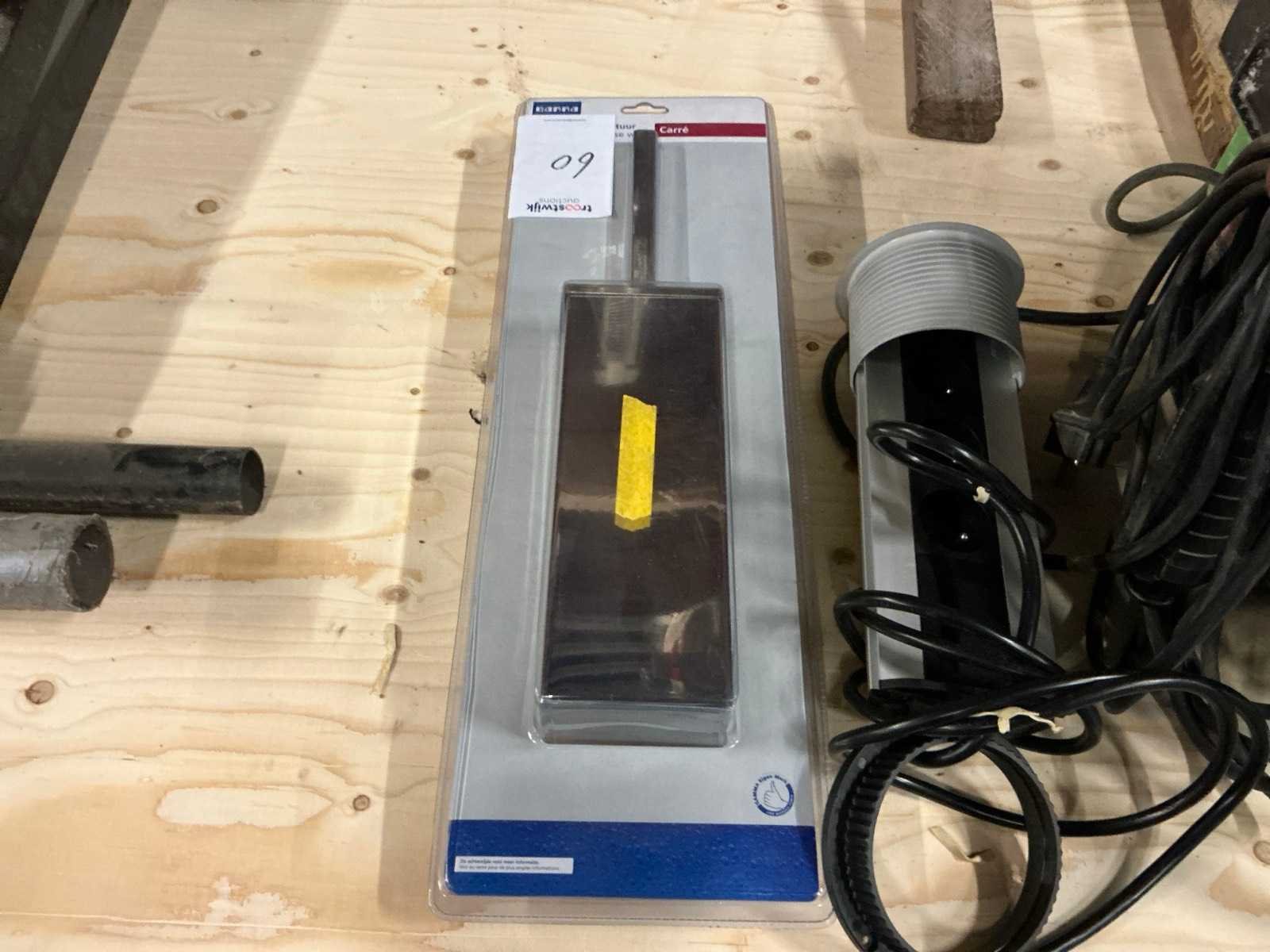 Bestaande uit: Verschillende atikelen waaronder: 1e: Een toiletborstel met garnituur 2e: Een EVOline uitklapbare stekkerdoos voor een bureautafel 3e: Een waterreservoir