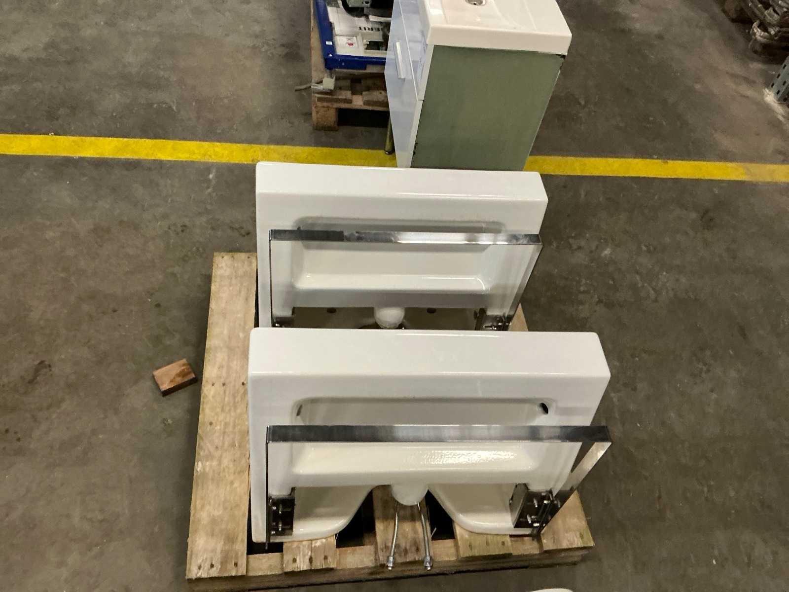 Voorzien van handdoekrek en mengkraan. Lengte: 65cm Breedte: 51cm Hoogte: 40cm