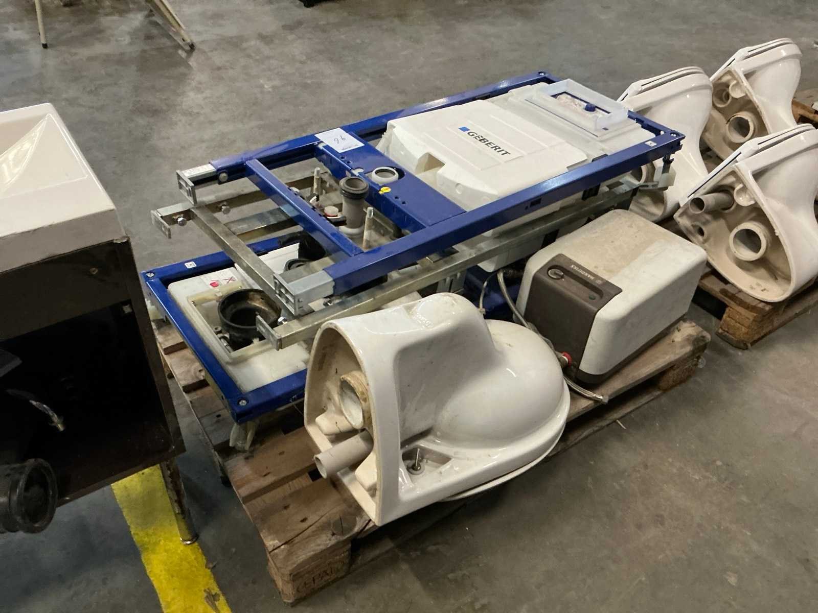 Bestaande uit 2x Geberit inbouwreservoir, wandcloset en Handifiks boiler.