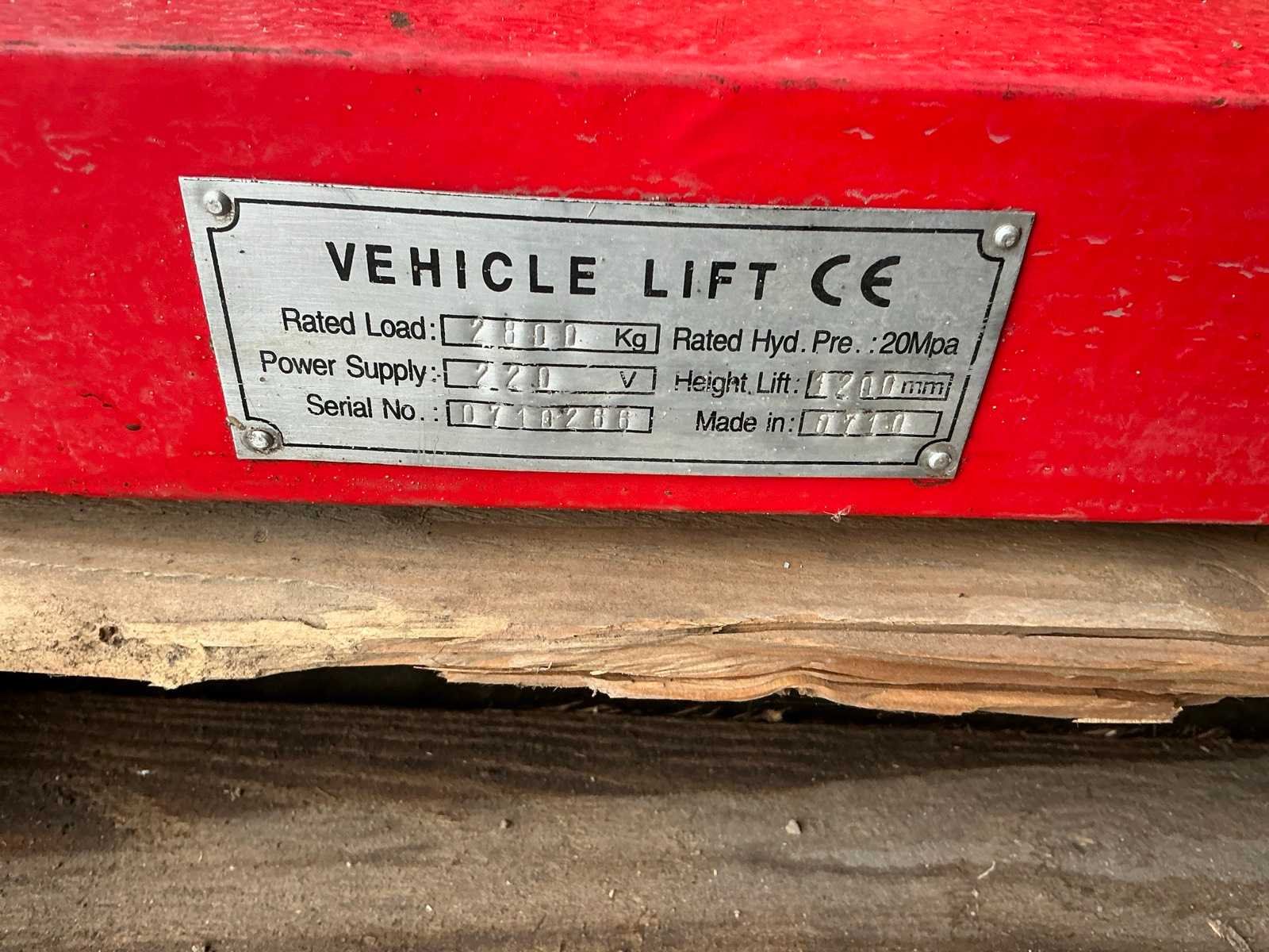 Maximale hefhoogte 1200mm, maximale belasting 2800kg, lekt olie. Type: 2800kg Bouwjaar: 2010 Aansluiting: 230V