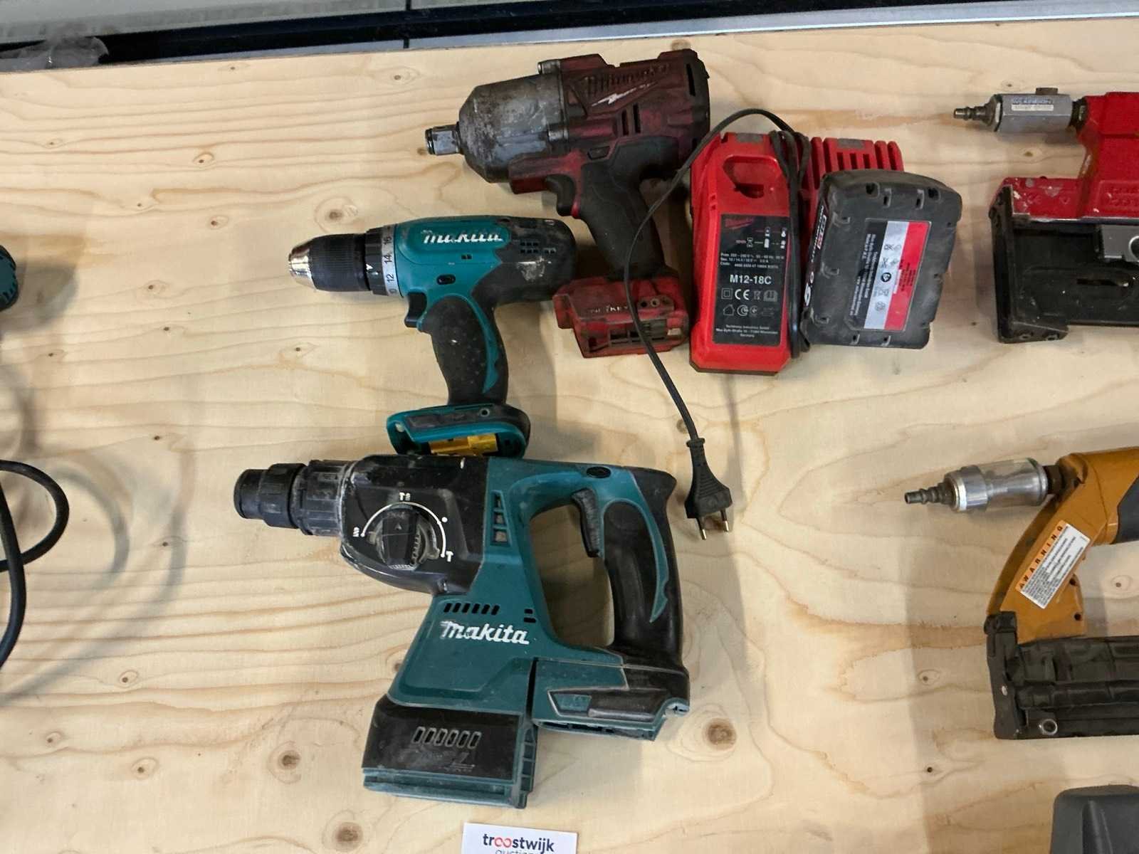 Bestaande uit 2 Makita boormachines zonder accu en lader, Milwaukee slagmoersleutel met accu en lader Merk: Milwaukee / Makita