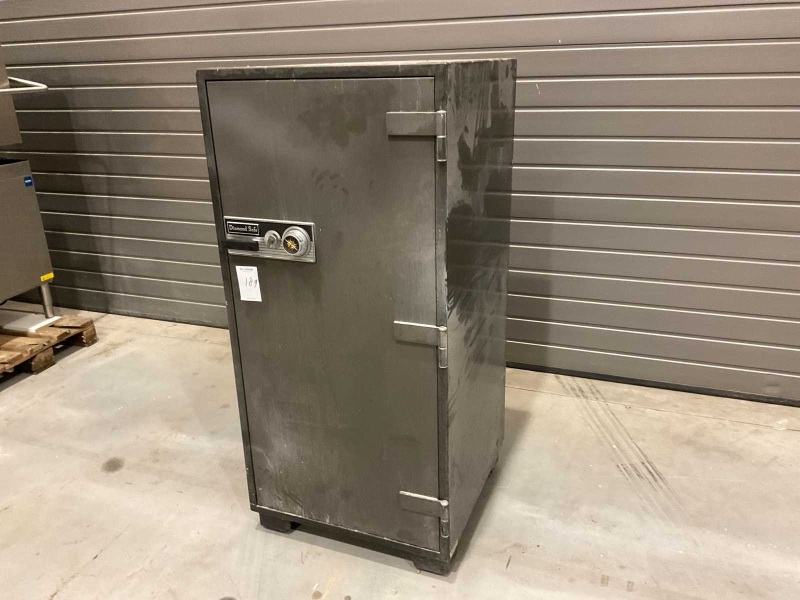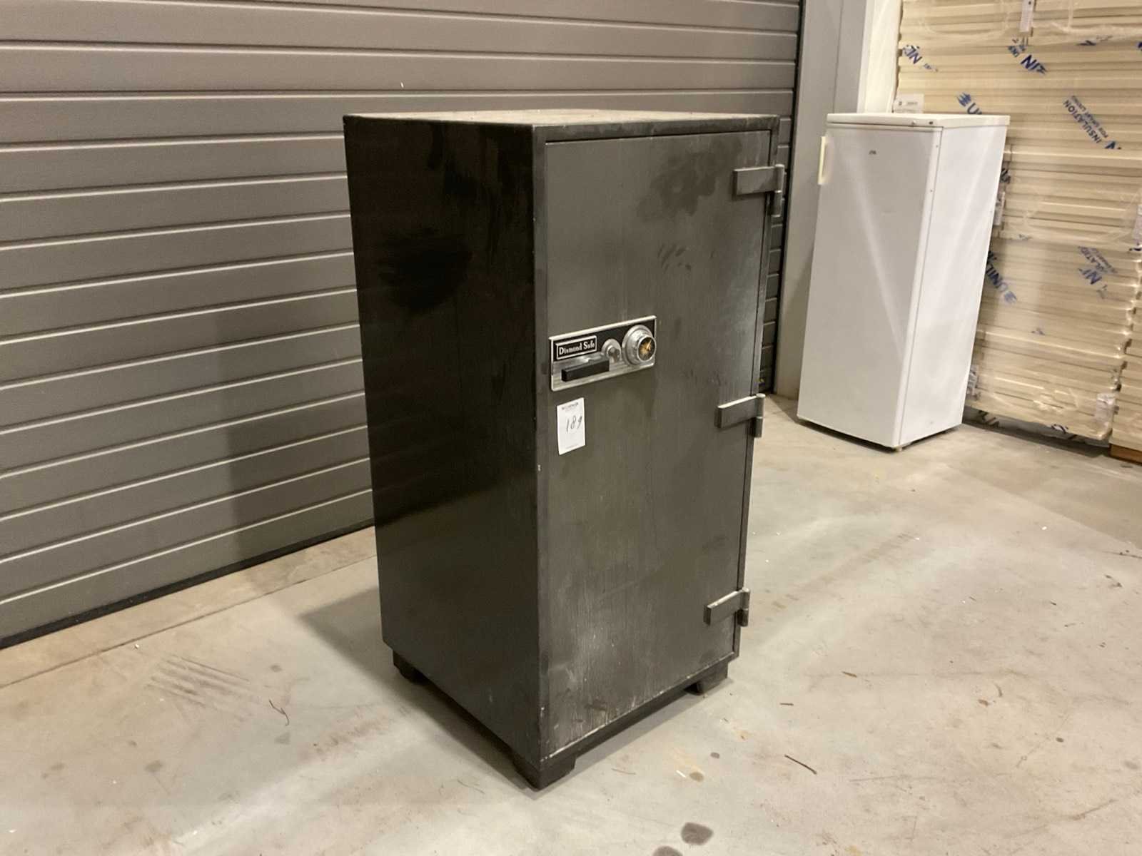 Met sleutel, zonder code. Deur gaat niet open. Merk: Diamond Safe Lengte: 70cm Breedte: 70cm Hoogte: 150cm