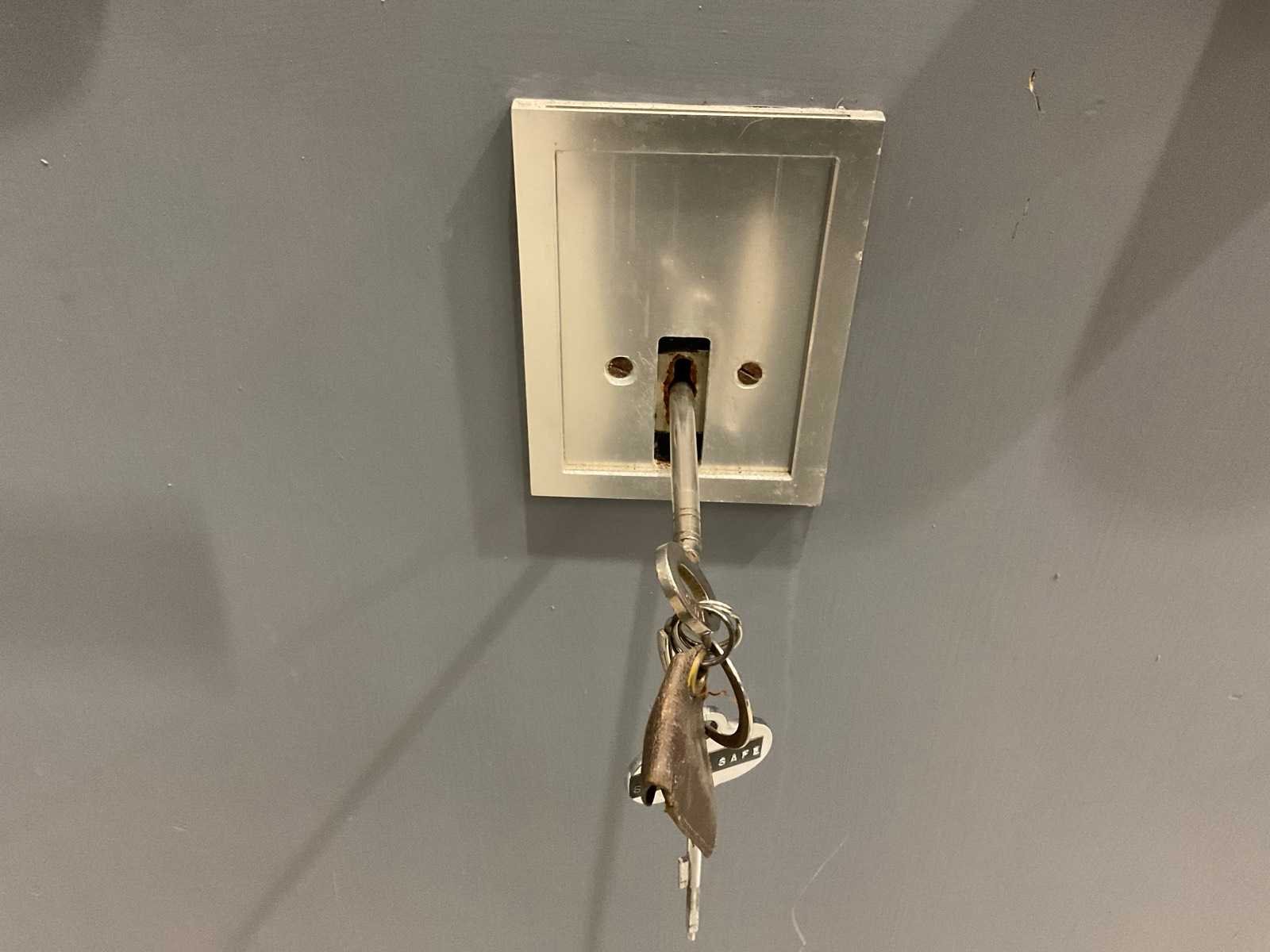Met sleutel, zonder code. Deur gaat niet open. Merk: Lips Lengte: 85cm Breedte: 95cm Hoogte: 157cm