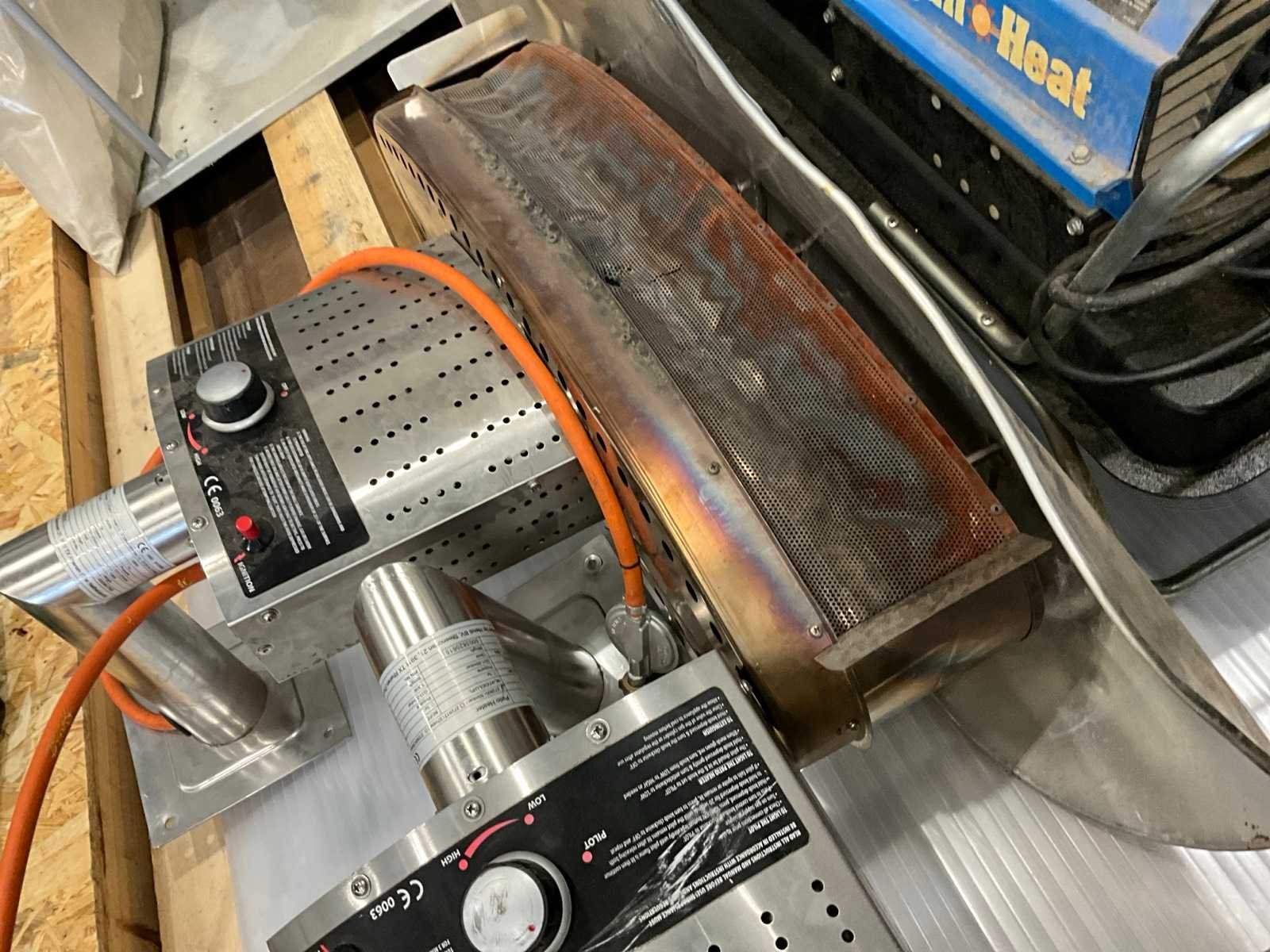 Patio heaters 1200x450x800mm, werkend op propaan, 13kW, 980g/h verbruik, inclusief sun heat hitte kanon Merk: Hendi Model: Patio heater