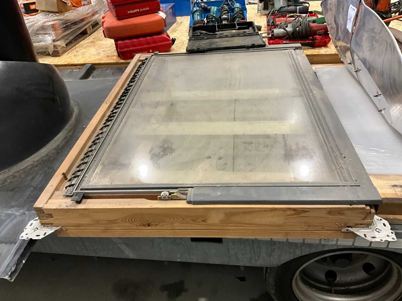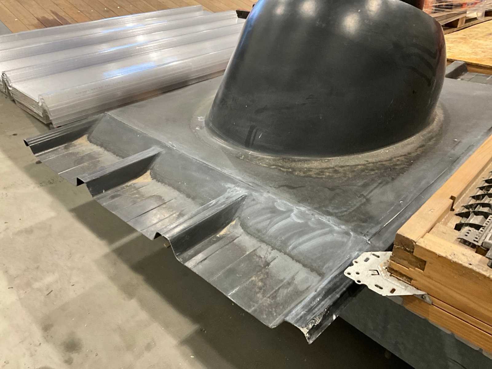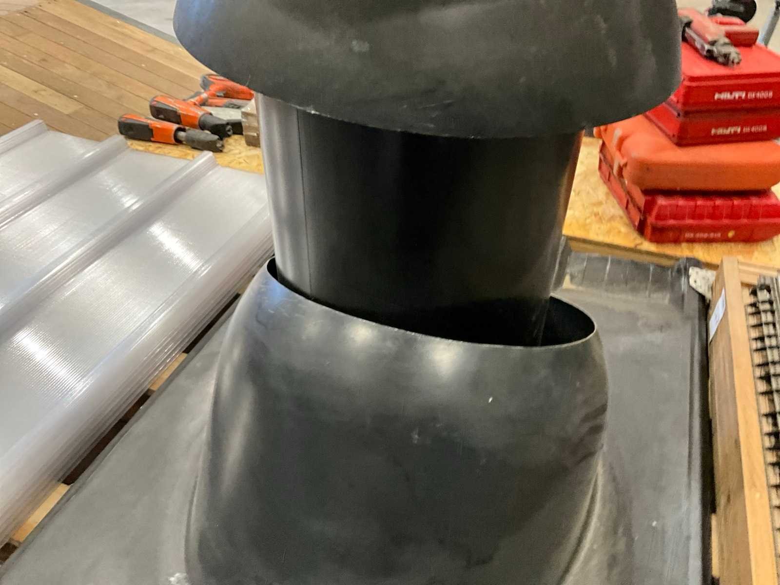 Bestaande uit: kantelbaar dakraam, schoorsteen met kraag, 6x Akralux Greca 4 1050x1500mm lichtdoorlatend dakplaat