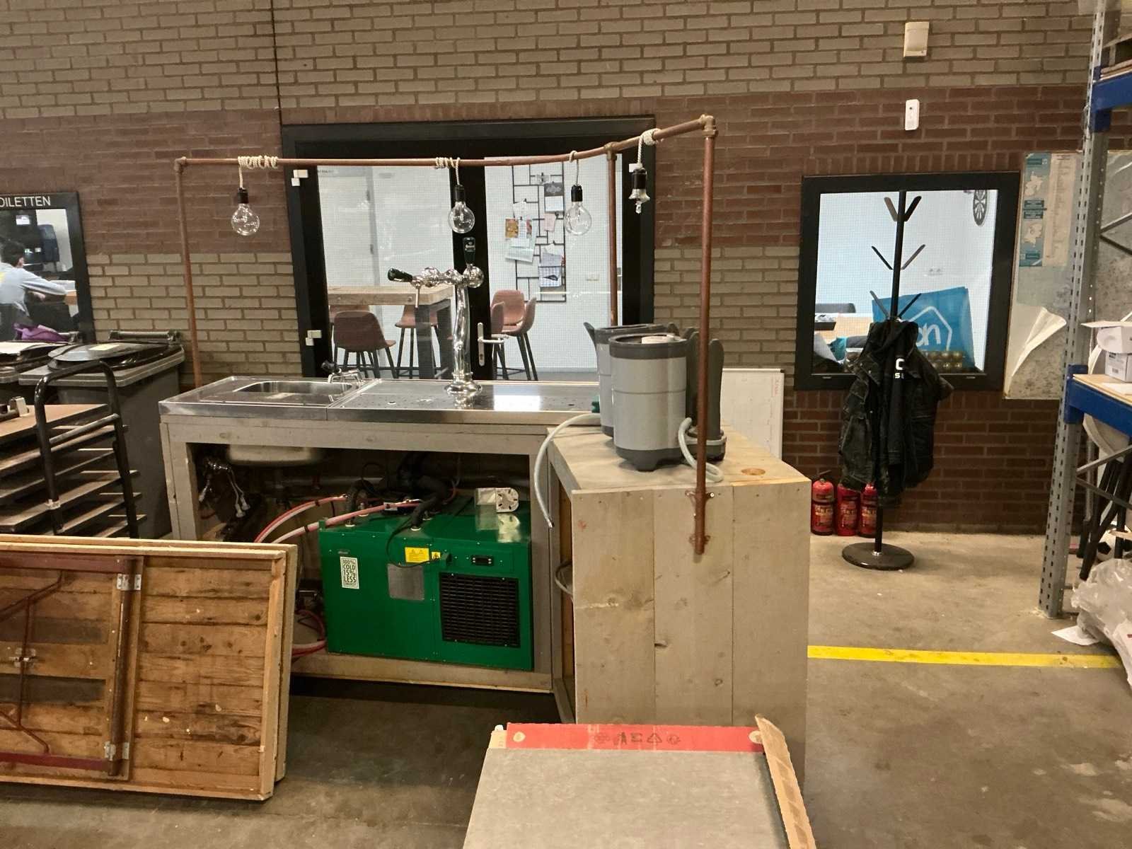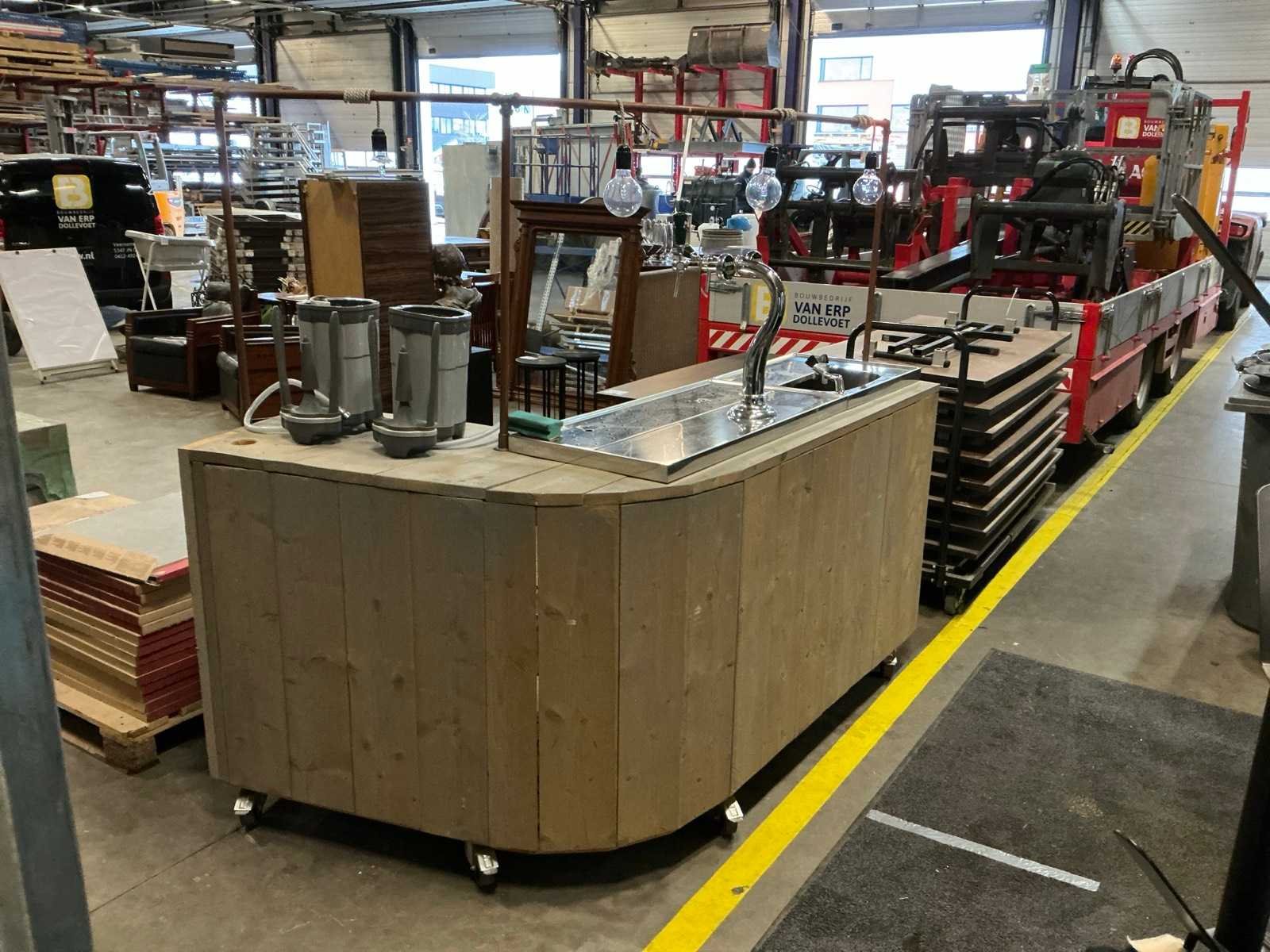 Voorzien van Brand tapkraan, Efficold tapinstallatie, spoelgedeelte, 2 Vega glazendrukspoelers en verlichting. Type: Verrijdbaar Totale afmeting L: 210cm Totale afmeting Breedte: 138cm Totale afmeting Hoogte: 197cm Hout: true
