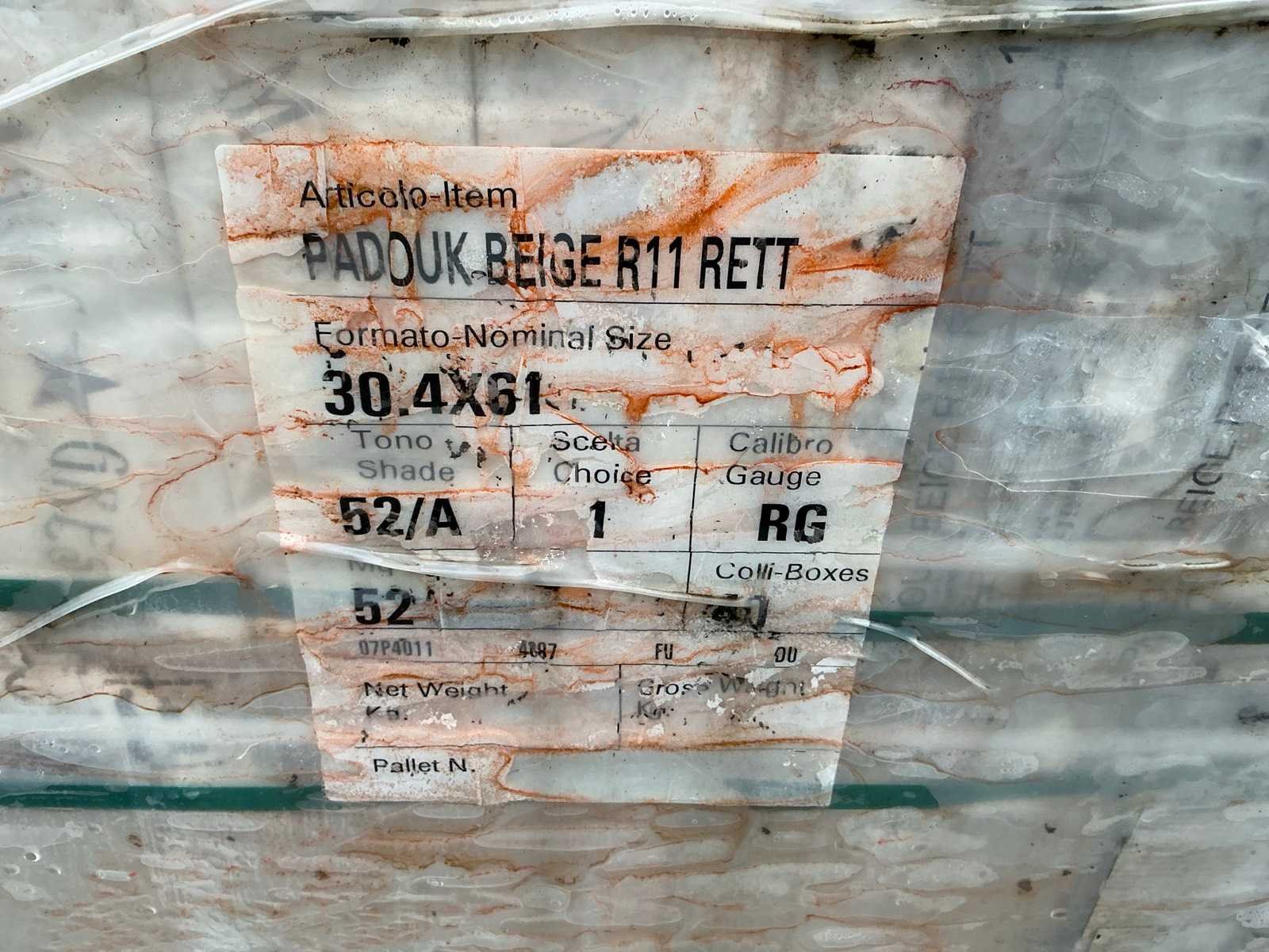 40 dozen per pallet Kleur: Padouk Beige Type: 30x60cm Aantal m² per verpakking: 1.3m²