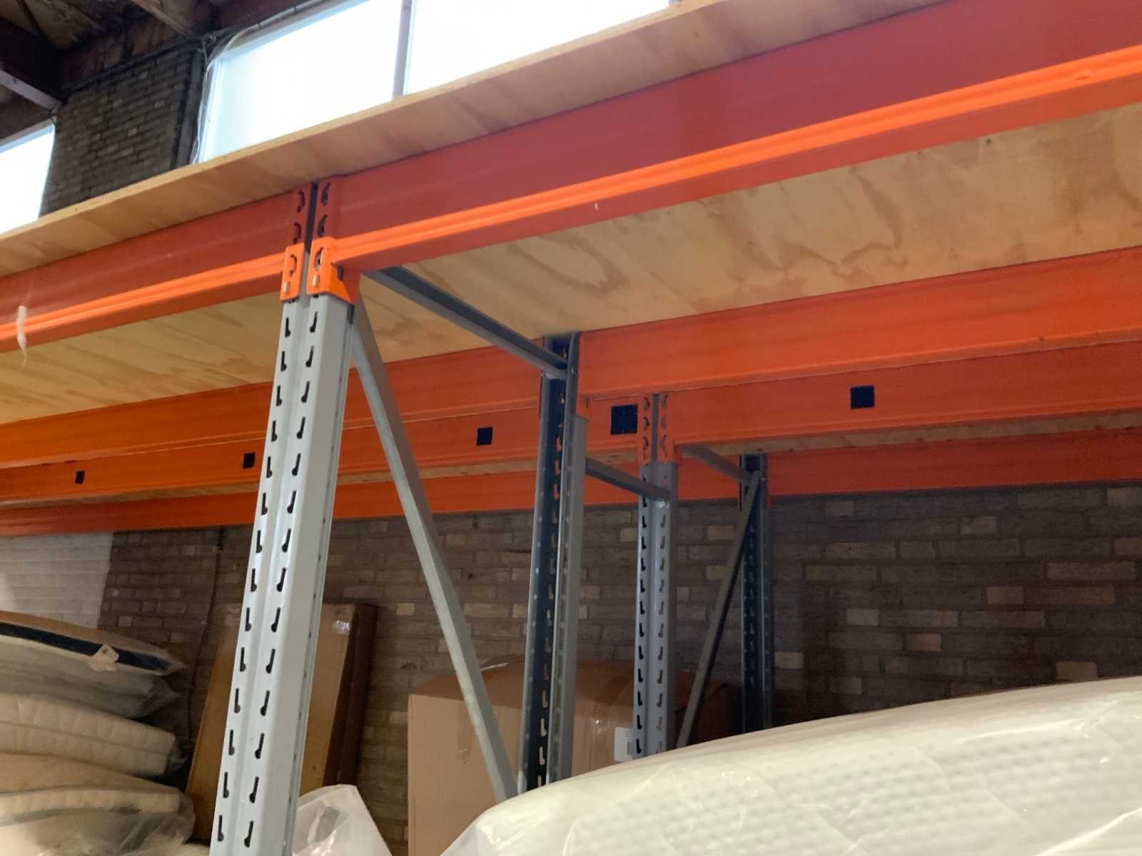 Afmeting per sectie ca. B450 x D70 x H250-375 cm. 6 staanders zijn 250 cm. 4 staanders zijn 375 cm. Met legborden. Zonder inhoud toppers en matrassen. Merk: Stow Sectie afm. b: 4500mm Sectie diepte: 700mm Aantal staanders: 10 Aantal liggers: 18