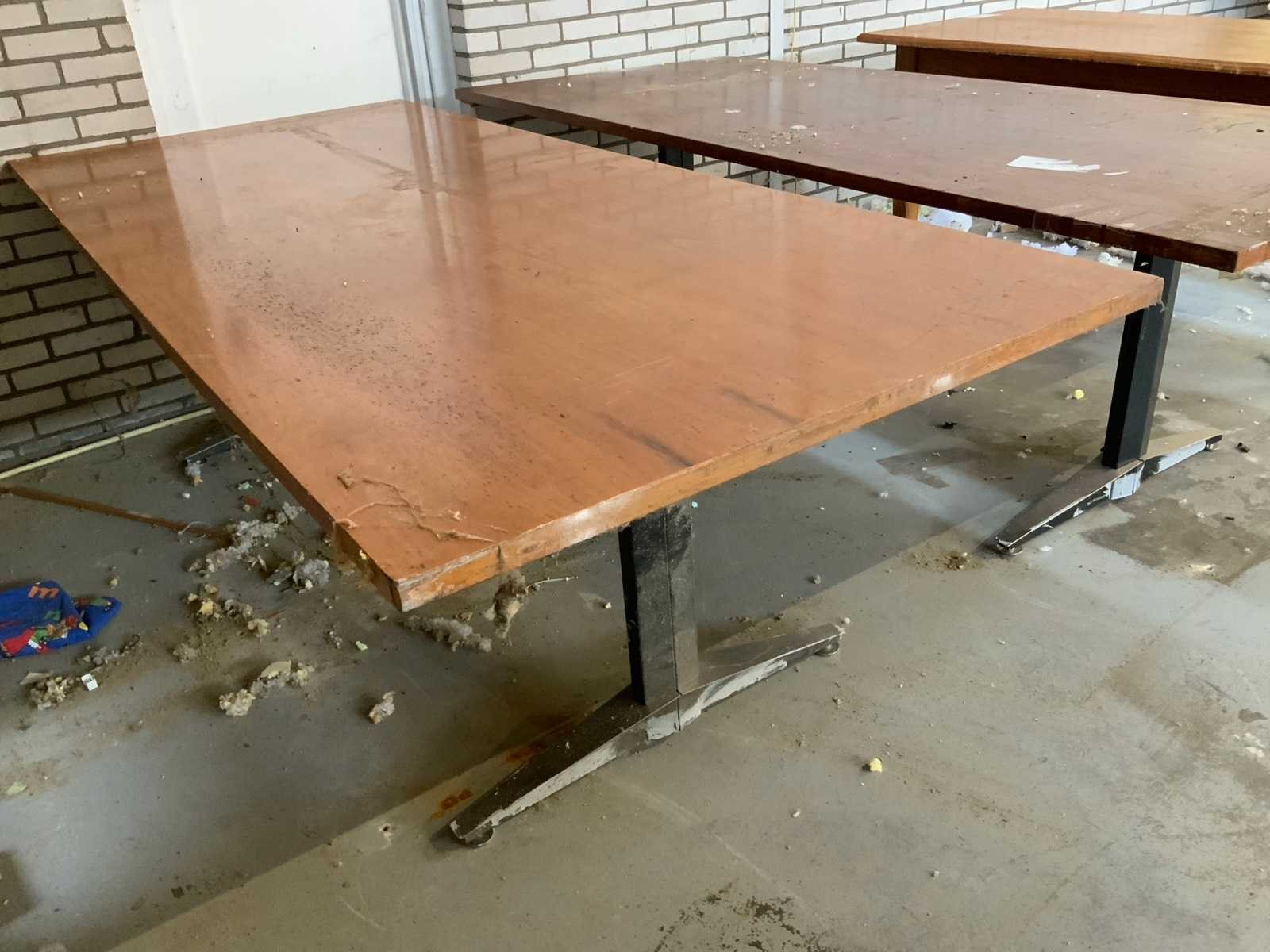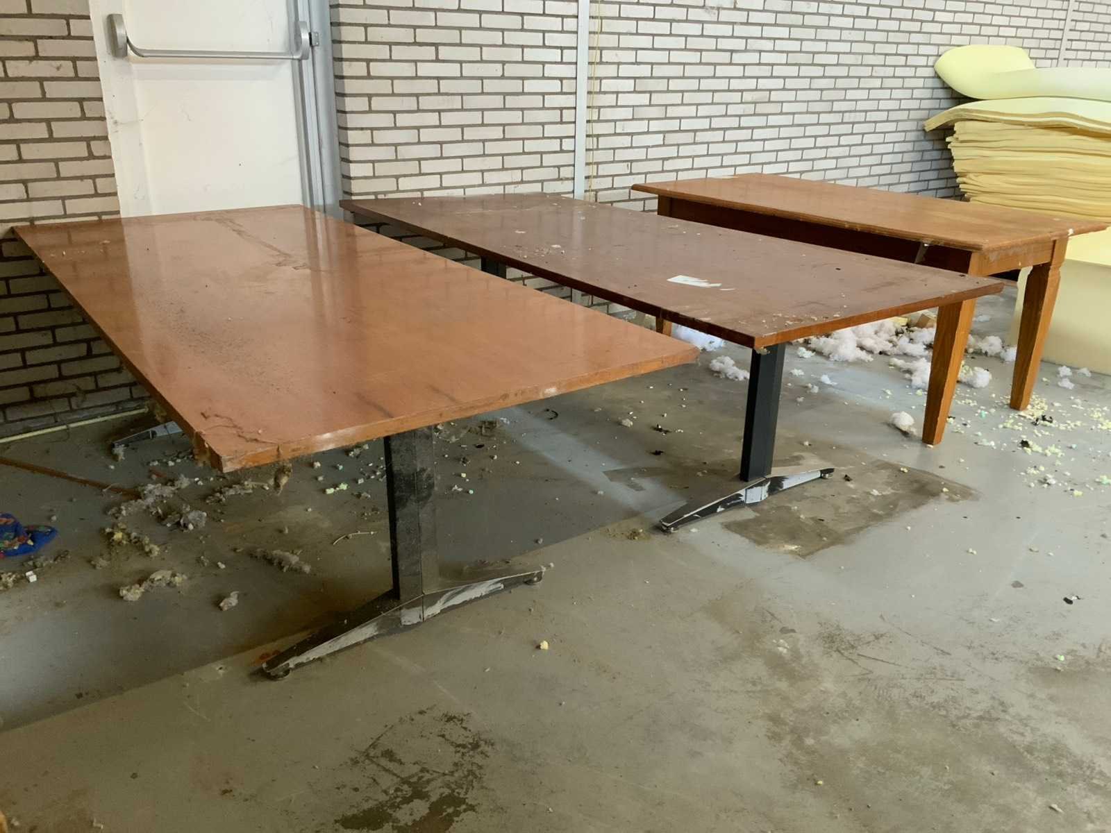 Diverse maten waaronder 2 werkbank van afmeting ca. L240 x B105 x H75 cm en 1 x ca. L180 x B 85 x H78 cm. Lengte: 240cm Breedte: 105cm Hoogte: 75cm