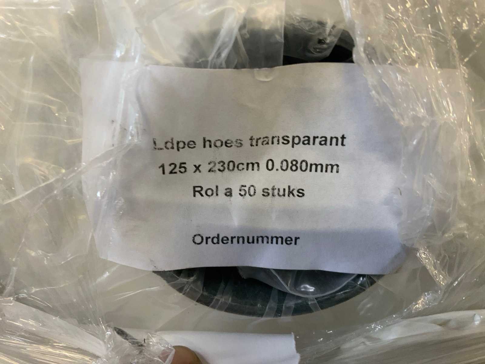 Per folierol ca. 50 zakken. Model: LDPE Hoes Transparant Lengte: 230cm Breedte: 125cm