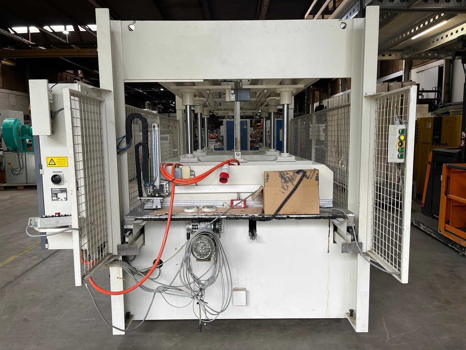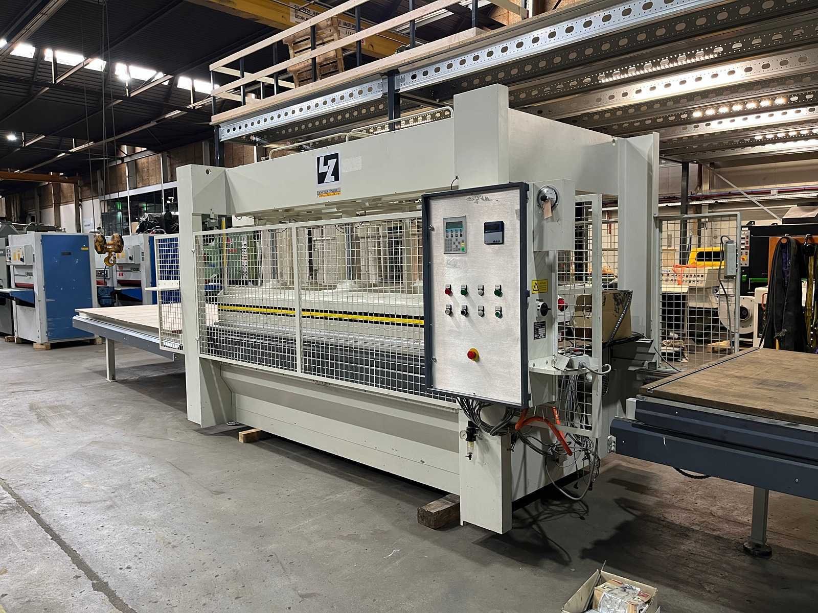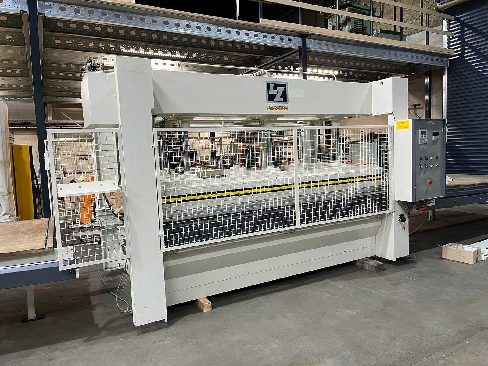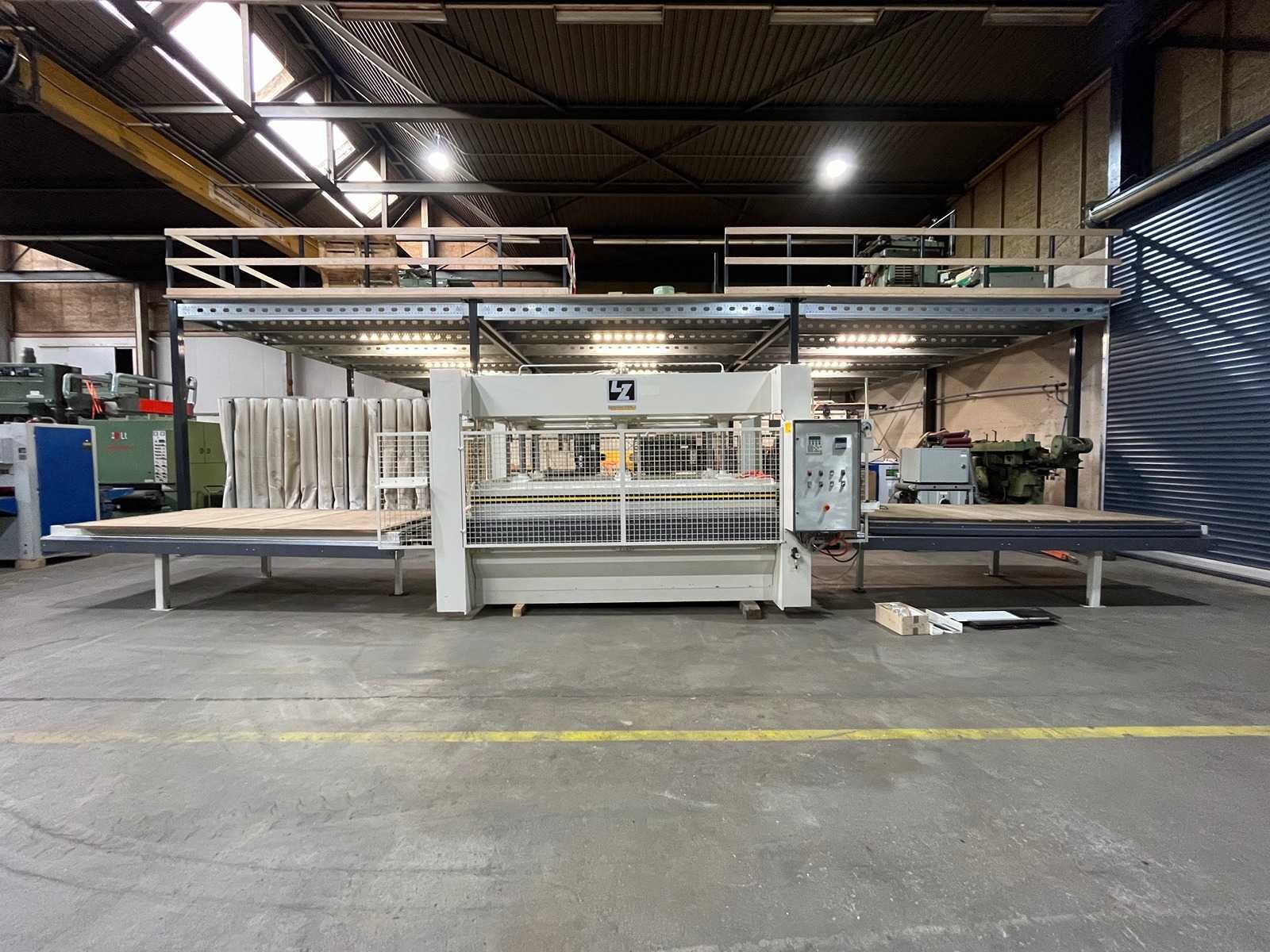 Doorloop pers Maximale slag 400mm Persdruk 70T 20kW, 31Amp, Bovenplaat 3000x1500mm, elektrische verwarmd Onderplaat 3400x1680mm, niet verwarmd Met invoer en afvoerbaan. Merk: Langzauner Type: LZT-OK 70 E SO Bouwjaar: 2005 Serienummer: 401-05-X077 Max. formaat l: 3000mm Max. formaat b: 1500mm Perskracht: 700kN Aantal cilinders: 6 Aansluiting: 380V Machinegewicht: 6500kg Afmeting l: 12000mm Afmeting b: 2350mm Afmeting h: 2650mm