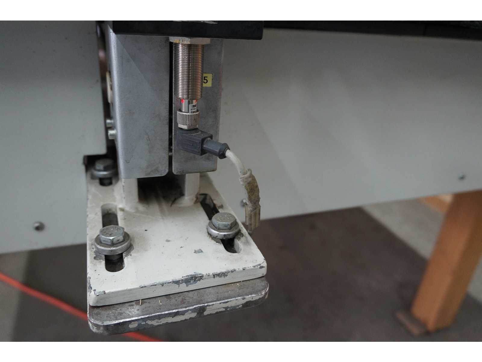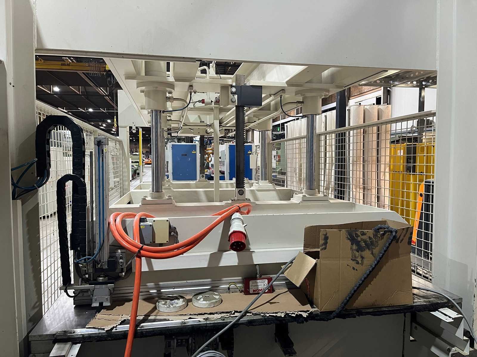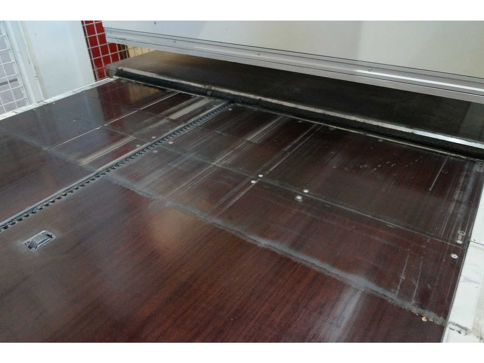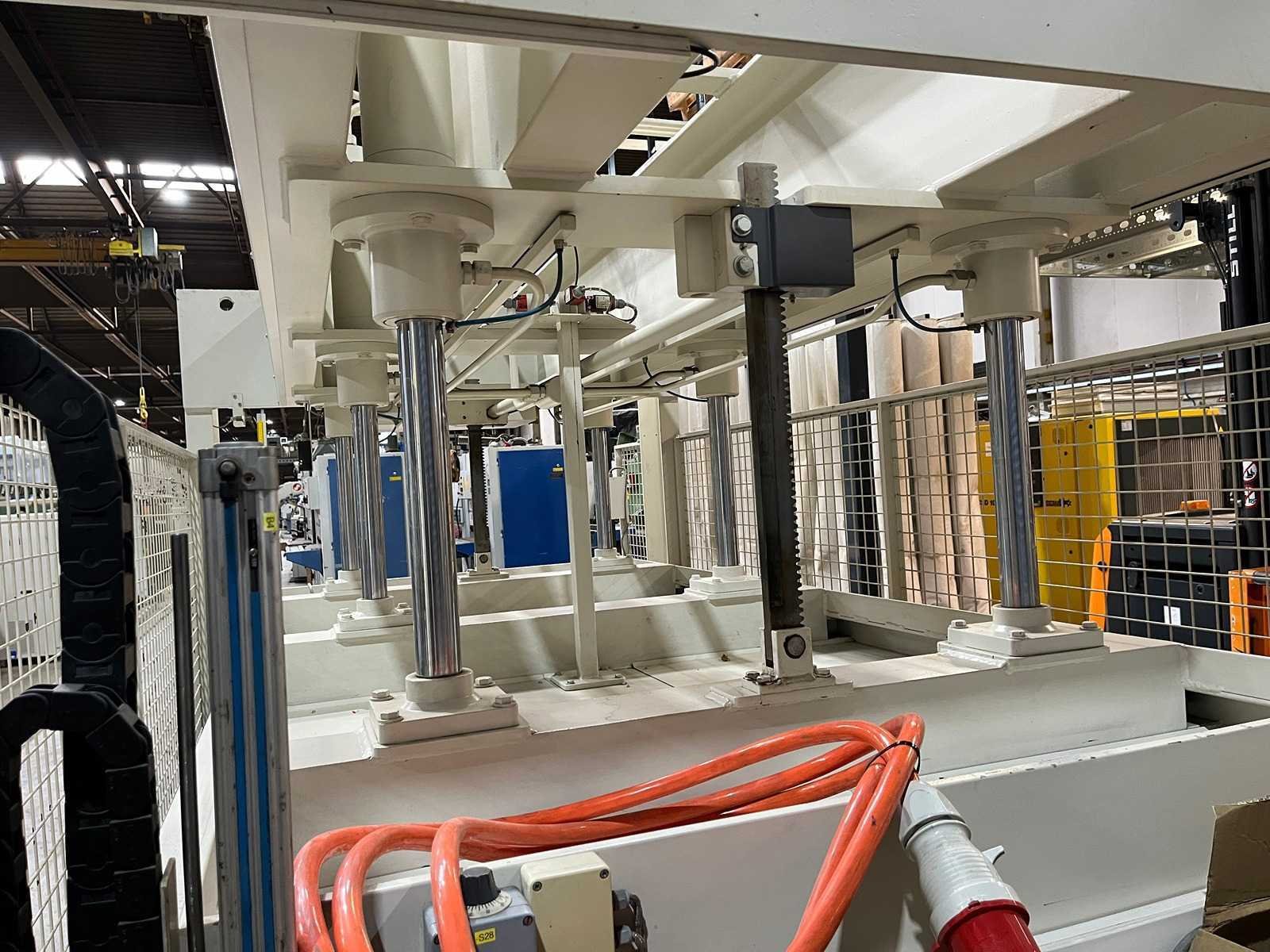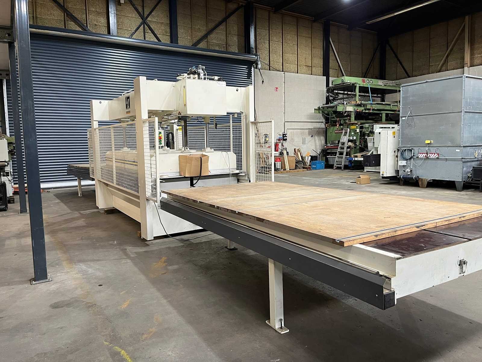 Doorloop pers Maximale slag 400mm Persdruk 70T 20kW, 31Amp, Bovenplaat 3000x1500mm, elektrische verwarmd Onderplaat 3400x1680mm, niet verwarmd Met invoer en afvoerbaan. Merk: Langzauner Type: LZT-OK 70 E SO Bouwjaar: 2005 Serienummer: 401-05-X077 Max. formaat l: 3000mm Max. formaat b: 1500mm Perskracht: 700kN Aantal cilinders: 6 Aansluiting: 380V Machinegewicht: 6500kg Afmeting l: 12000mm Afmeting b: 2350mm Afmeting h: 2650mm