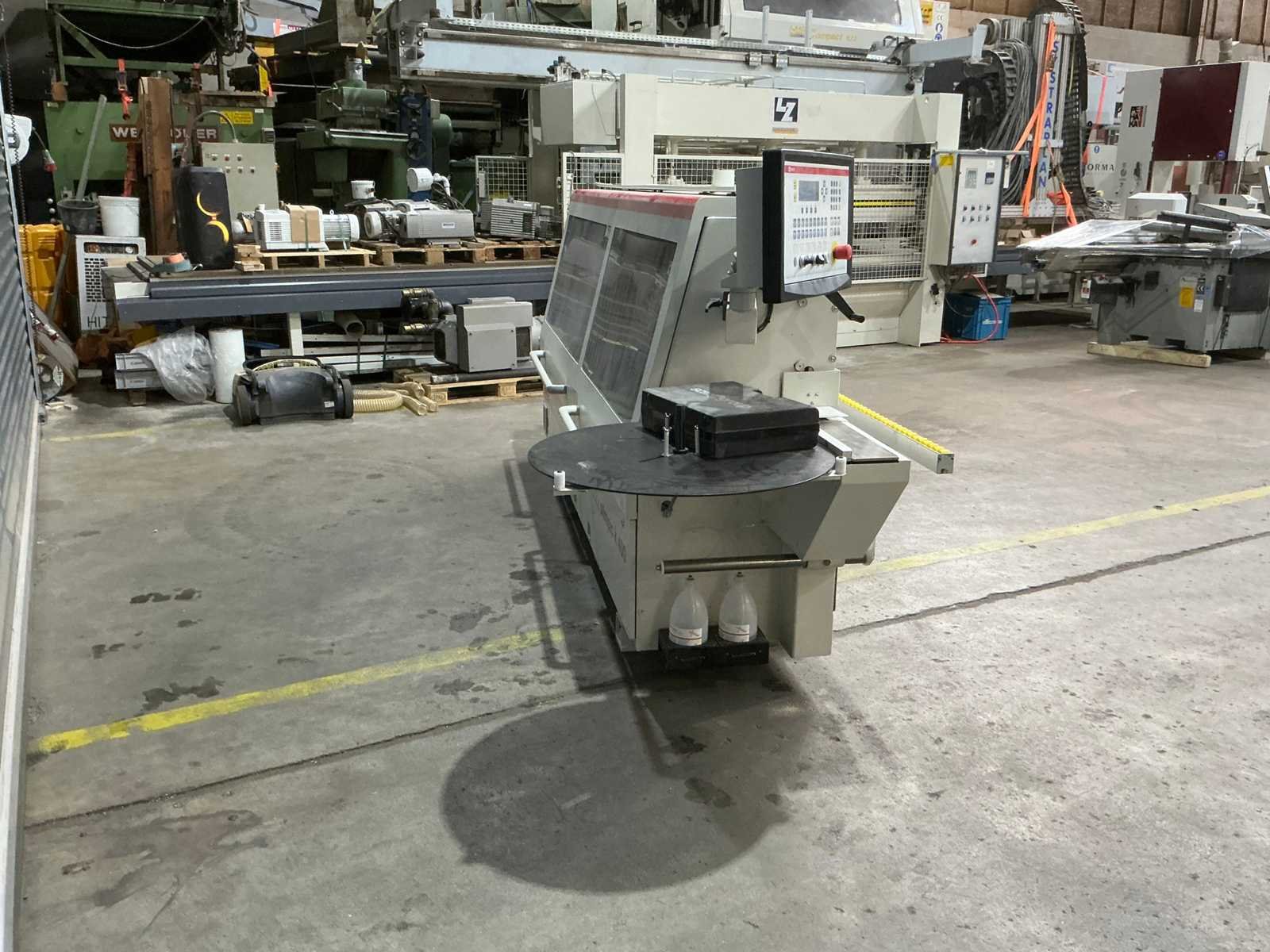Voorfreesunit Lijmunit Kapunit Grof freesunit Radius-schraapunit Vlakschraapunit Max kantbanddikte: 6mm Max paneeldikte: 60mm Min paneellengte: 140mm Max doorvoersnelheid: 11m/min Merk: SCM Type: Olimpic K400 T-E Bouwjaar: 2011 Serienummer: AH/115214 Zaagunit: true Voorfreesunit: true Schraapunit: true Afmeting l: 4000mm Afmeting b: 675mm Afmeting h: 1600mm