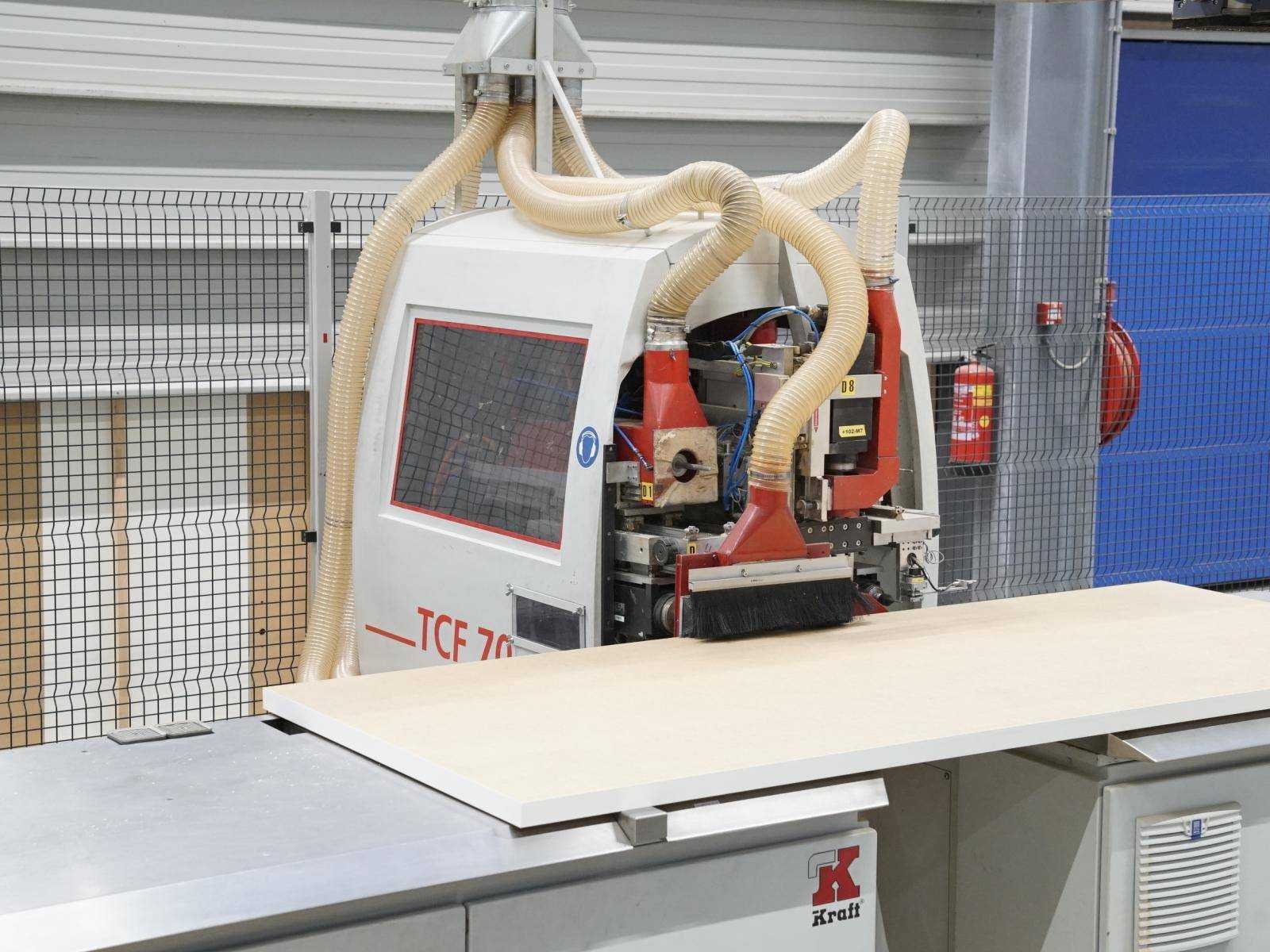 Vermogen Hoofdmotor: 6kW Werkbereik X: 2500mm Werkbereik Y: 1300mm Werkbereik: 150mm 7 freesspindels Merk: Kraft Type: TCF 70