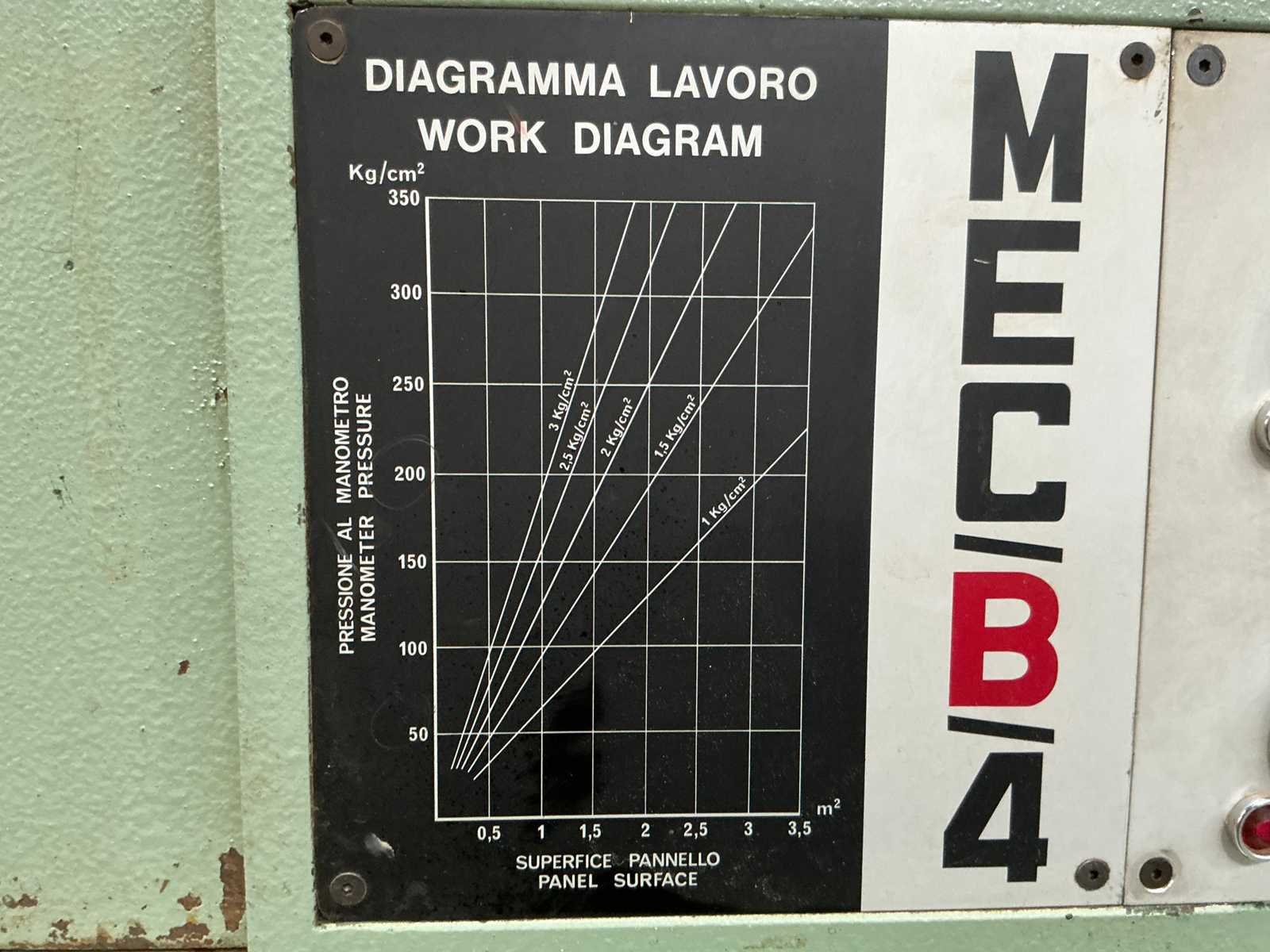 Max. werkstuklengte: 2500mm Max. werkstukbreedte: 1300mm Max. werkstukhoogte: 300mm Diameter cilinders: 70mm Merk: Italpresse Type: MEC B 4 Aantal cilinders: 4 Machinegewicht: 2500kg Afmeting l: 3000mm Afmeting b: 1500mm Afmeting h: 2000mm