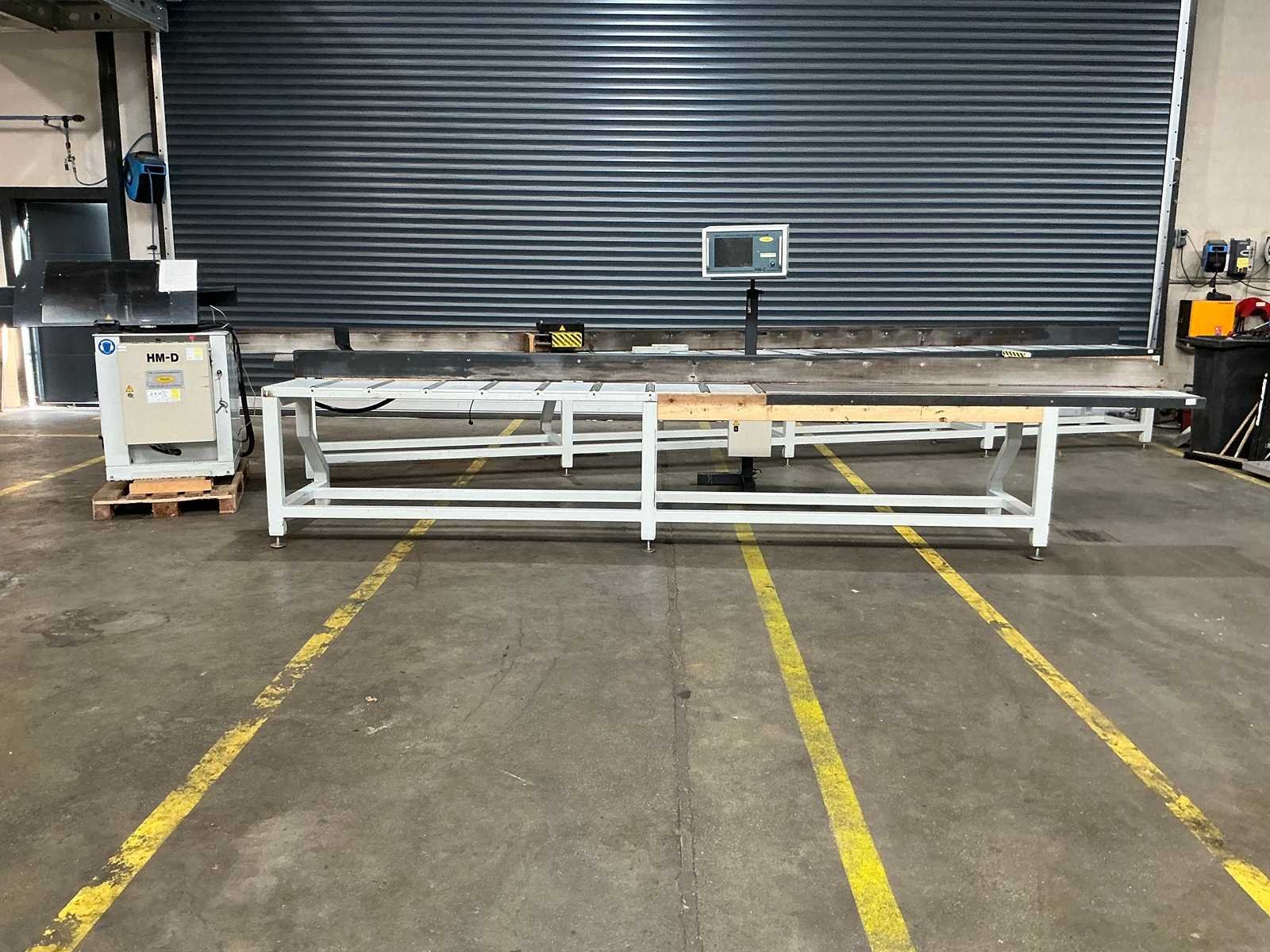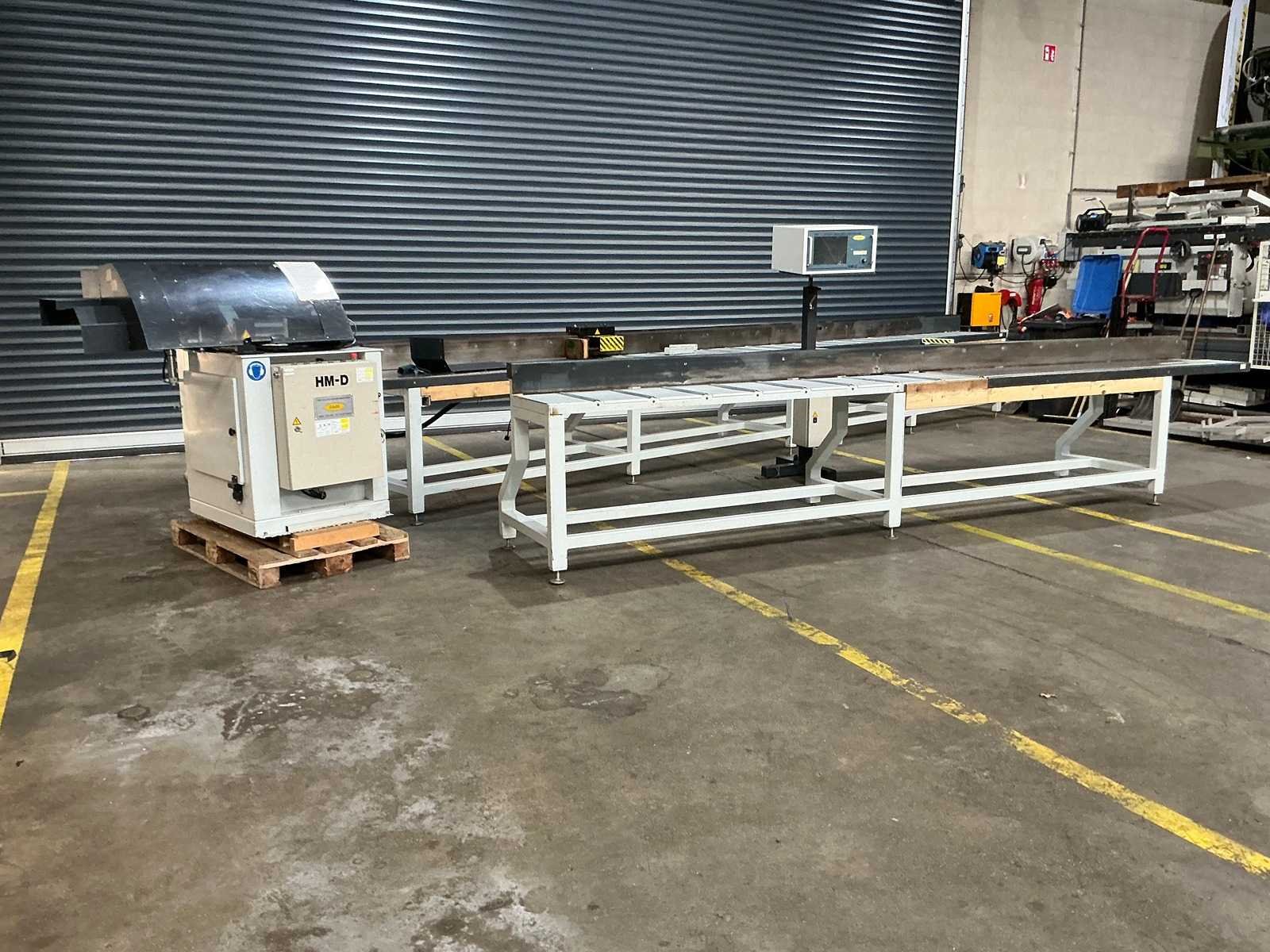 Max zaaglengte: 6000mm 3 colli's: Collie 1: 1400x1100x1550mm Collie 2: 5000x830x1030mm Collie 3: 7900x830x1030mm Merk: H&M Type: HM-D Zaaghoogte: 230mm Onderliggende afkortzaag: true Lengte aanvoerrollenbaan: 6000mm Machinegewicht: 1500kg