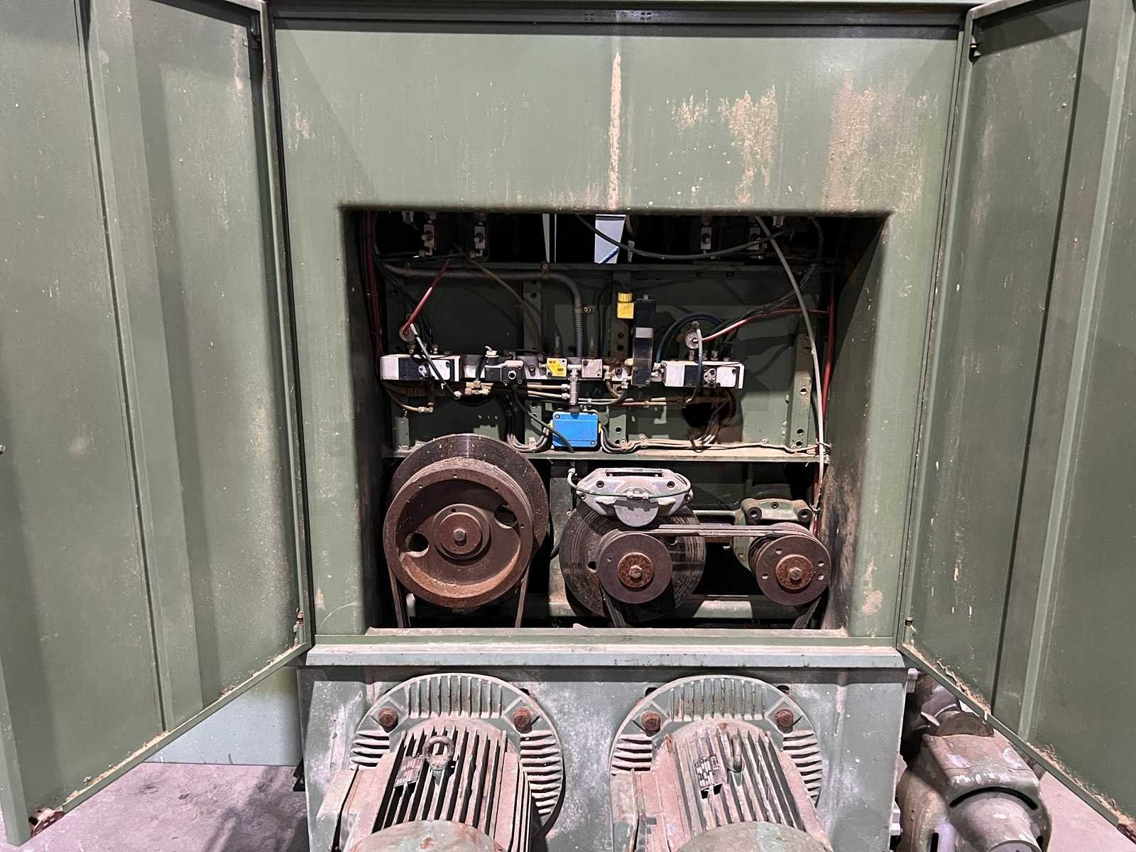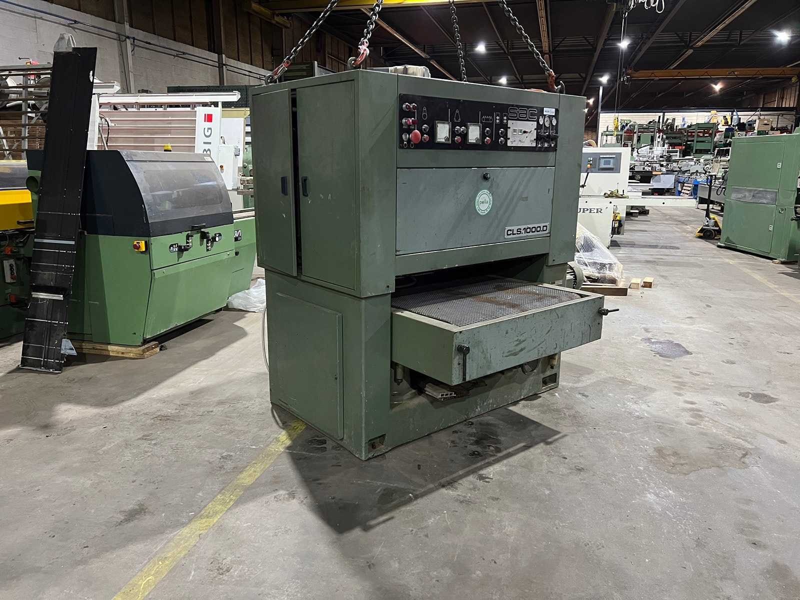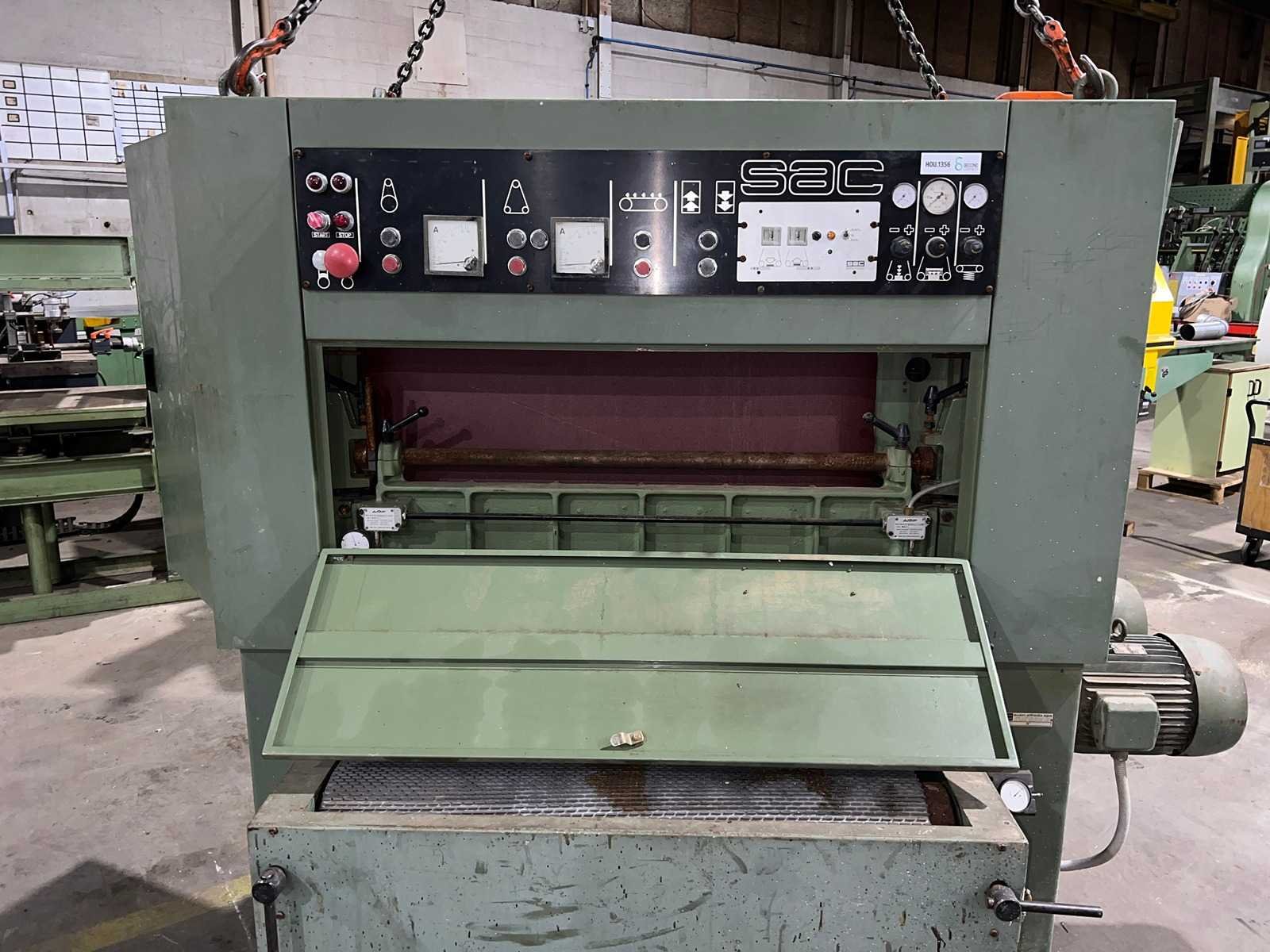 1e schuuraggregaat Contactrol 254mm Motor 15kW 2e schuuraggregaat Combi aggregaat met schuurpad Motor 11kW Snelheid 5-30 m/sec Maximale schuurbreedte 1000mm Merk: SAC Type: CLS 1000 D Schuurhoogte max.: 170mm Schuurband afm. l: 1030mm Schuurband afm. b: 1900mm Aansluiting: 380V Machinegewicht: 3250kg Afmeting l: 2000mm Afmeting b: 2000mm Afmeting h: 2000mm