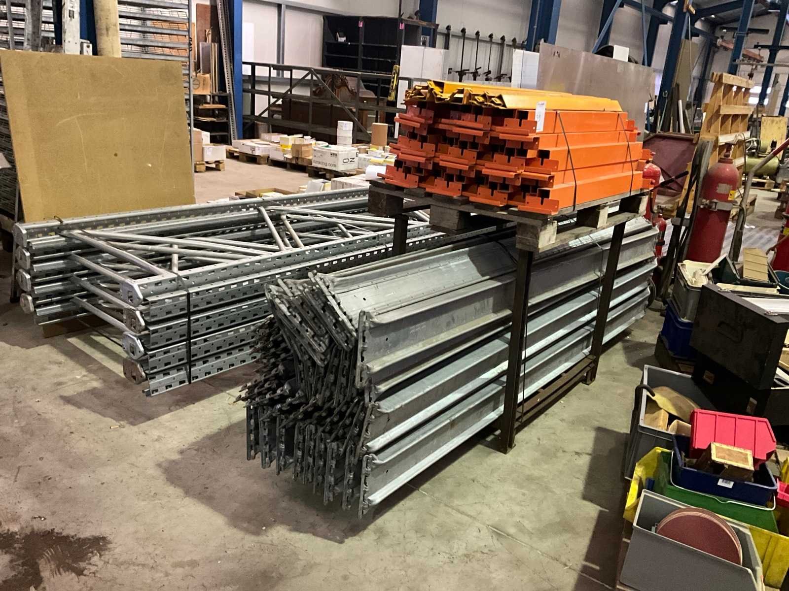 Inclusief partij dwarsliggers. Sectie diepte: 1050mm Sectie afm. h: 3900mm Aantal staanders: 8 Aantal liggers: 41 Demontabel: true Materiaal: Metaal