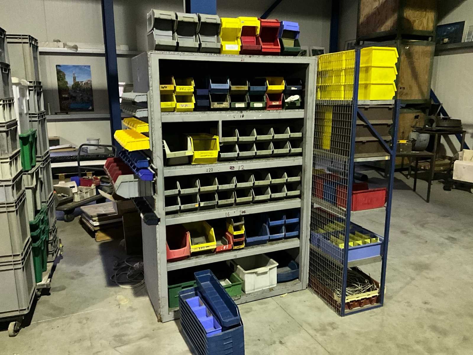Ca 100 bakken; ophangrek en strips Lengte: 60cm Breedte: 130cm Hoogte: 195cm Materiaal: Metaal / hout