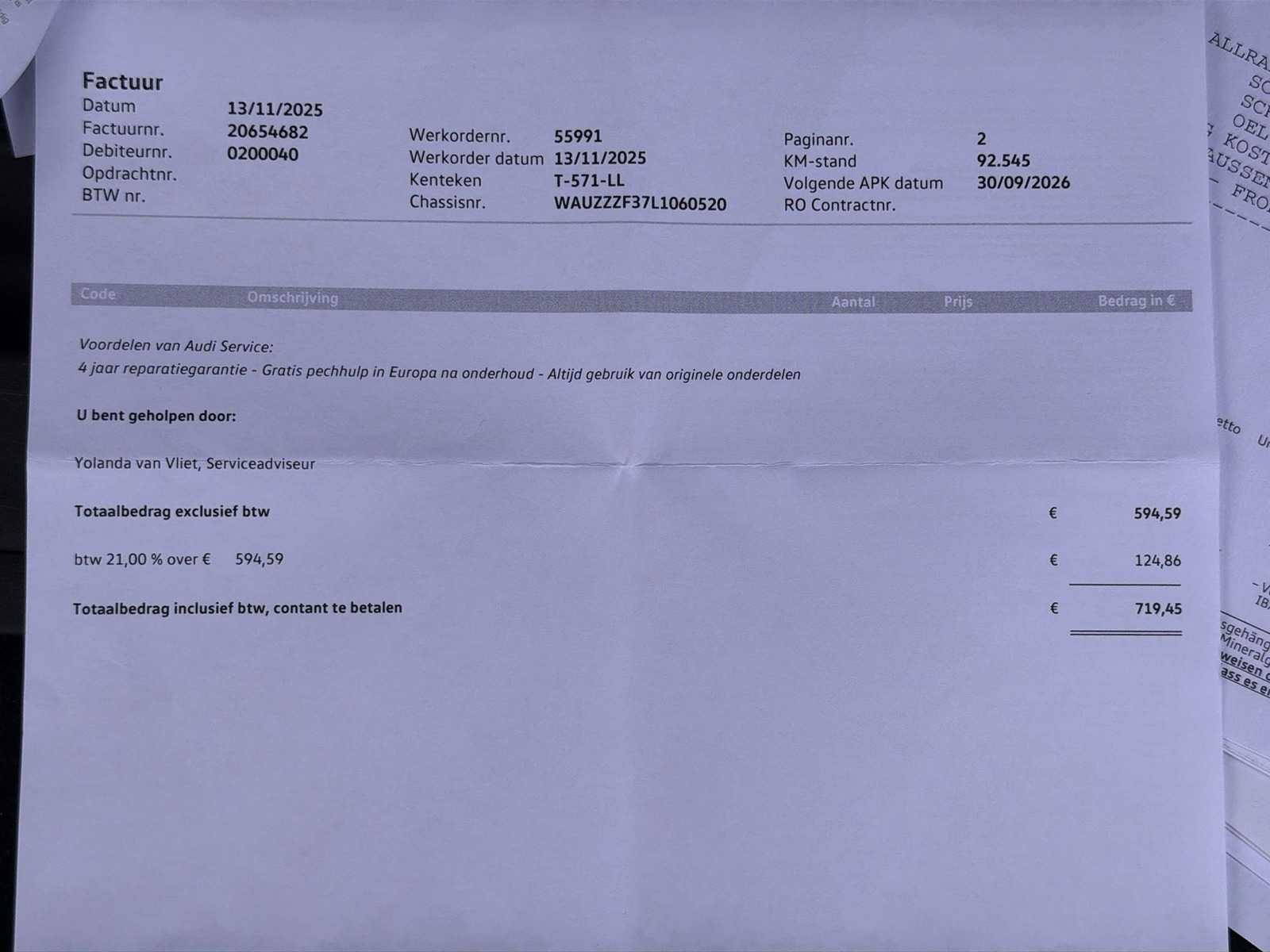 5KR : Achterbank plus KA2 : Achteruitrijcamera 9AK : Airconditioning, volautomatisch (2-zone) KH5 : Airconditioning, volautomatisch (3-zone) QQ2 : Ambiente lichtpakket 7AL : Anti-diefstal alarmsysteem 9VD : Audi sound system 9S8/9S9 : Audi virtual cockpit 4L6 : Binnenspiegel, automatisch dimmend 6XK : Buitenspiegels, elektrisch inklapbaar en automatisch dimmend 4I3 : Comfortsleutel 8T6 : Cruise control QV3 : Digitale radio ontvangst QL5 : Glas, donker getint (privacy glas) 8G1 : Grootlichtassistent 6NQ : Hemelbekleding in zwart 8X1 : Koplampreinigingsinstallatie PNR : MMI navigatie plus met MMI touch inclusief Audi Connect Basis - zonder Google Earth 7X2 : Parkeerhulp plus 7W1 : pre sense basic 1N7 : Progressieve besturing 1JC : Sportonderstel Q4H : Sportstoelen vóór 4A3 : Stoelen, vóór verwarmbaar QR9 : Verkeersbordenherkenning Kenteken: T-571-LL Merk: Audi Model: Q3 Sportback Type: 45 TFSI Quattro S-Line Bouwjaar: 2020 Afgelezen kilometerstand: 93205km Cilinderinhoud: 1984cc Vermogen (kW): 169kW Brandstof: Benzine Chassisnummer: WAUZZZF37L1060520 Datum eerste toelating: 2020-06-03 Datum eerste toelating (NL): 2023-11-02 APK vervaldatum: 2026-09-30 Vermogen (pk): 230hp Aandrijving: Start en rijdt Aantal zitplaatsen: 5 Kleur: grijs Transmissie: Automaat Emissieklasse: 6 Aantal deuren: 4 Aantal sleutels: 1 Ledig gewicht: 1600kg Bruto BPM (NL): 12698€ Aantal cilinders: 4 Carrosserie: hatchback Start en rijdt: Start and drive startinformatie : Start en rijdt