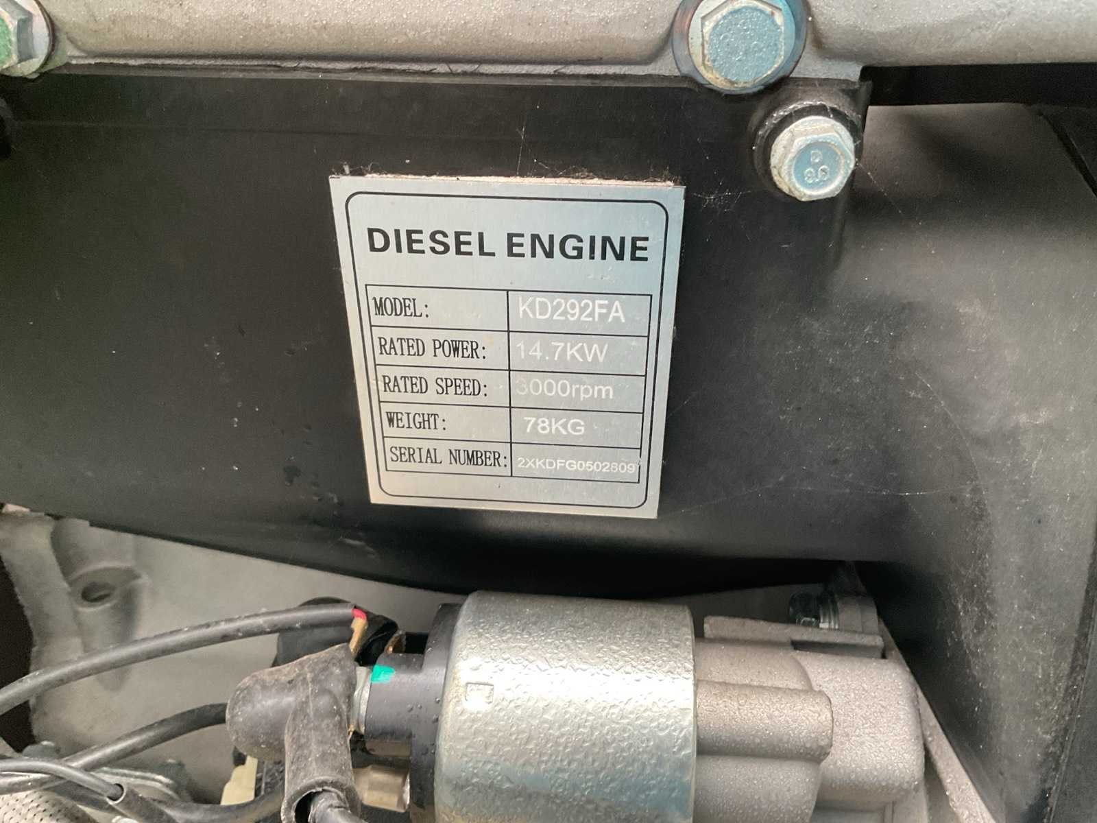 Voorzien van; 3-puntshefinrichting; 1100 mm roterende frees; 5.5/65-11 voorbanden; 8.50/75-13 achterbanden; 2 - cillinder dieselmotor; ca 20 pk vermogen; handgeschakeld 2 bereiken; Aftakas (WOM/PTO) achter 2 snelheden; 1 paar hydraulische uitgangen achter; voorgewichten aan de neus Merk: Greenstar Type: MK20 Bouwjaar: 2024 Motorvermogen (kW): 14,7kW Versnellingsbaktype: handgeschakeld Aantal hydraulische ventielen achter: 2 Eigen gewicht: 600kg