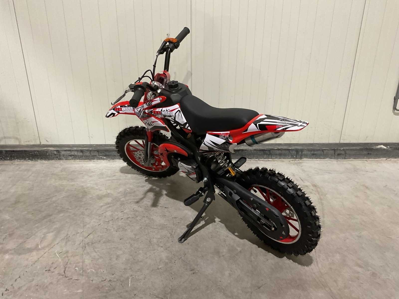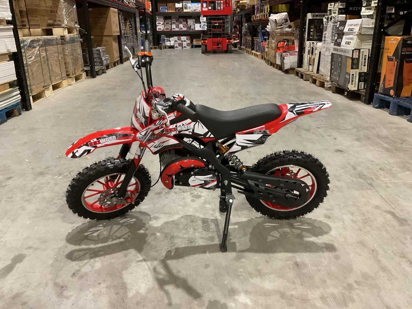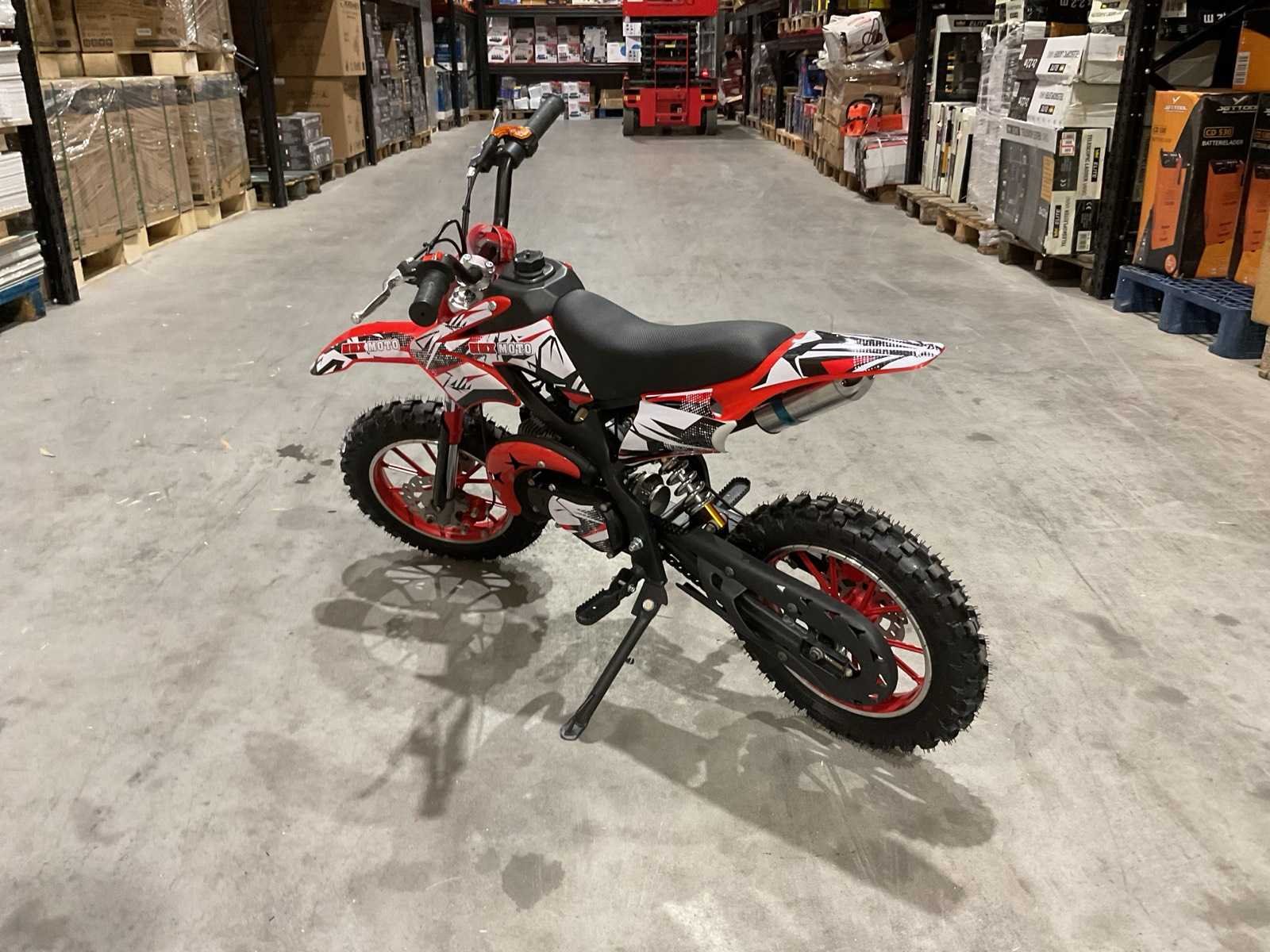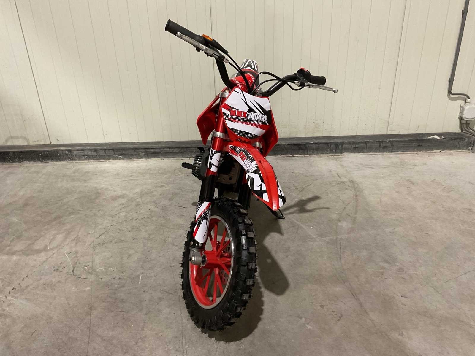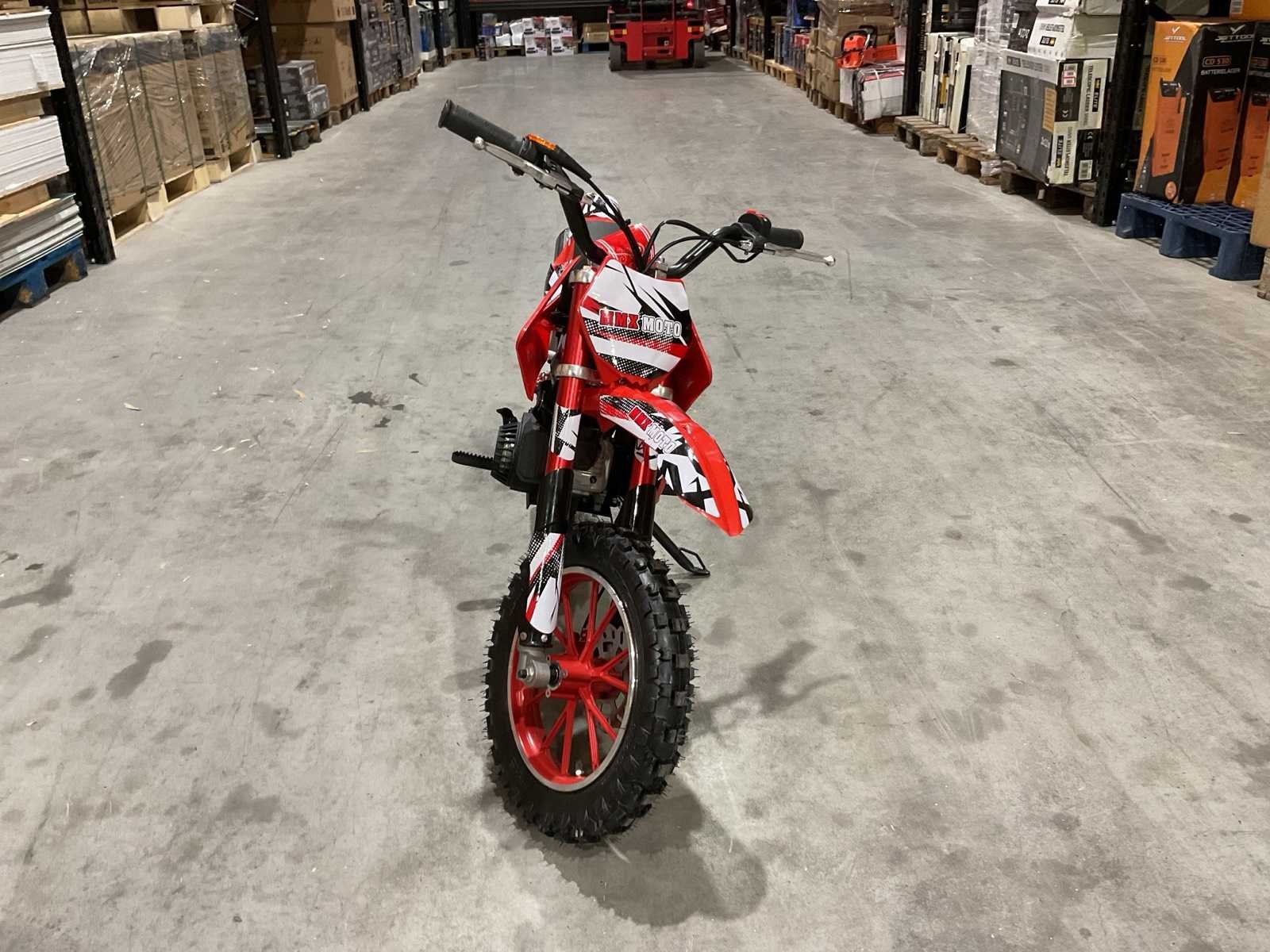 Voorzien 49cc 2 takt benzine motor; trekstart; magneto ontsteking; mengsmering; Transport schade op het wiel; Afmetingen verpakking: 1050x345x555 (LxBxH) Merk: MMX Model: Moto Type: TWHHPB-003