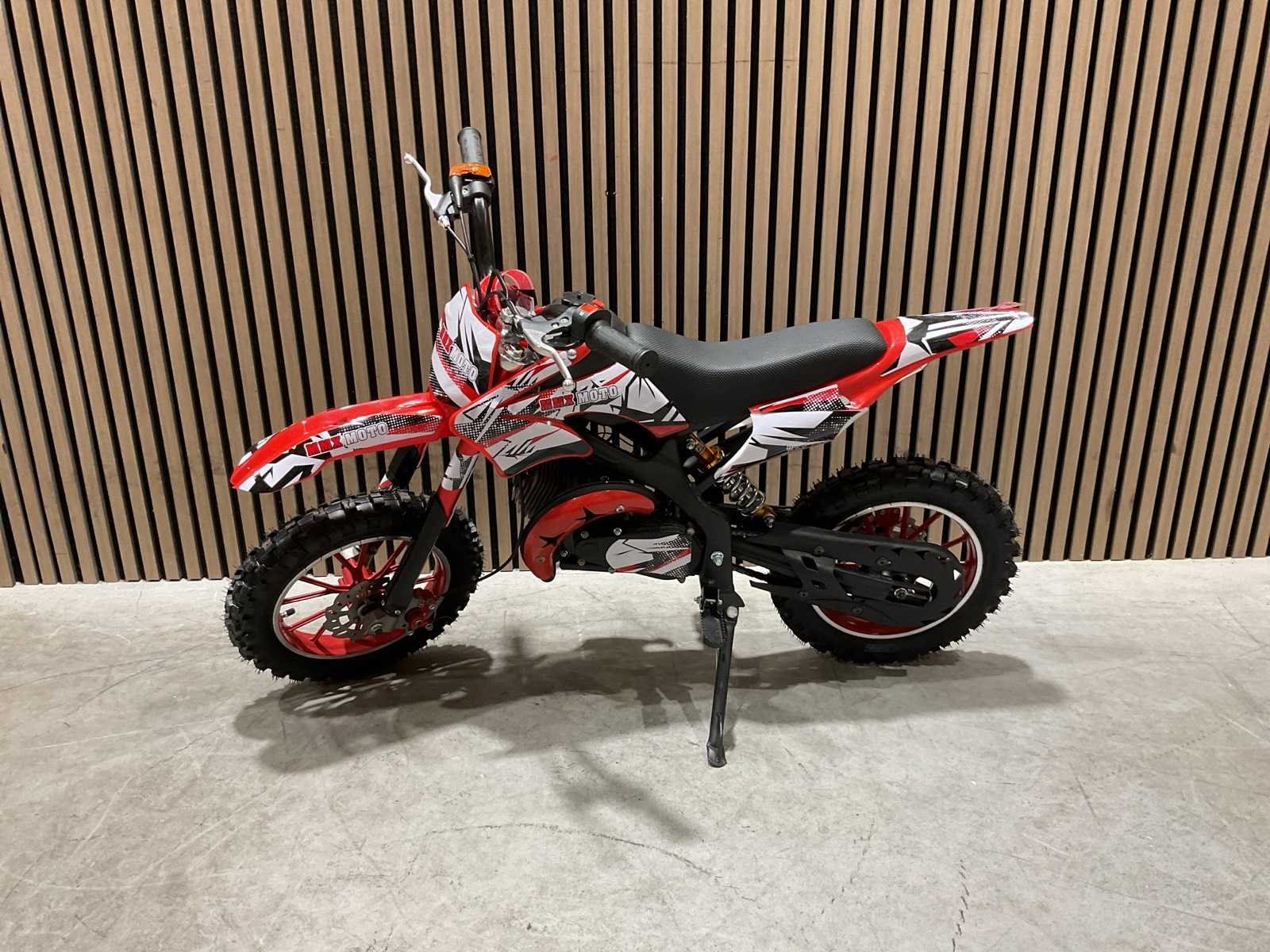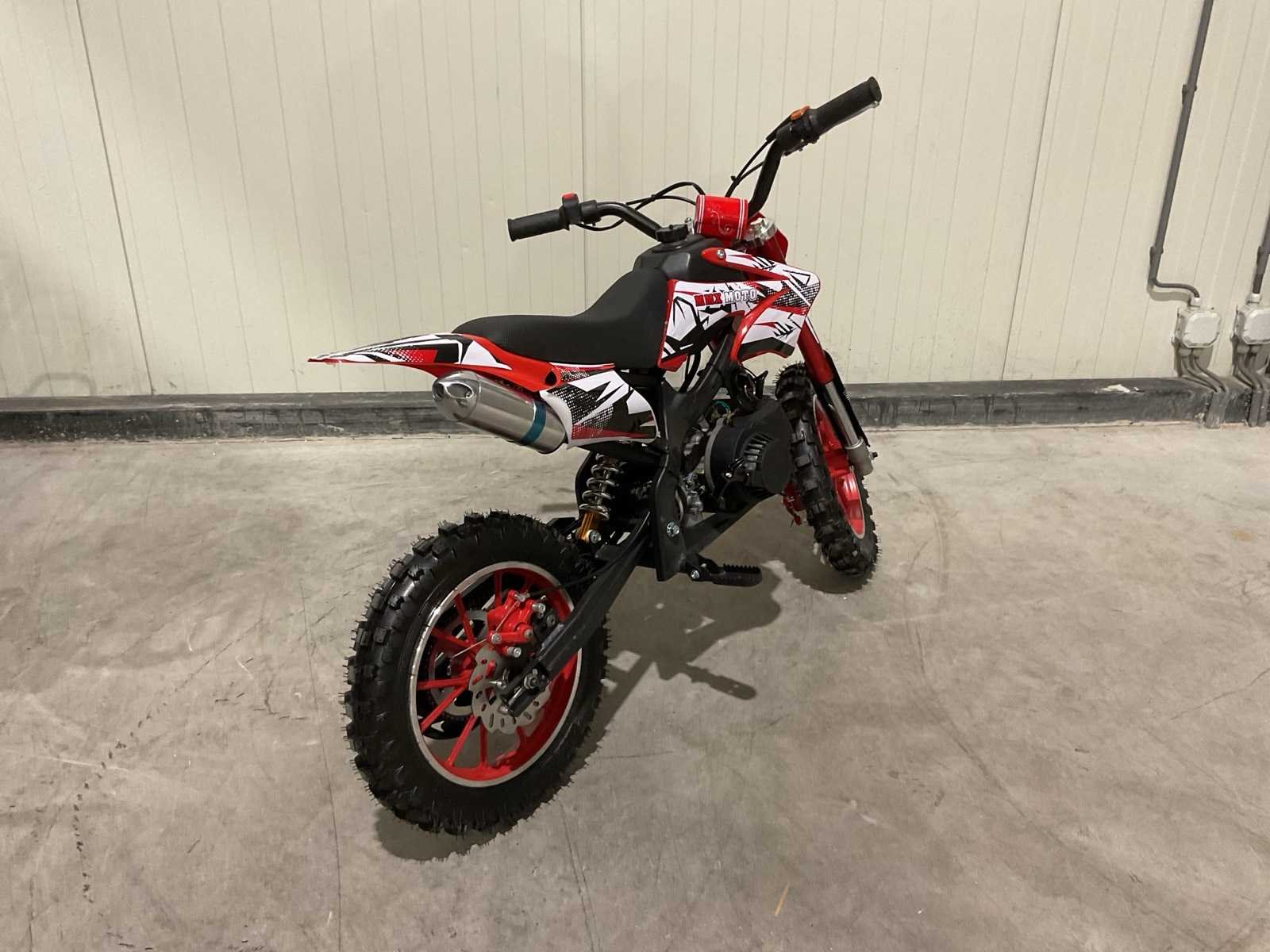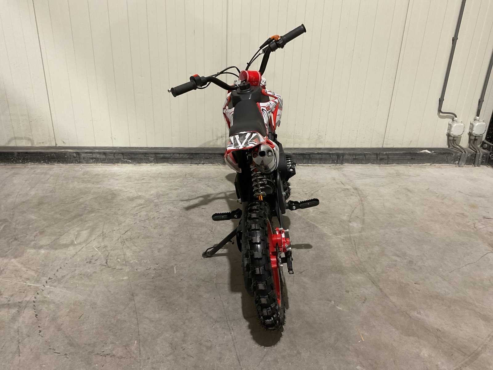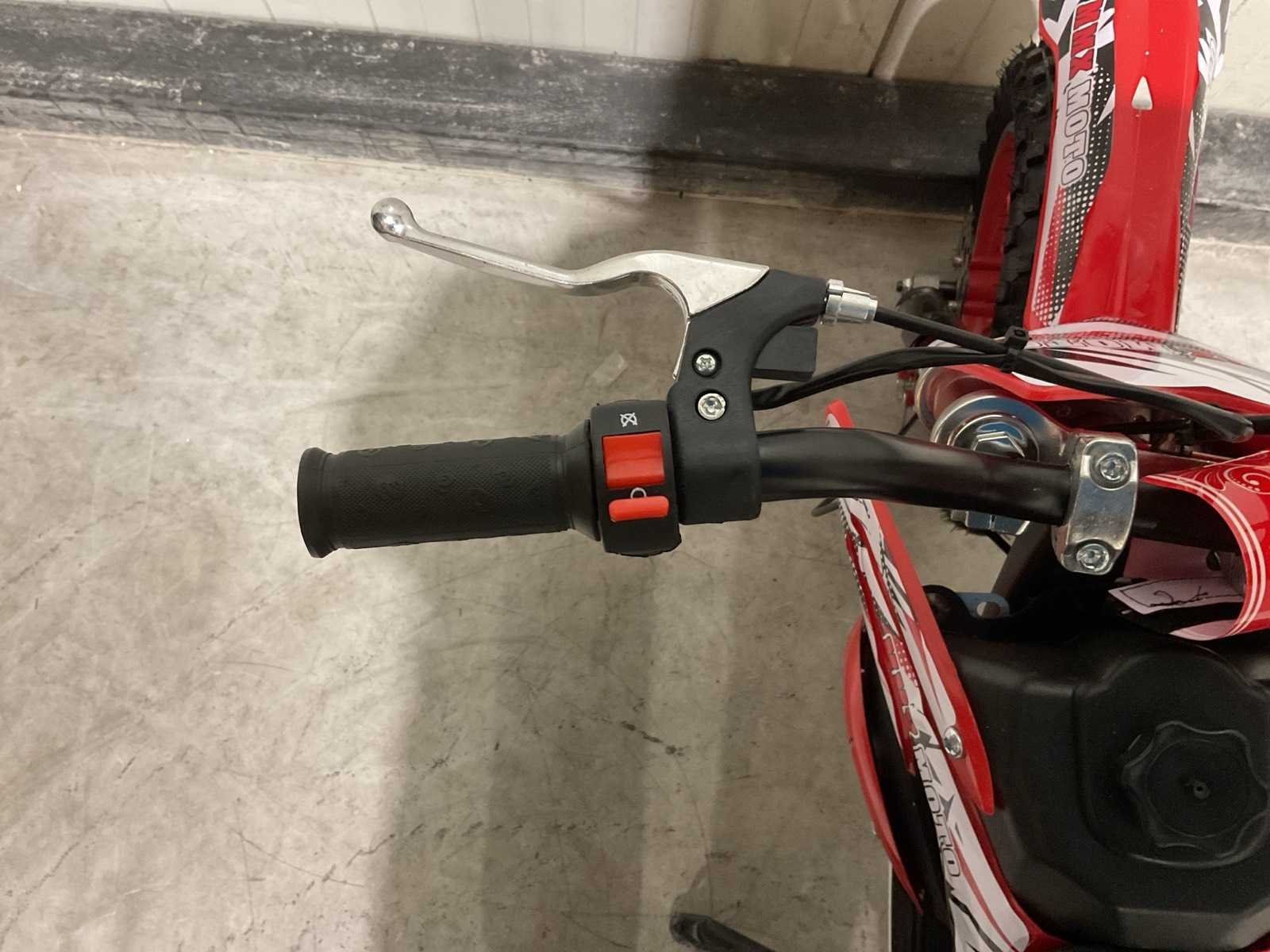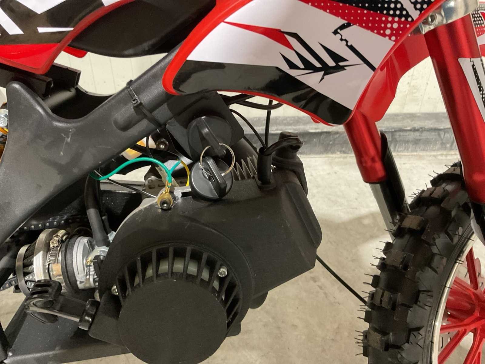 Voorzien 49cc 2 takt benzine motor; trekstart; magneto ontsteking; mengsmering; Transport schade op het wiel; Afmetingen verpakking: 1050x345x555 (LxBxH) Merk: MMX Model: Moto Type: TWHHPB-003