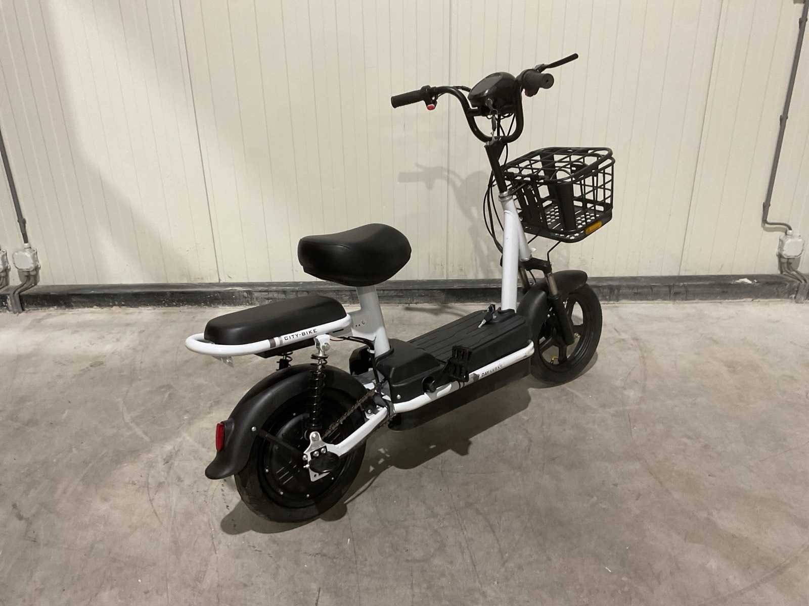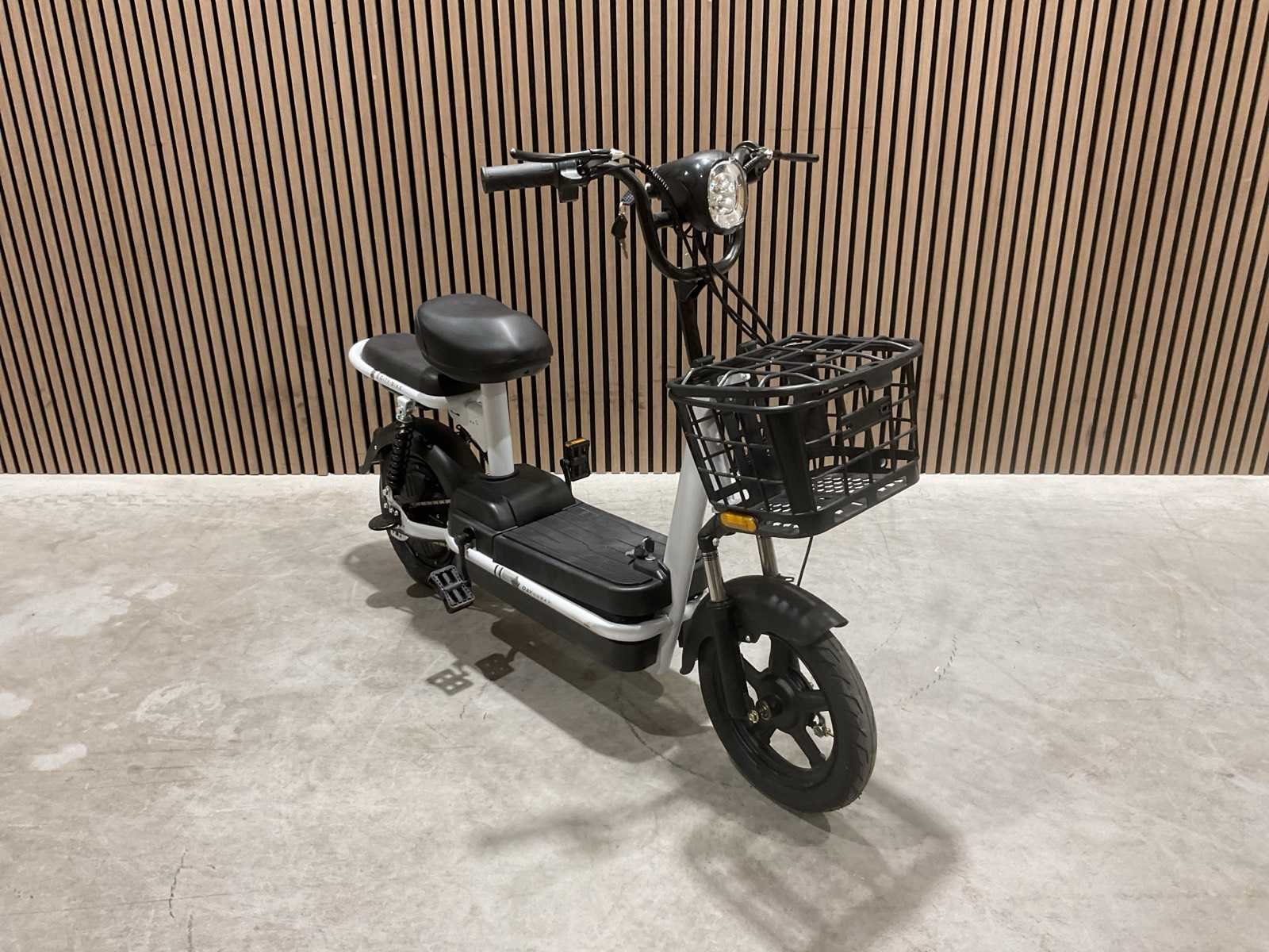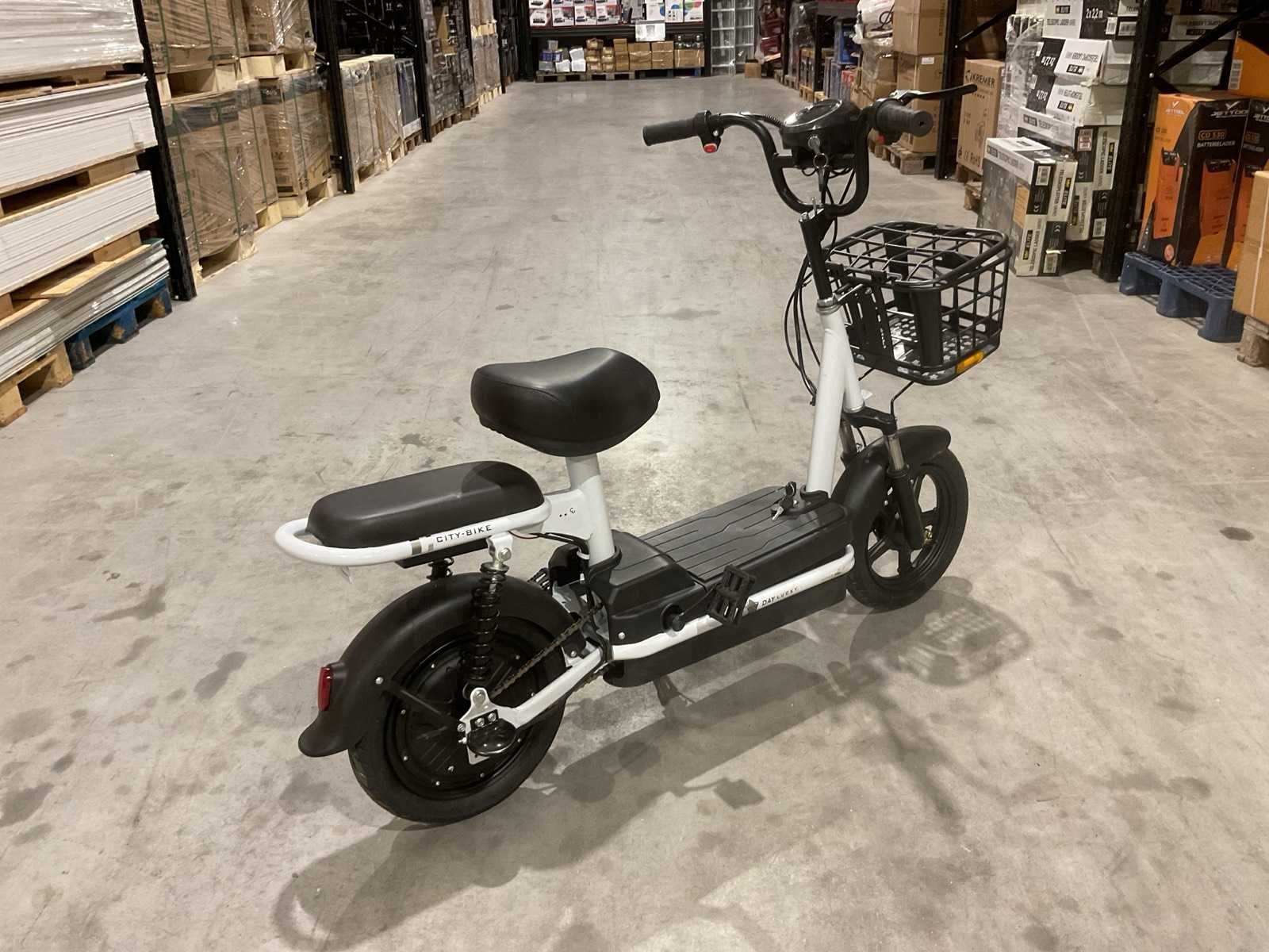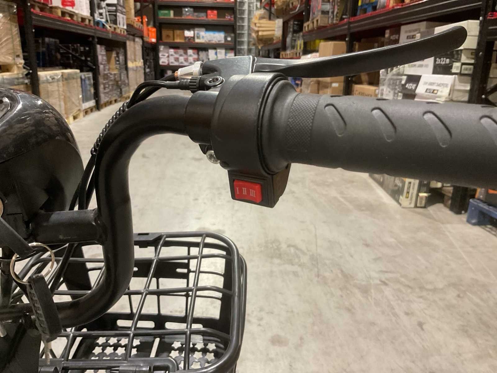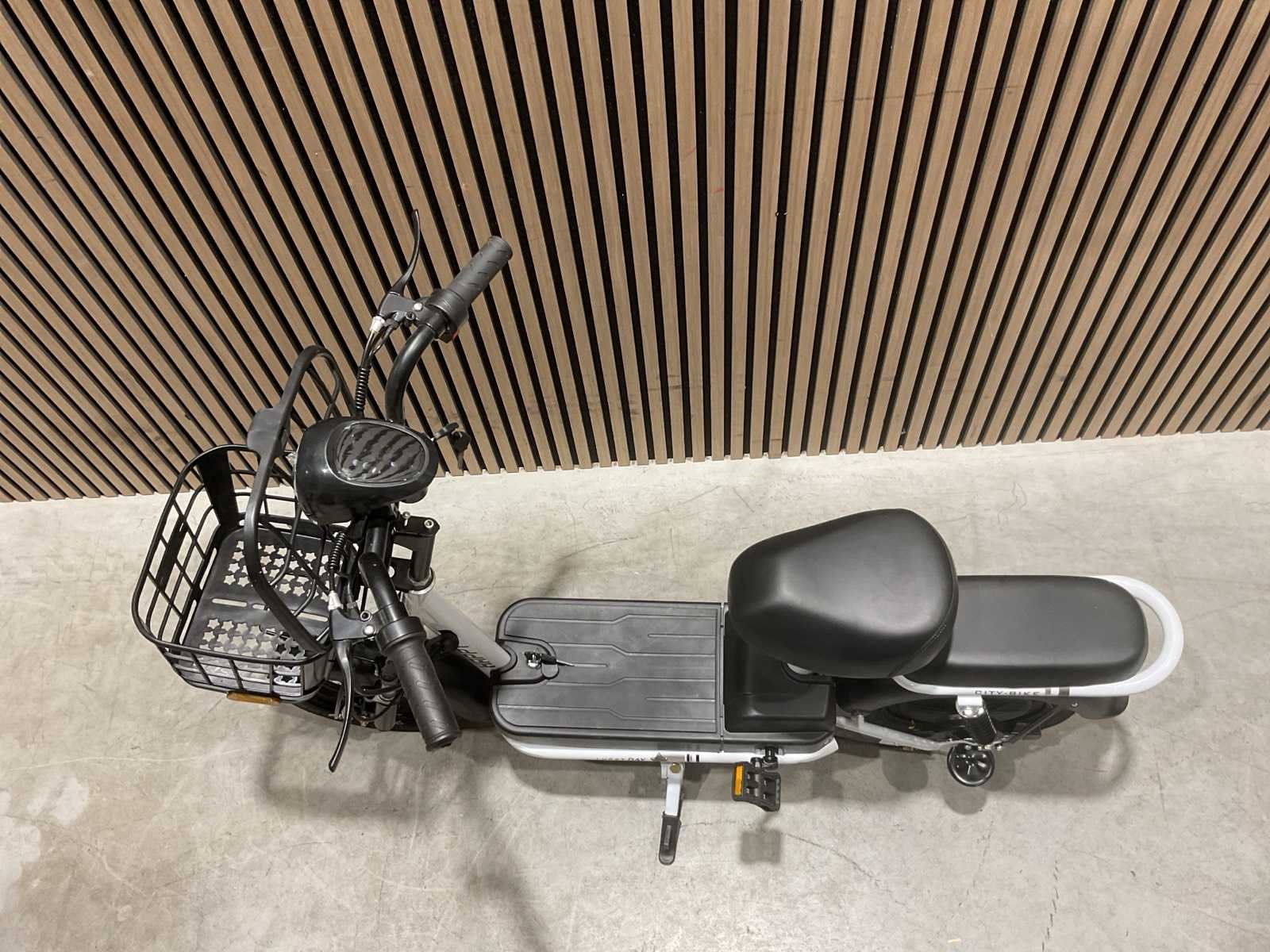 Voorzien van 48V e-bike; Borstelloze achternaafmotor; 14" wielen met 14×2.5 band; Rear hub motor; 350W; Spanning: 48V; Accu: 48V 12Ah; Actieradius: 60 km; Max. snelheid: ±35 km/h; Remsysteem: voor schijf + achter trommel; Max. belasting: 150 kg; Gewicht: ca. 36 kg; Laadtijd: 8–10 uur; Ongebruikt Merk: SKLP Model: City-bike Product type: Happy