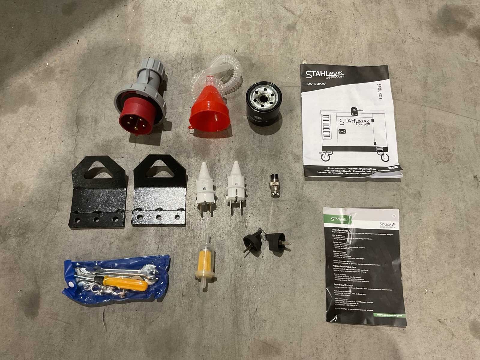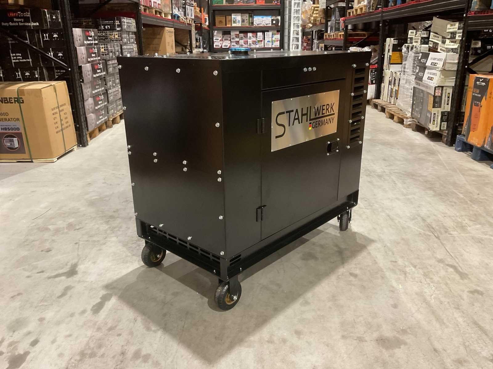 Voorzien van ATS; Afstands bediening; 1247cc Dieselmotor; 24,4HP; Output single fase 16,9 kva; Output drie fase 18,8 kva; Max output single fase 18 kva; Max output drie fase 20 kva; 46 liter; olie3,5 liter; Display LED; elektrische start; werkingsduur bij 75% belasting 9 uur; geluidsdruk LpA 72dB(A) @ 7m output 2 pins 230v 16a; 5 pins 400v 32a. ongebruikt in doos (Transport afmeting; 1160x70x1125mm; Gewicht 354kg) Merk: Stahlwerk Type: SW-20KW Bouwjaar: 2025 Capaciteit.: 20kVA Diesel: true Aantal cilinders: 2 Luchtgekoeld: true Mobiel: true Handboek aanwezig: true Machinegewicht: 334kg Totale afmeting L: 1140mm Totale afmeting Breedte: 1100mm Totale afmeting Hoogte: 680mm