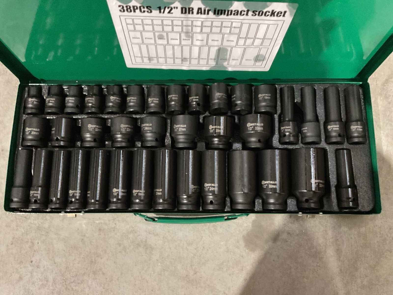 Voorzien van 20delig korte maten 8, 9, 10, 11, 12, 13, 14, 15, 16, 17, 18, 19, 20, 21, 22, 23, 24, 27, 30, 32; 18 delige lange doppen maten lange krachtdop 8 , 9 , 10, 11 , 12, 13, 14, 15, 16, 17, 18, 19, 21, 22, 24, 27, 30, 32; Ongebruikt in doos Merk: Metallo Type: 38 ST Krachtdoppen Bouwjaar: 2025 Lengte: 50cm Breedte: 22cm Hoogte: 6cm