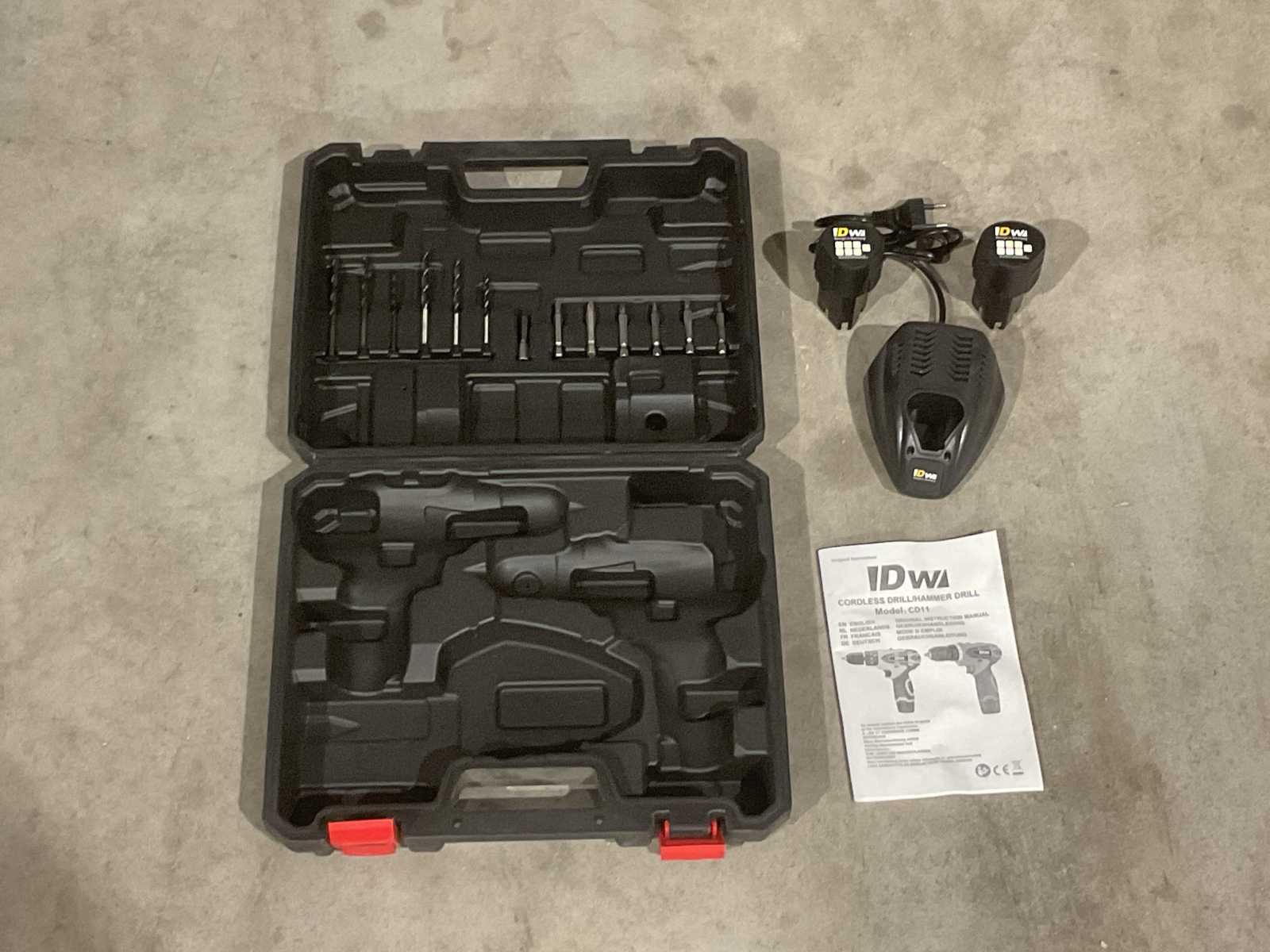 Voorzien van koffer met accessoires; 2 accu’s; oplader; 2 boormachines waarvan 1 met klopfunctie; 6 boren; 6 biten; Ongebruikt in doos (Transport afmeting 350 x 100 x 300, Gewicht 3.44kg) Merk: DW Type: CD11 Bouwjaar: 2025 Accuspanning: 18V Aantal accu's: 2 Accu type: LITHIUM ION Accu lader: true Klopboormachine: true Boorhamer: true Met koffer: true