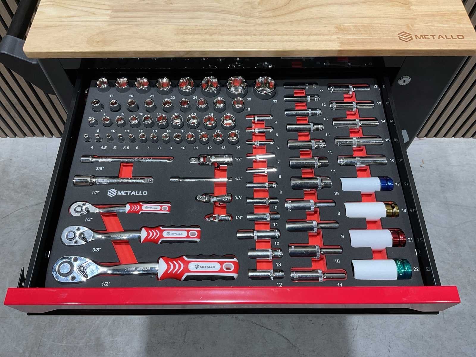 7 lades 6 gevuld Merk: Metallo Type: XXL Edition META-7HS6G-WOOD ROOF Bouwjaar: 2025 Aantal laden: 7 Met inhoud: true Eigen gewicht: 76kg Totale afmeting L: 855mm Totale afmeting Breedte: 495mm Totale afmeting Hoogte: 850mm