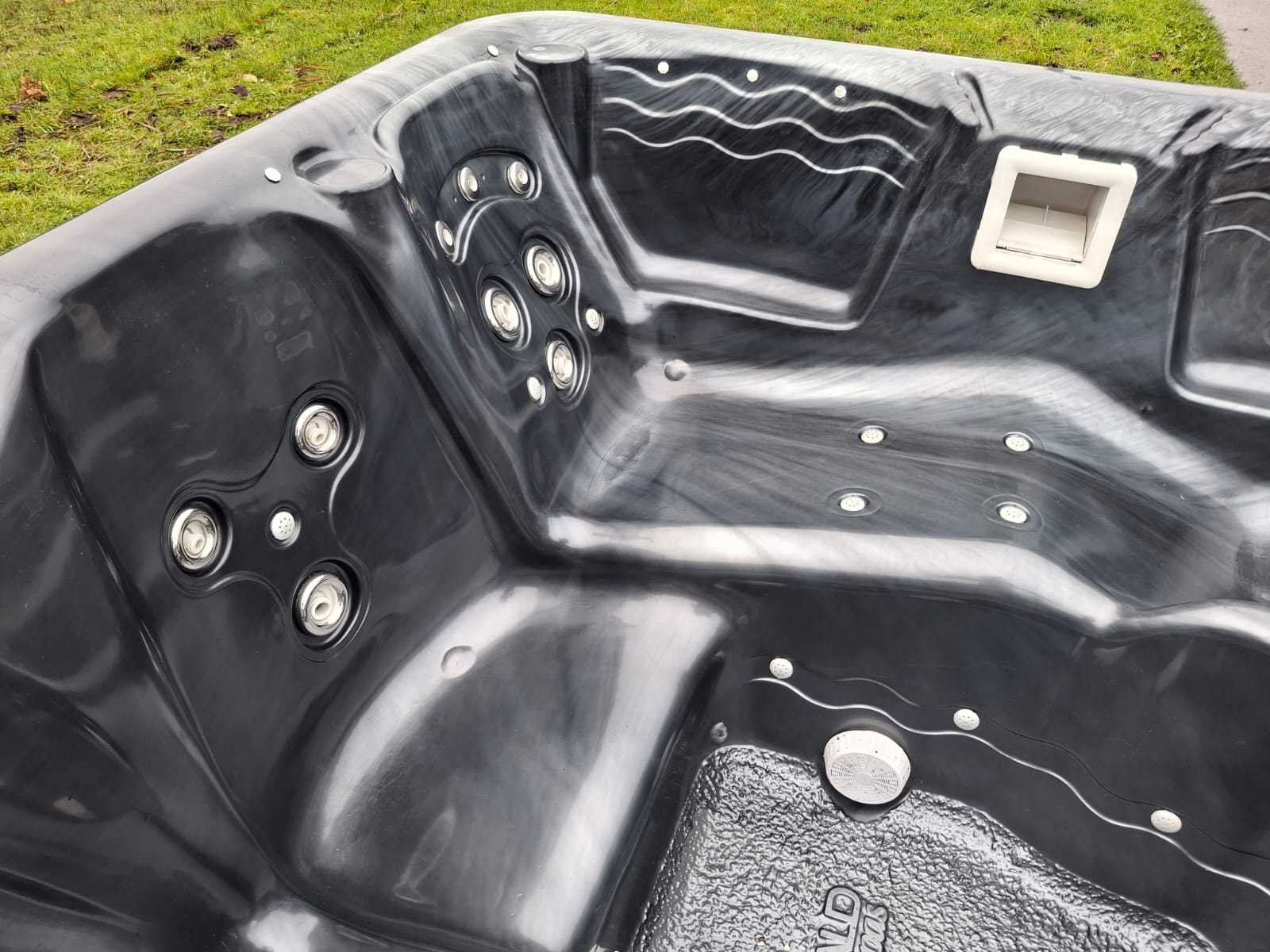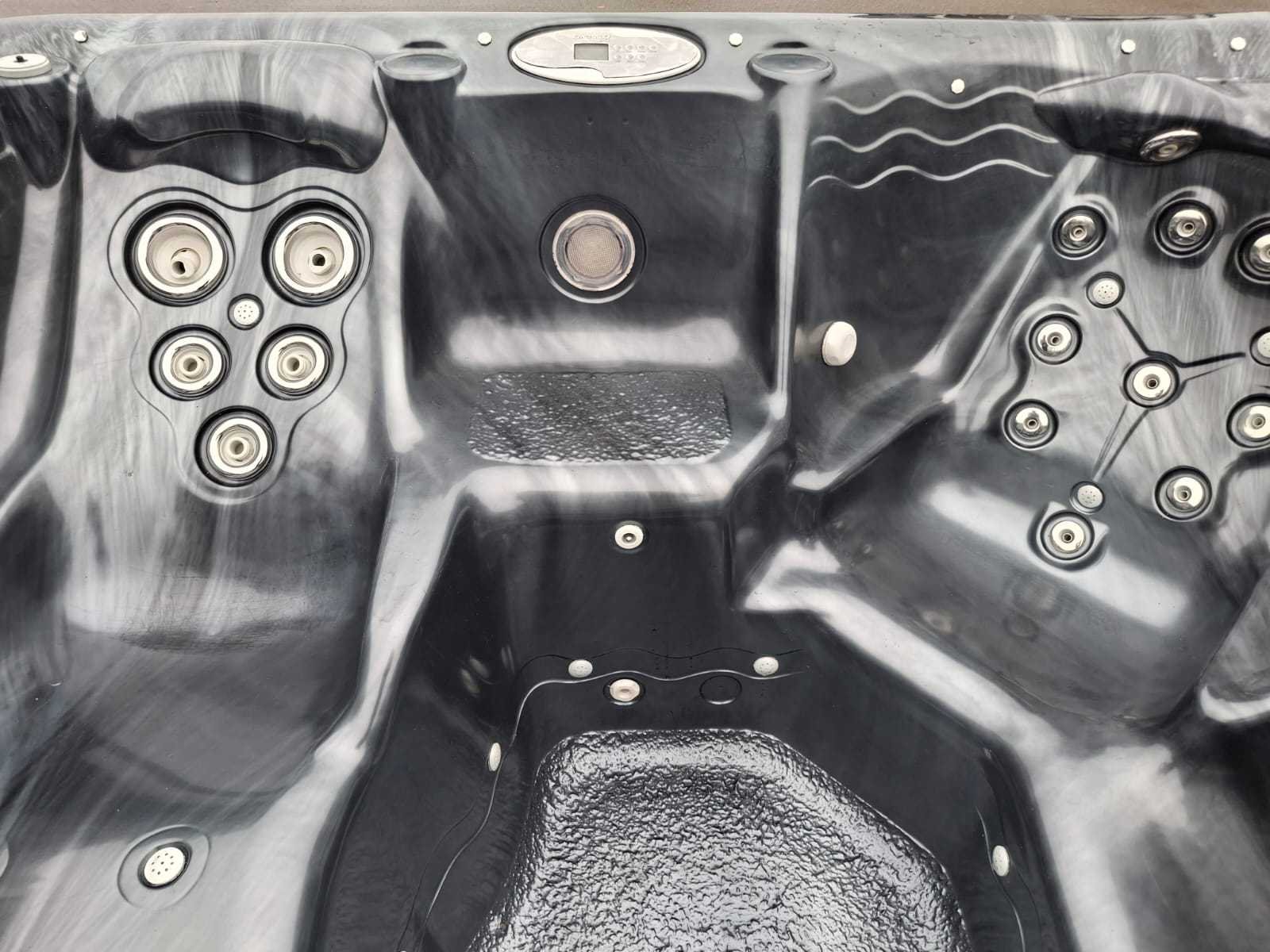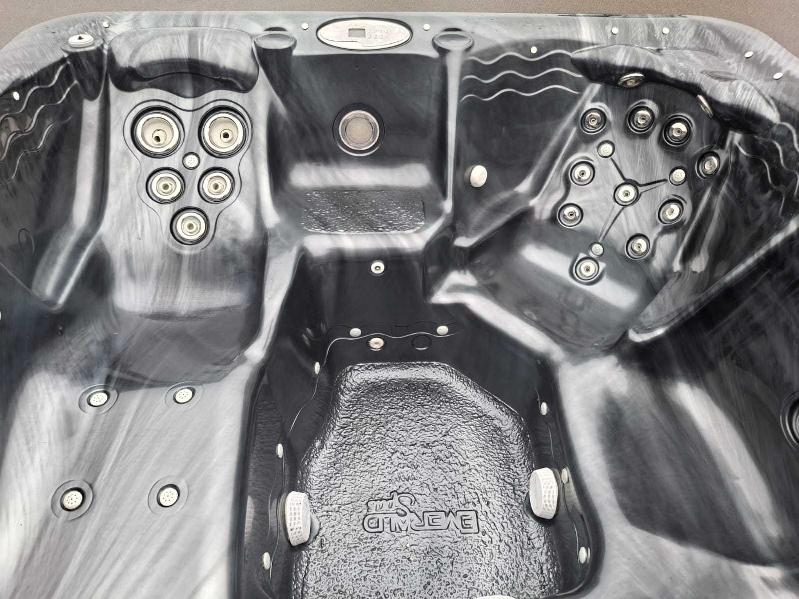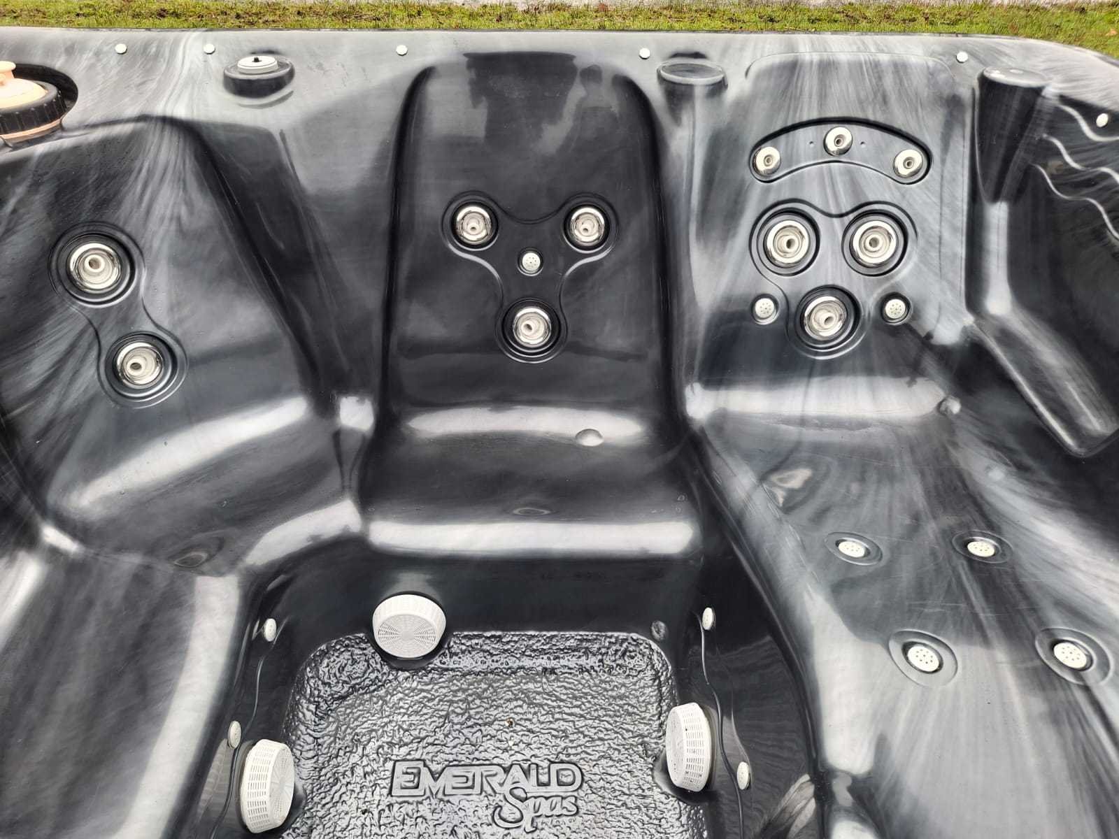Voorzien van 2 ligplaatsen tegen over elkaar; 5 zitplaatsen; led verlichting in alle kleuren; Amerikaanse jacuzzi; automatisch filtersysteem Niet getest op functioneren (Marge, geen BTW) Merk: Emerald spa Model: 7 persoons Verlichting: Ja Jets: 42 Aantal personen: 7 Lengte: 215cm Breedte: 215cm Hoogte: 96cm