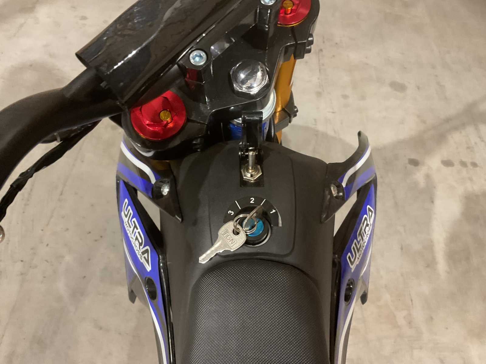 Voorzien van 1500W 60V brushless elektrische motor; hydraulische schijfremmen; ouderen sleutel; bandenmaat voor 15” inch achter 12” inch; ongebruikt in doos (transport afmetingen 130x40x65 cm Gewicht 50kg) Merk: Ultra Motocross Model: DB003E Type: ILX1500 BL Gewicht: 41kg Kleur: Blauw Transmissie: Automaat Aantal sleutels: 2 Bouwjaar: 2025