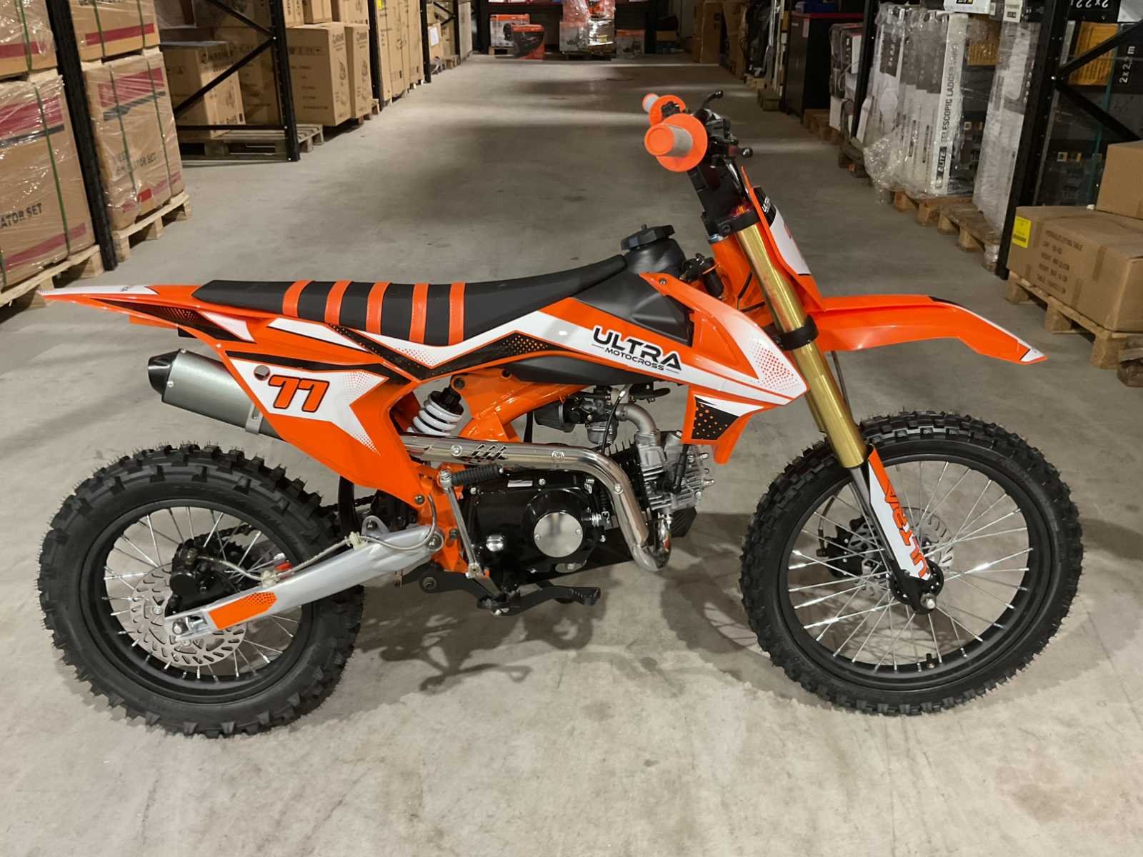 Voorzien van 125cc motor; 4 takt; 11 HP; hydraulische schijfremmen; bandenmaat voor 17” inch achter 14” inch; ongebruikt in doos (transport afmetingen 135x45x65 cm Gewicht 78kg) Merk: Ultra Motocross Model: DB003 Type: ILX 125cc OR Cilinderinhoud: 125cc Gewicht: 71kg Kleur: Oranje Transmissie: Schakel Aantal sleutels: 2 Bouwjaar: 2025