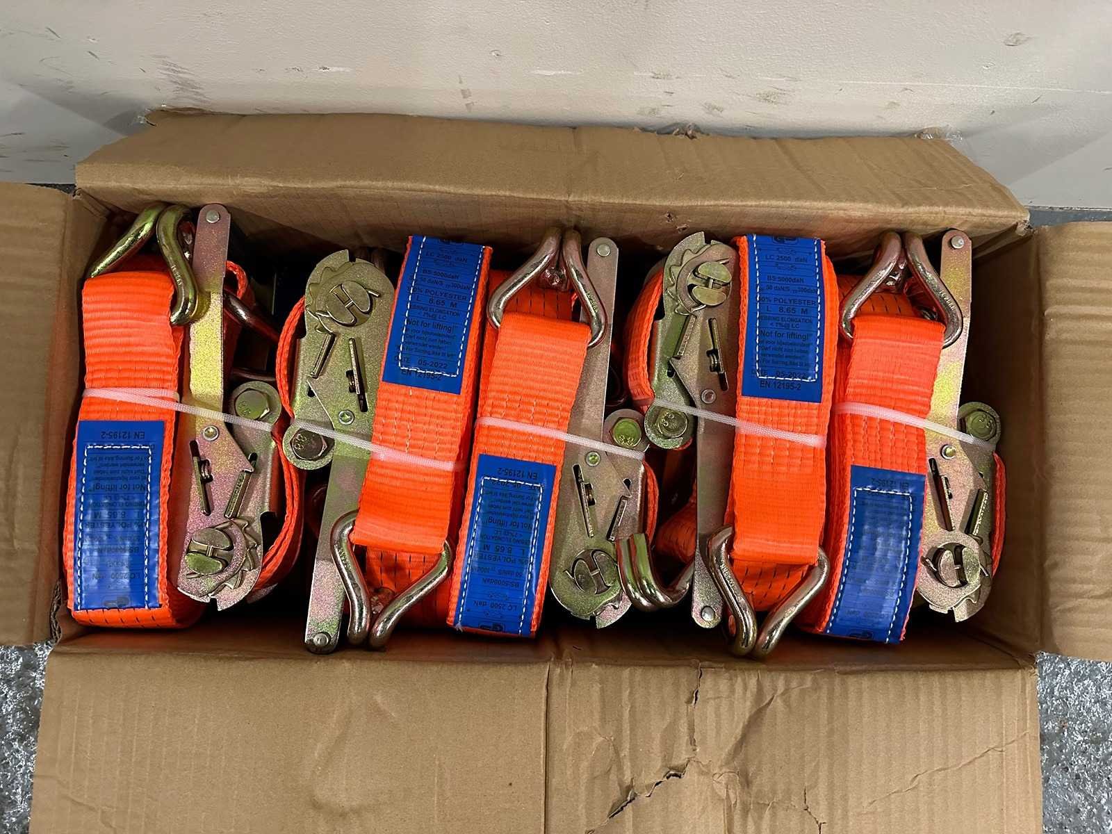 Voorzien van grote ratel; brede band; 10 stuks ; ongebruikt in doos Merk: Loadlok Type: 9 meter 5 Ton Bouwjaar: 2024