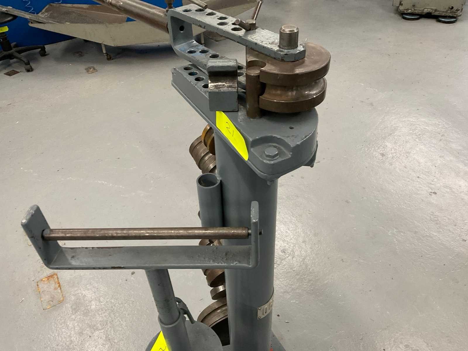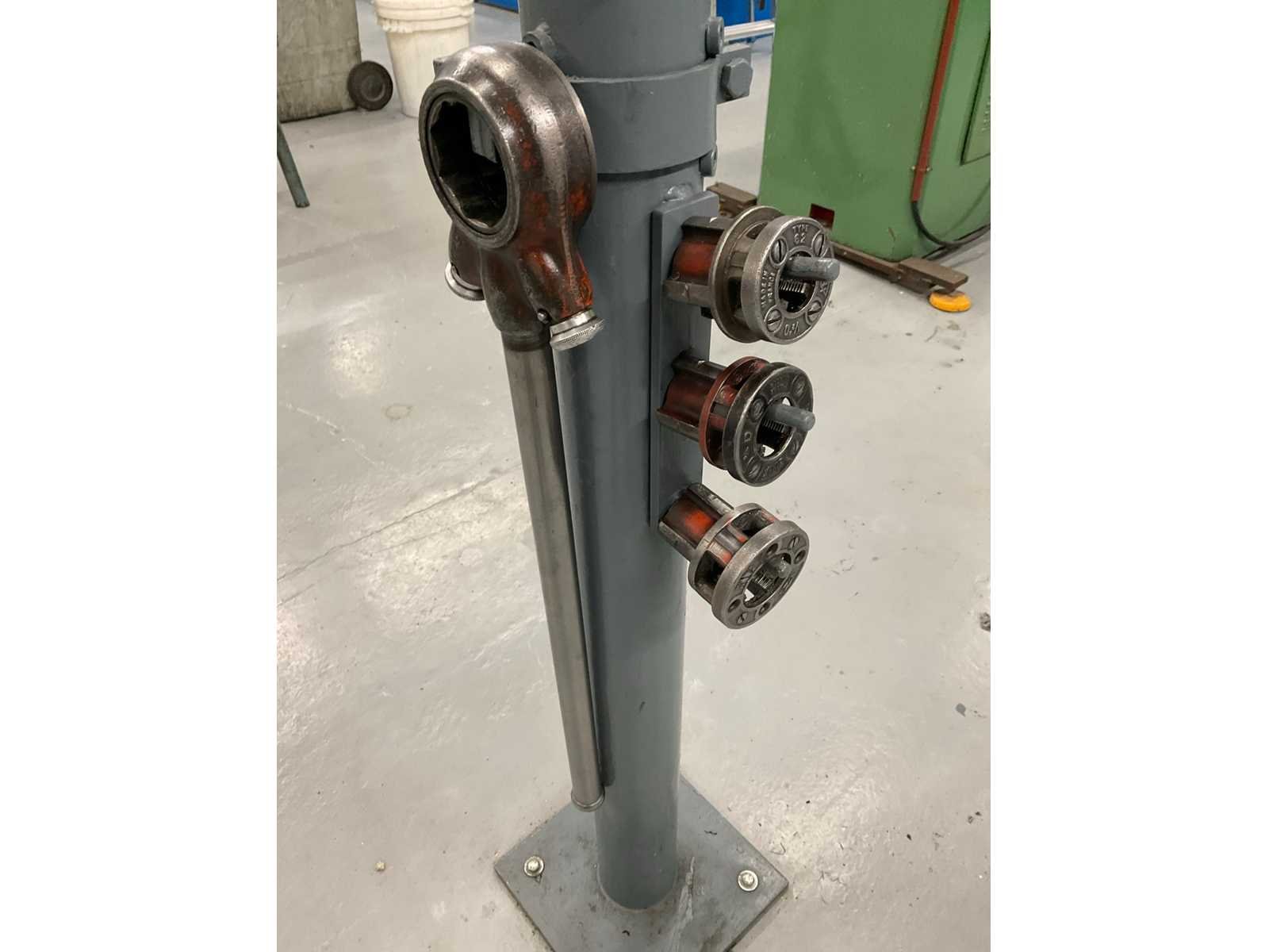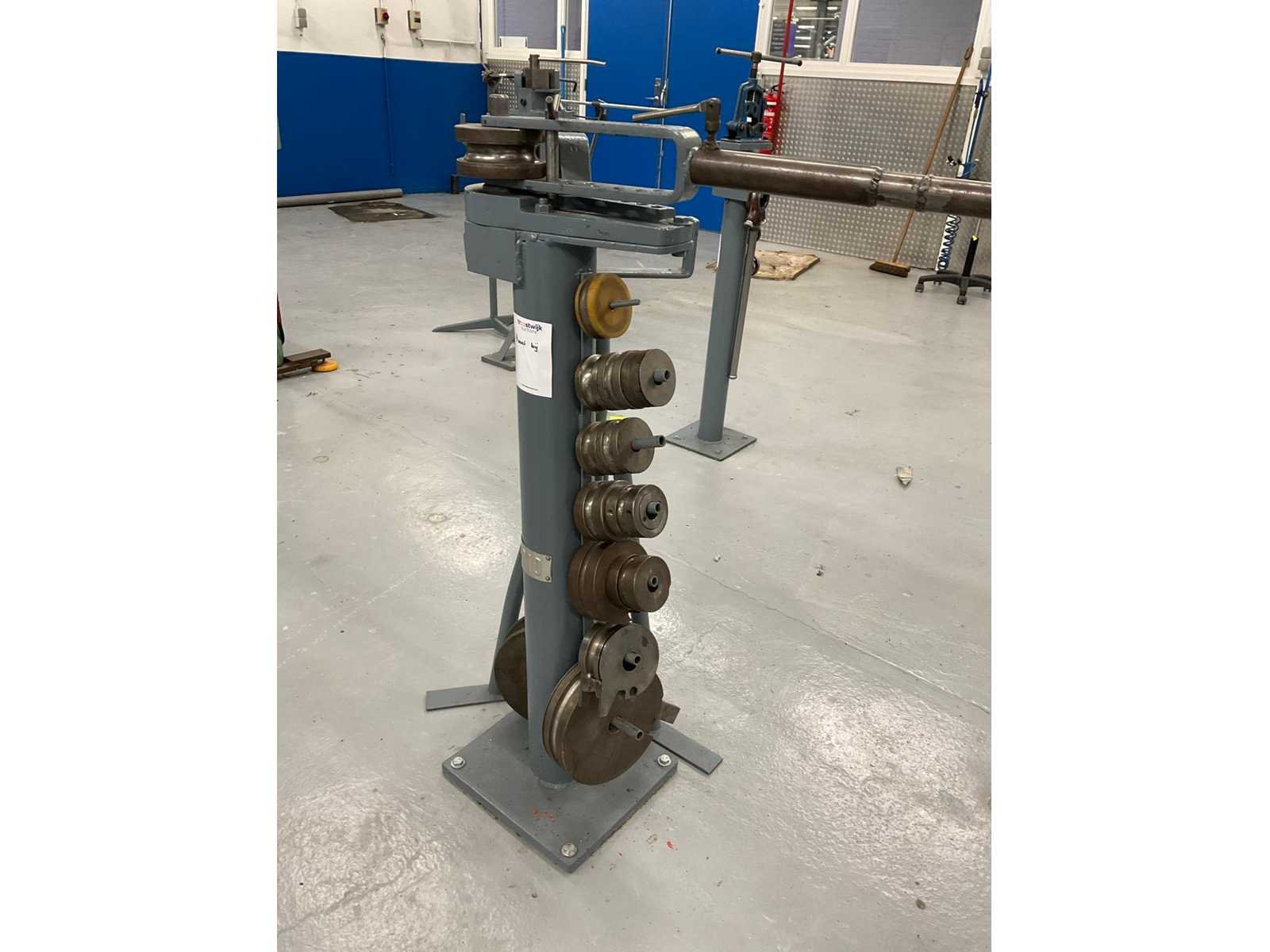 Bestaande uit: (1x) Mubea platenknipschaar op sokkel, 200mm, (1x) pijpenbuiger op sokkel met buigrollen, (1x) Pijpenklem met snij-ijzer met snijkoppen op sokkel, (1x) Buigapparaat op sokkel, (1x) dubbelsteens slijpmachine op sokkel.
