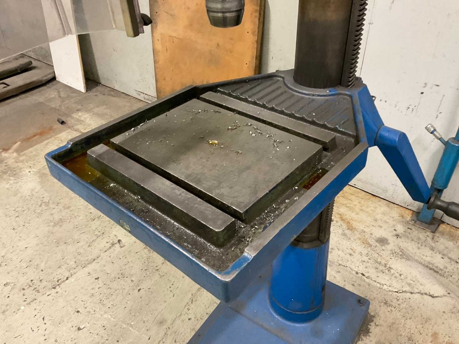 Merk: Alzmetal Type: AX3/SV-N Bouwjaar: 1995 Serienummer: 11742 Boorcapaciteit: 30mm Aantal snelheden: 10 Spindelsnelheid van n =: 40rpm Spindelsnelheid tot n =: 1400rpm Boordiepte: 140mm Uitlading: 300mm Opname mc: 3 Tafel afmeting l: 300mm Tafel afmeting b: 300mm Aansluiting: 400V Afmeting l: 450mm Afmeting b: 650mm Afmeting h: 1850mm