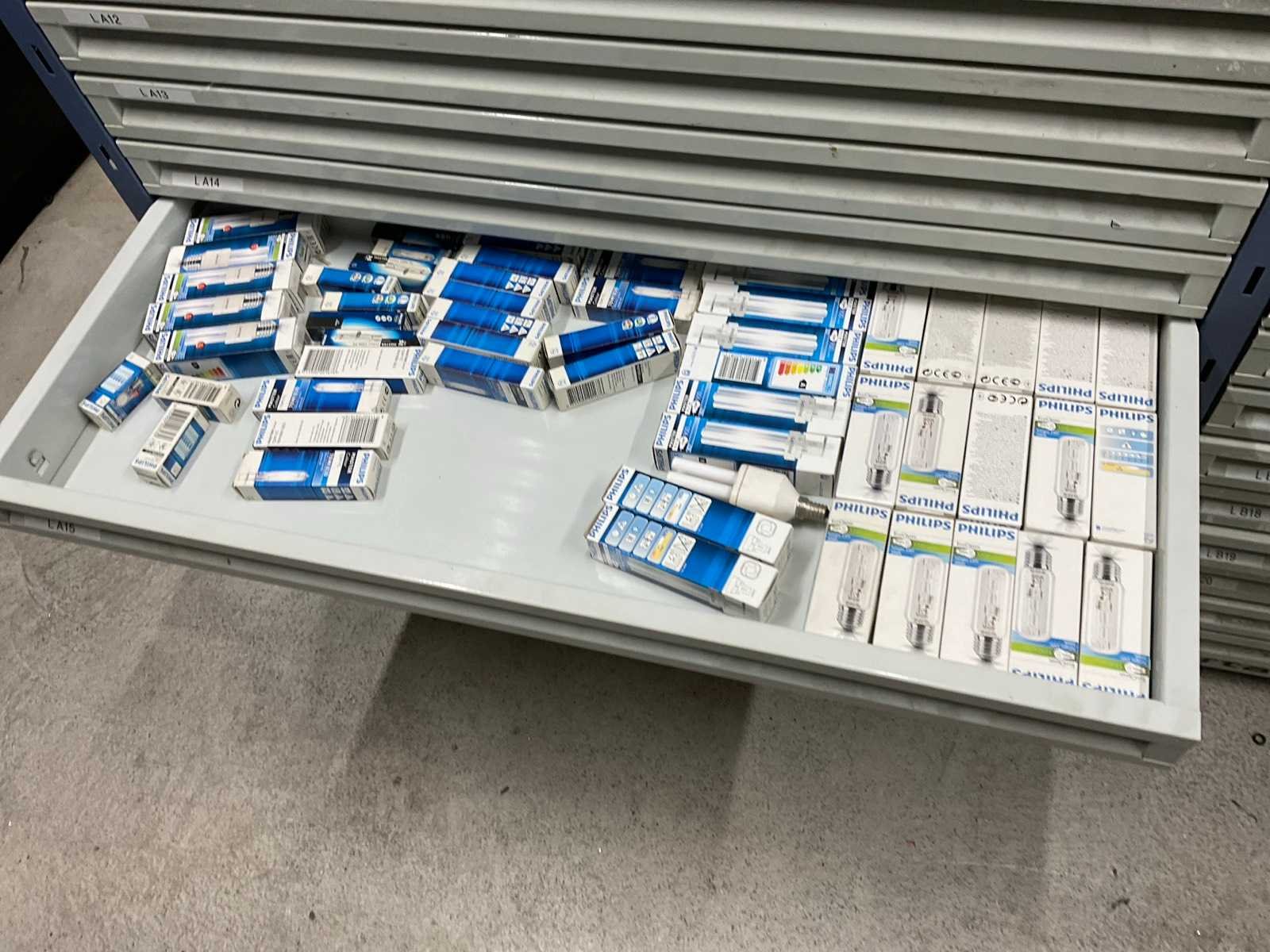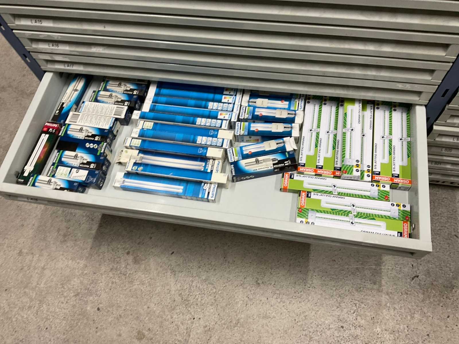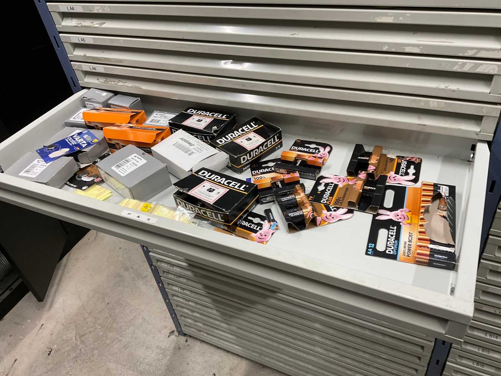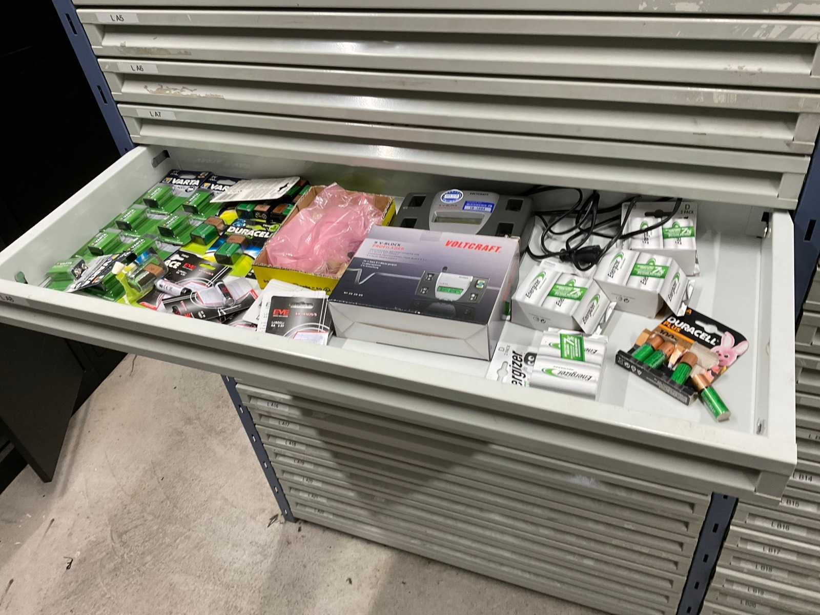 Bestaande uit: kabelschoenen, verlichting, kabels, batterijen, zekeringen, etc. Inclusief: stelling met laden afmeting ca.: B 1970 x 410 x H 1960mm.