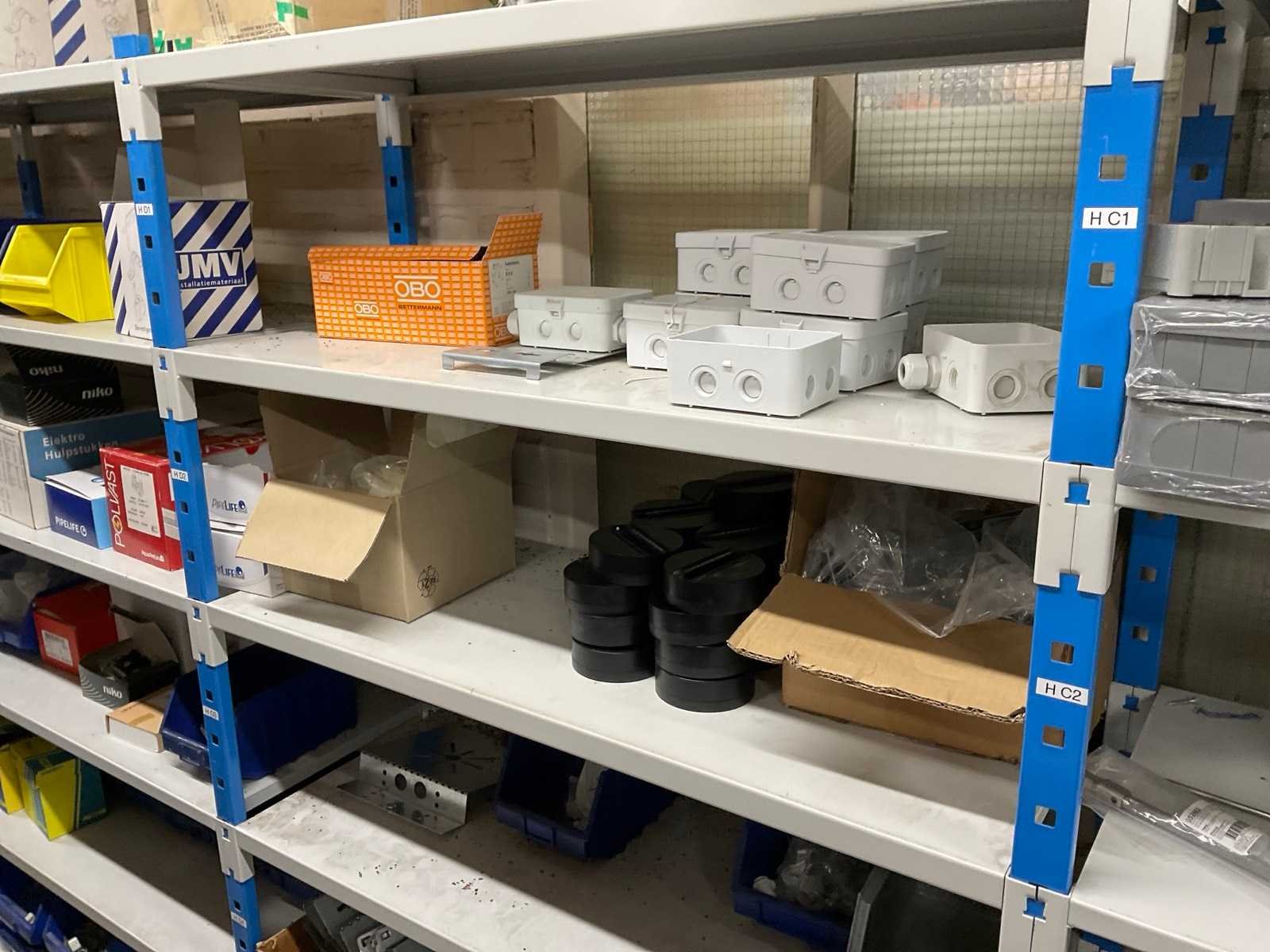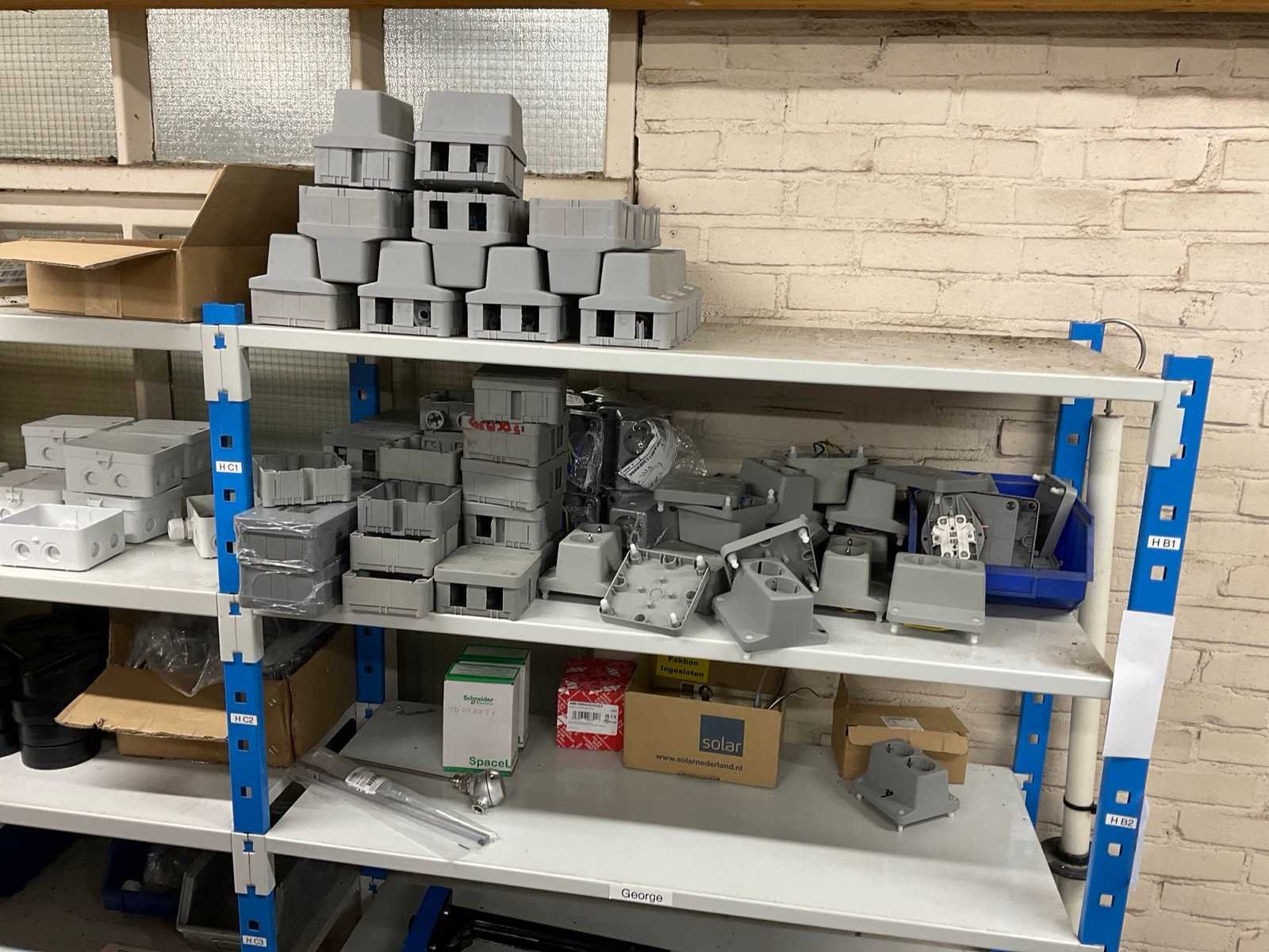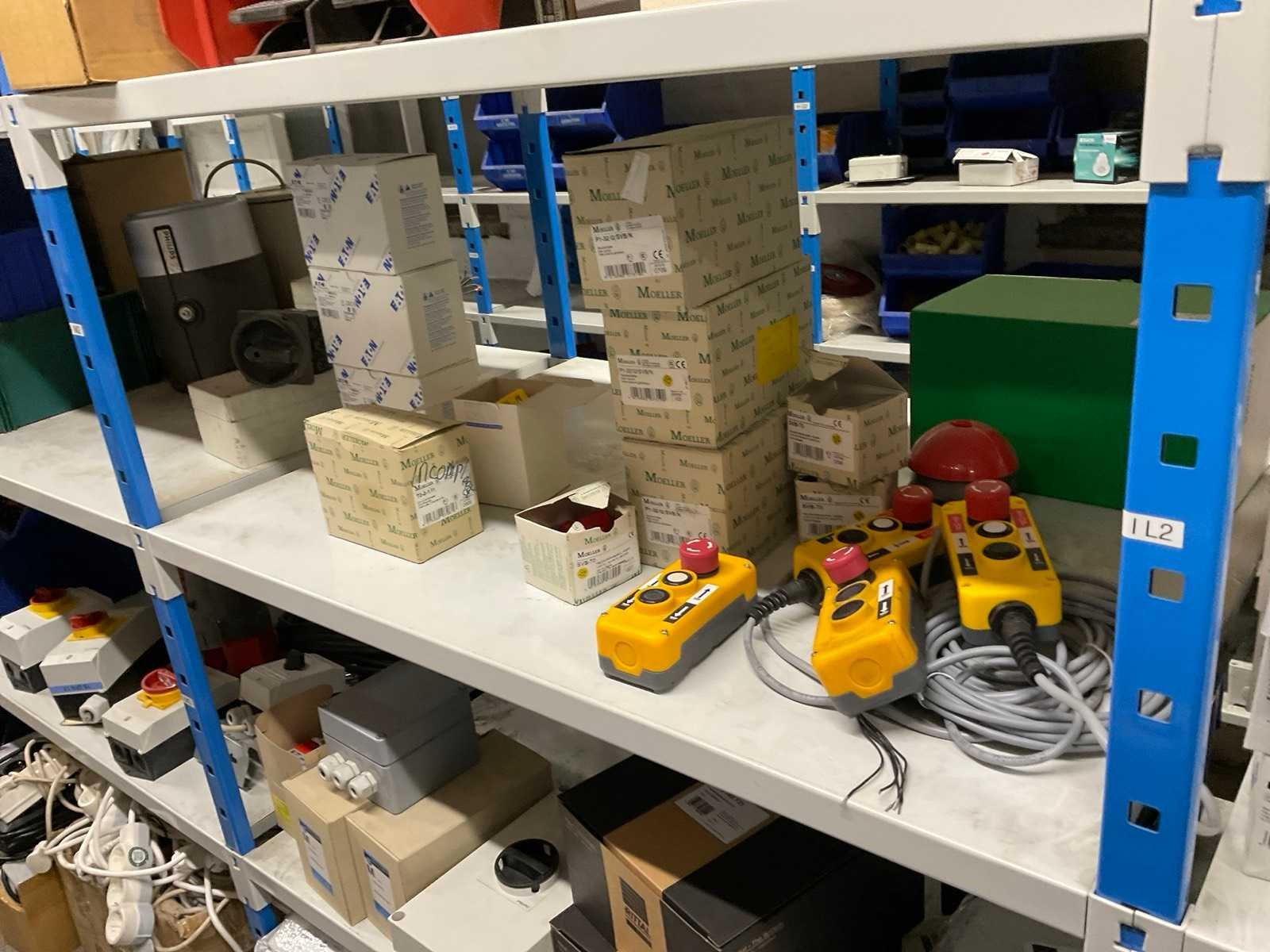 Bestaande uit: installatiedraad, behuizingen, switches, stekkers, noodstoppen, frequentieregelaars, snoeren, contacten, verlichting, etc.