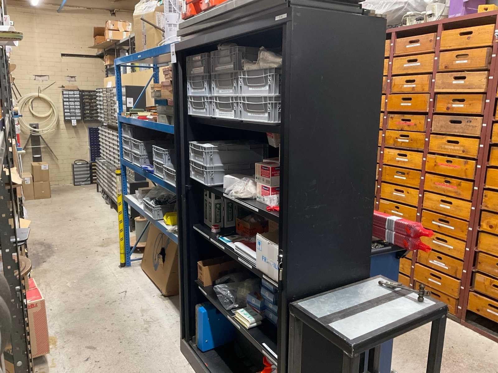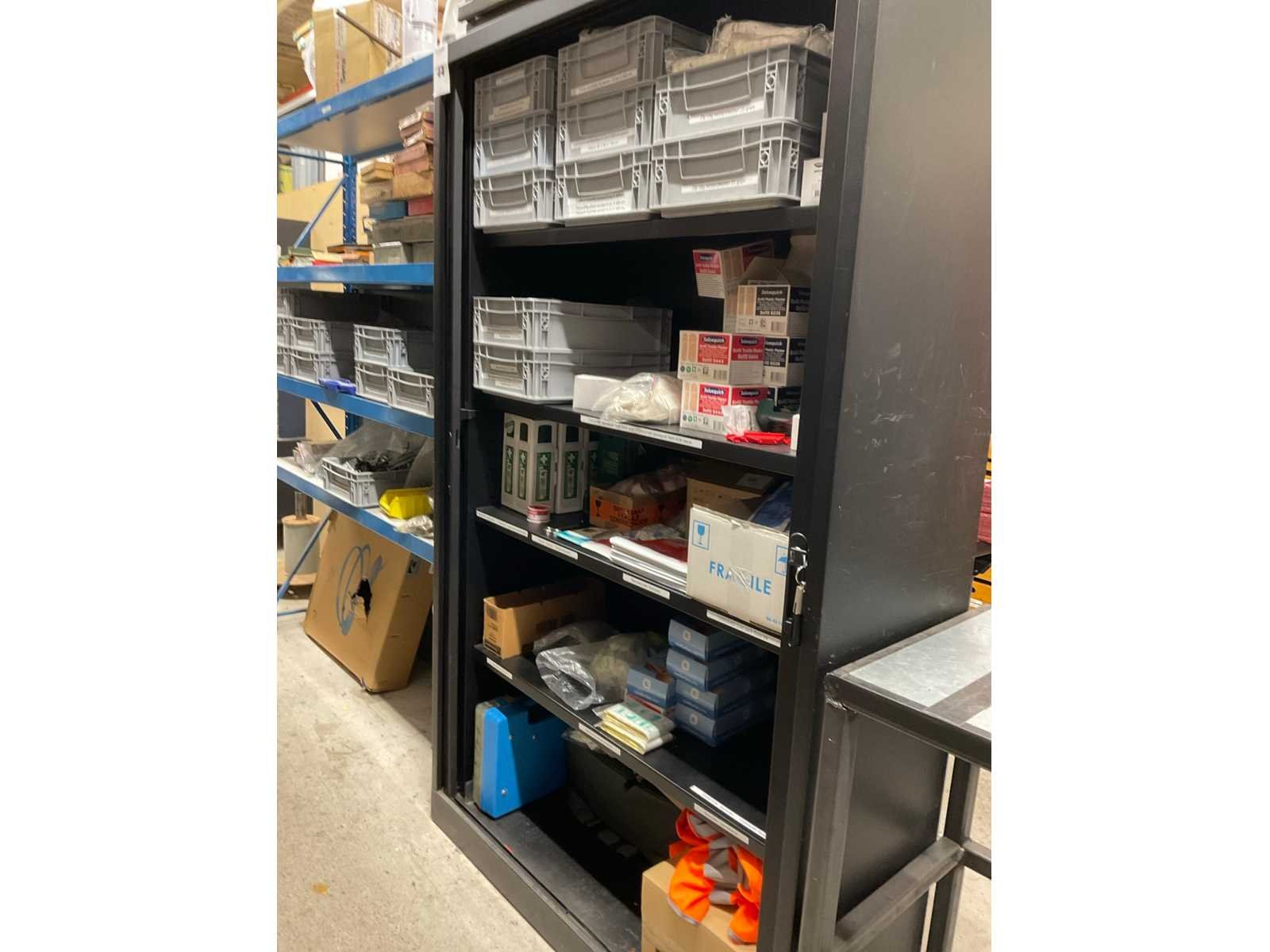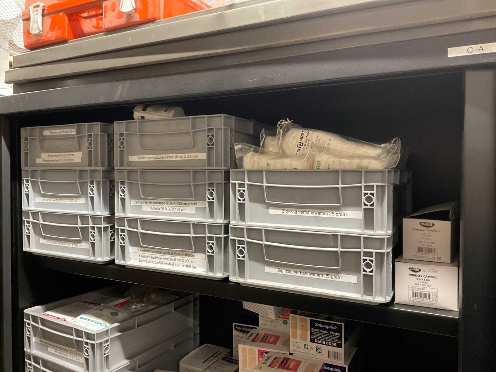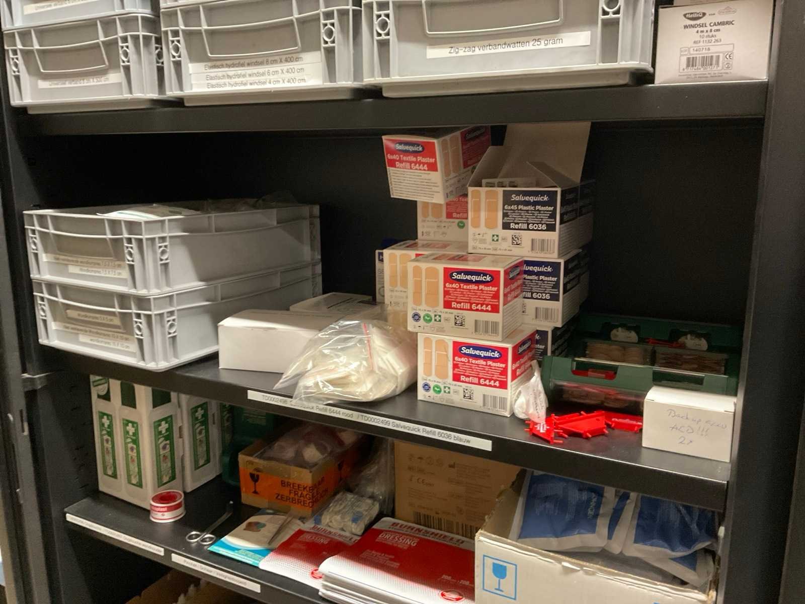 Bestaande uit: pleisters, wondkompres, verband, bandage, hydrogel, oogdouche, etc. Inclusief: roldeurkast.