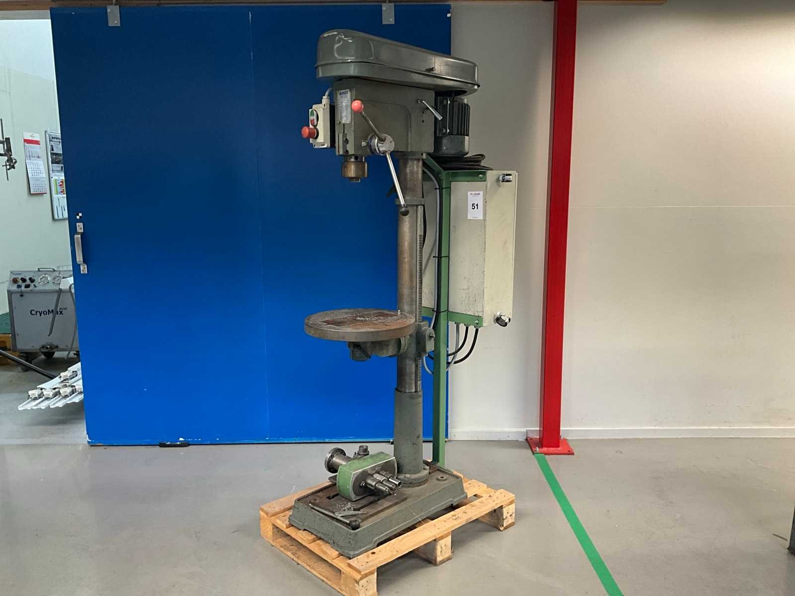 Merk: Sirox Type: CH-6 Aantal snelheden: 9 Spindelsnelheid van n =: 125rpm Spindelsnelheid tot n =: 2060rpm Boordiepte: 85mm Uitlading: 225mm Opname mc: 25 Tafel afmeting l: 40mm Tafel afmeting b: 40mm Motorvermogen (kW): 2.2kW Aansluiting: 400V Afmeting l: 950mm Afmeting b: 450mm Afmeting h: 1700mm