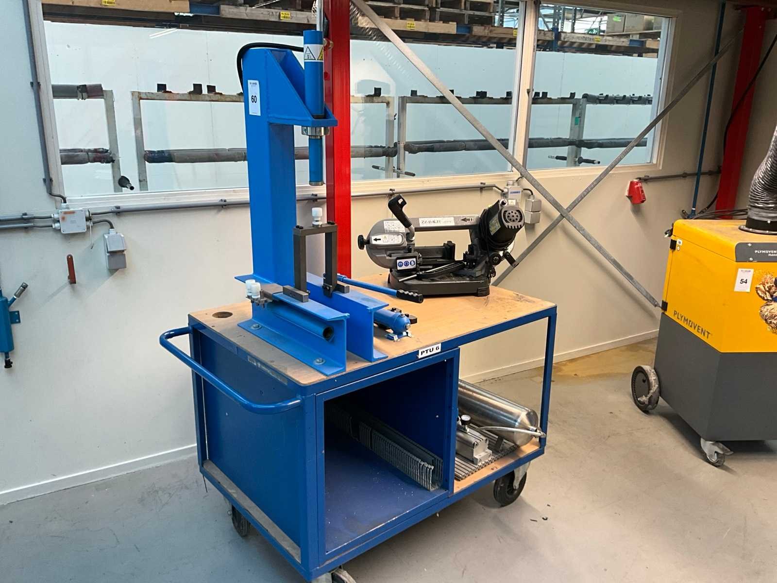 Hydrauliek pers & bandzaagmachine op transportkar