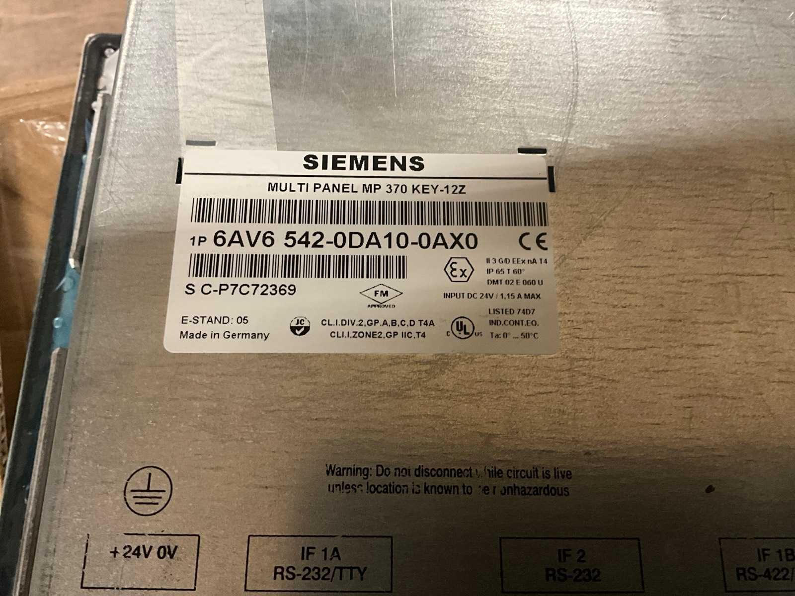 Merk: Siemens Simatic Type: SIMATIC MULTIPANEL MP370 12" COLOR TI