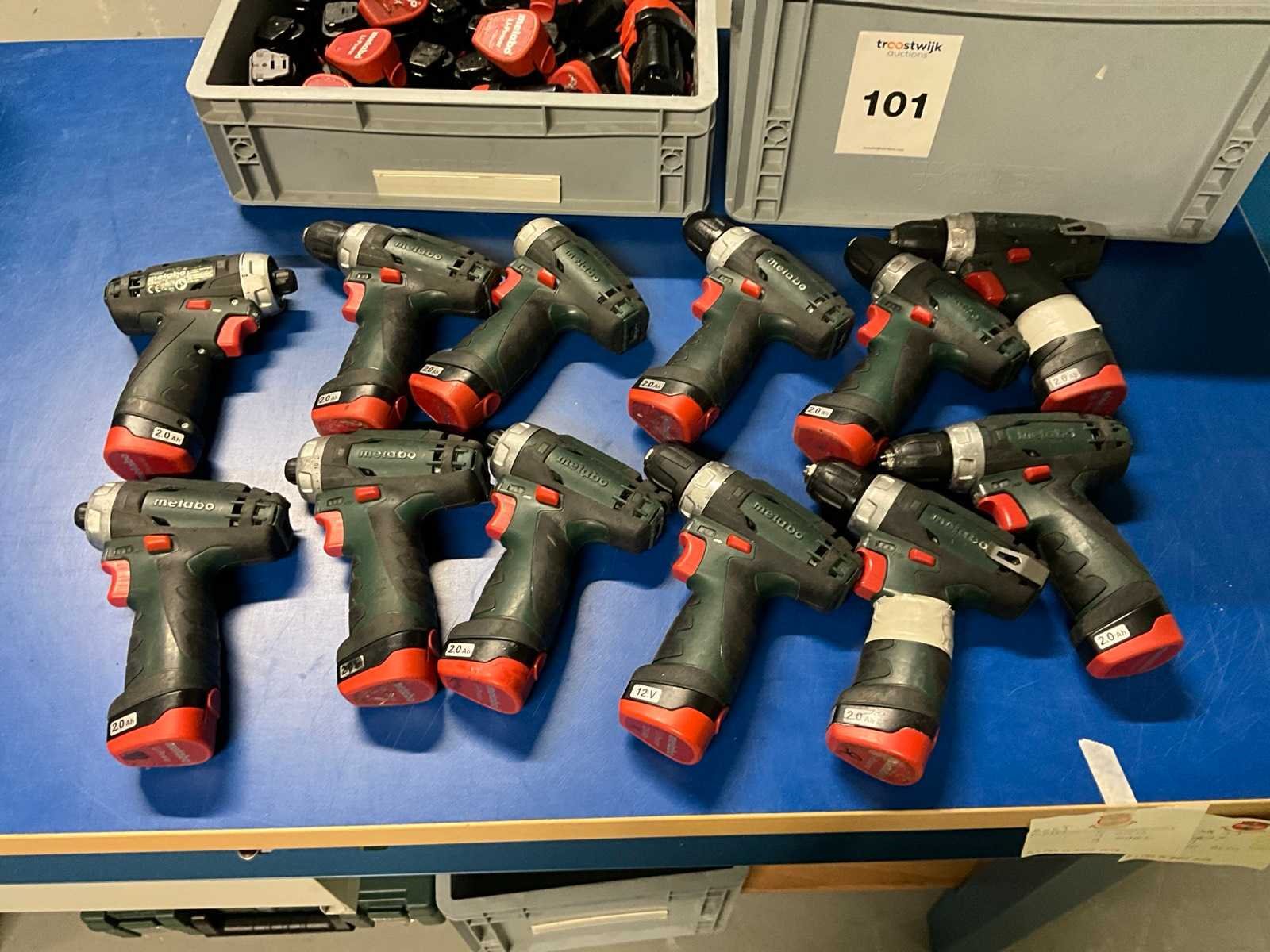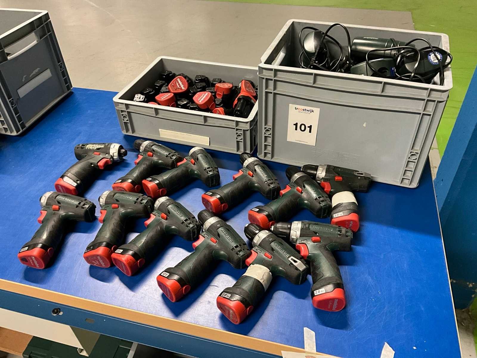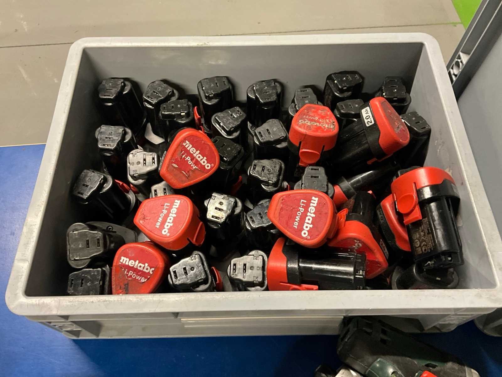 Inclusief krat accu’s (circa 50x) en krat accu laders Merk: Metabo Type: Powermaxx BS Accuspanning: 10.8V Accu type: 2.0 Ah Accu lader: true