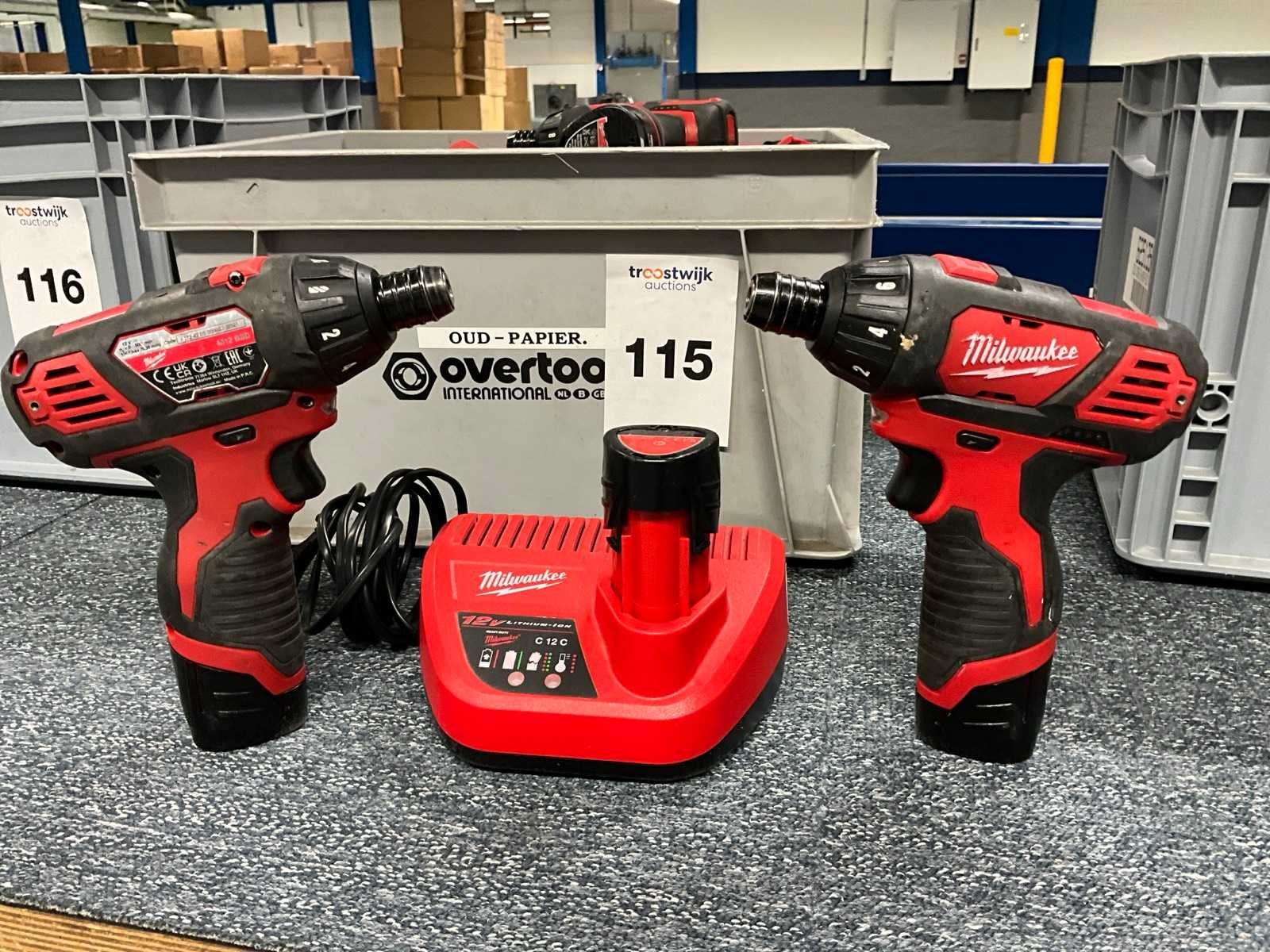 Inclusief: 4x accu lader, totaal aantal accu’s circa: 12x Merk: Milwaukee Type: M12 BSD Accuspanning: 12V Accu type: M12 2.0 Ah Accu lader: true Met koffer: true