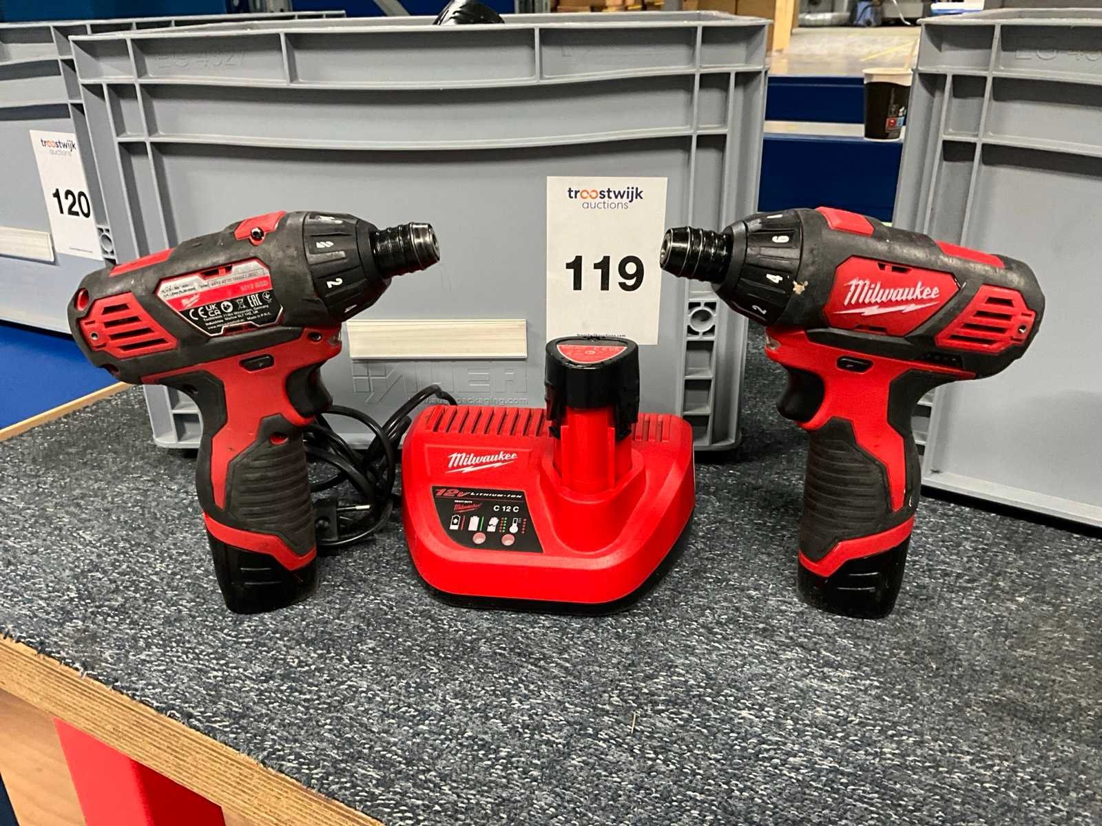Inclusief: 4x accu lader, totaal aantal accu’s circa: 12x Merk: Milwaukee Type: M12 BSD Accuspanning: 12V Accu type: M12 2.0 Ah Accu lader: true